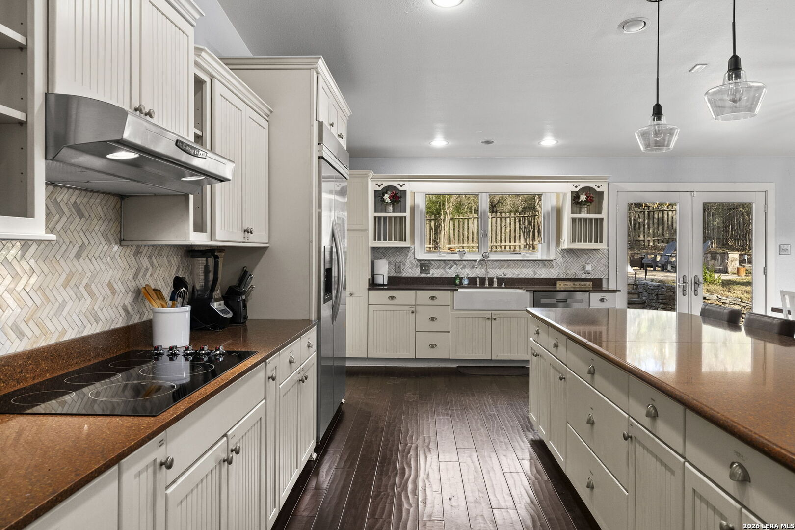 Incredibly located, 23-acre Ranchette, with development and commercial potential, in one of the Hill Country's most dynamic growth corridors, this is a rare opportunity to acquire a property with both immediate enjoyment and significant future upside. The current plan includes 3 commercial lots with strong FM 311 frontage (approx. 1 acre each) and 15 one-acre residential lots behind a proposed gated entrance. Property features mature oak trees throughout and borders Smithson Valley Middle School. Complete engineering plans available, including grading, utilities, and erosion control. New owner could utilize as a multiple family homestead, move forward with the current plan, or explore alternative development opportunities. Currently operating as a successful Airbnb with excellent reviews, the 2859 sqft main home blends Hill Country charm with modern updates, rock accents, hand-scraped engineered hardwoods, oversized living area, and spacious kitchen with large island, built-in appliances, farm sink, and walk-in pantry. Primary suite includes custom shower, soaking tub, and large walk-in closet. Two oversized bedrooms upstairs share a full bath. The backyard features an in-ground pool/spa by Keith Zars Pools, and covered patio with fireplace and outdoor kitchen. The shop / barn includes two covered horse stalls, turnouts, and 946 sqft apartment upstairs.