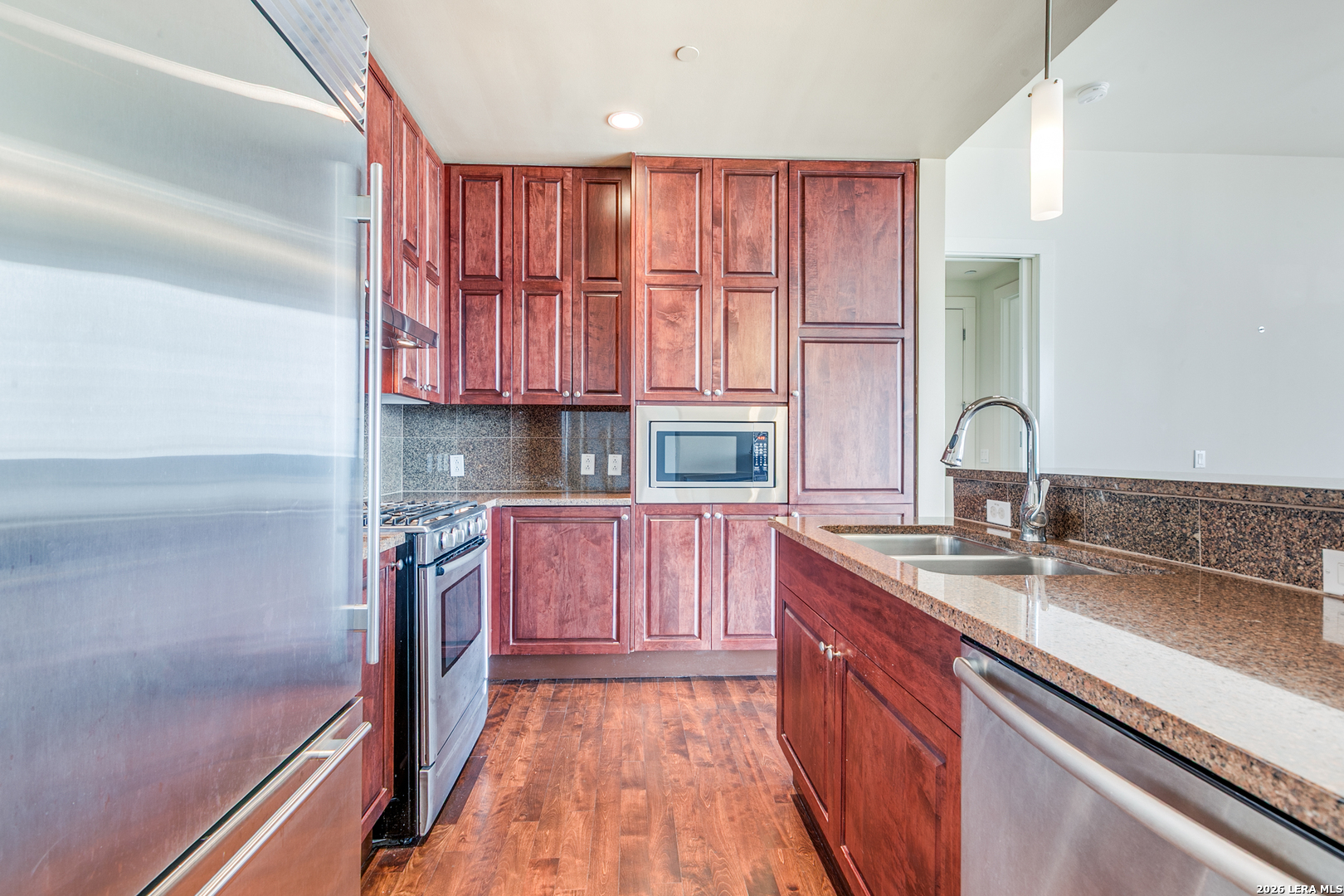 Enjoy exceptional luxury high rise living at Alteza Condominiums above The Grand Hyatt Hotel. Valuable storage unit included. GO! SPURS! GO! Be a part of the exciting Spurs Arena and Project Marvel Sports District under development in the neighboring Hemisfair Park and Civic Center. Amazing city views of the downtown skyline and our famous Riverwalk. This beautiful condo offers luxury finishes to include granite counters, stainless appliances include Sub Zero Refrigerator and Bausch gas cooktop, dishwasher and microwave. Master bedroom/bath include a large jetted tub, glass walk-in shower, marble counters and customized closet. Secondary bedroom has a walk-in closet. Two private garage spaces. Building amenities include private 32nd floor heated lap pool, hot tub/viewing deck, pool lounge, 24-hour concierge service, conference room and business center and optional membership to the Hyatt gym. Walk to fun! Alteza is located in the vibrant convention center district and only an elevator ride away to the Riverwalk restaurants, shops, parks and museums. You will love the urban lifestyle!