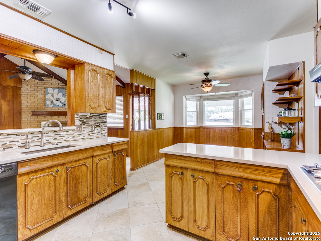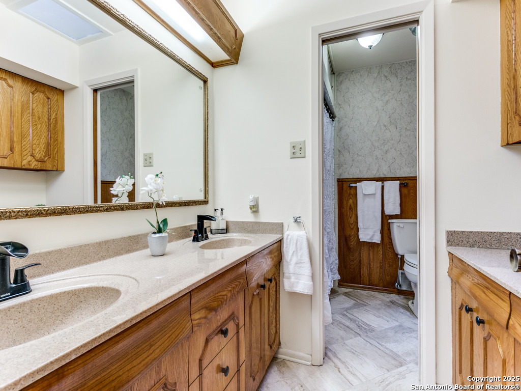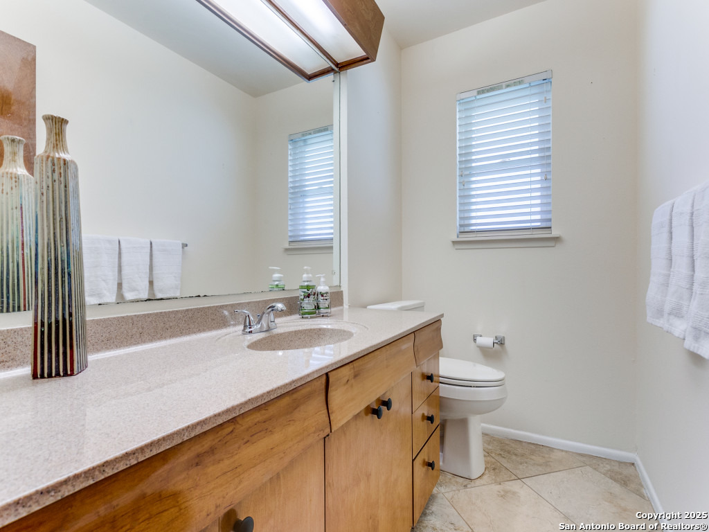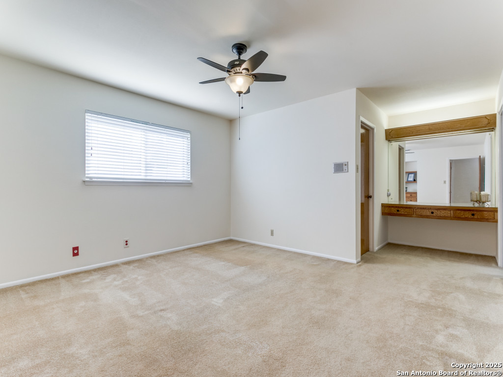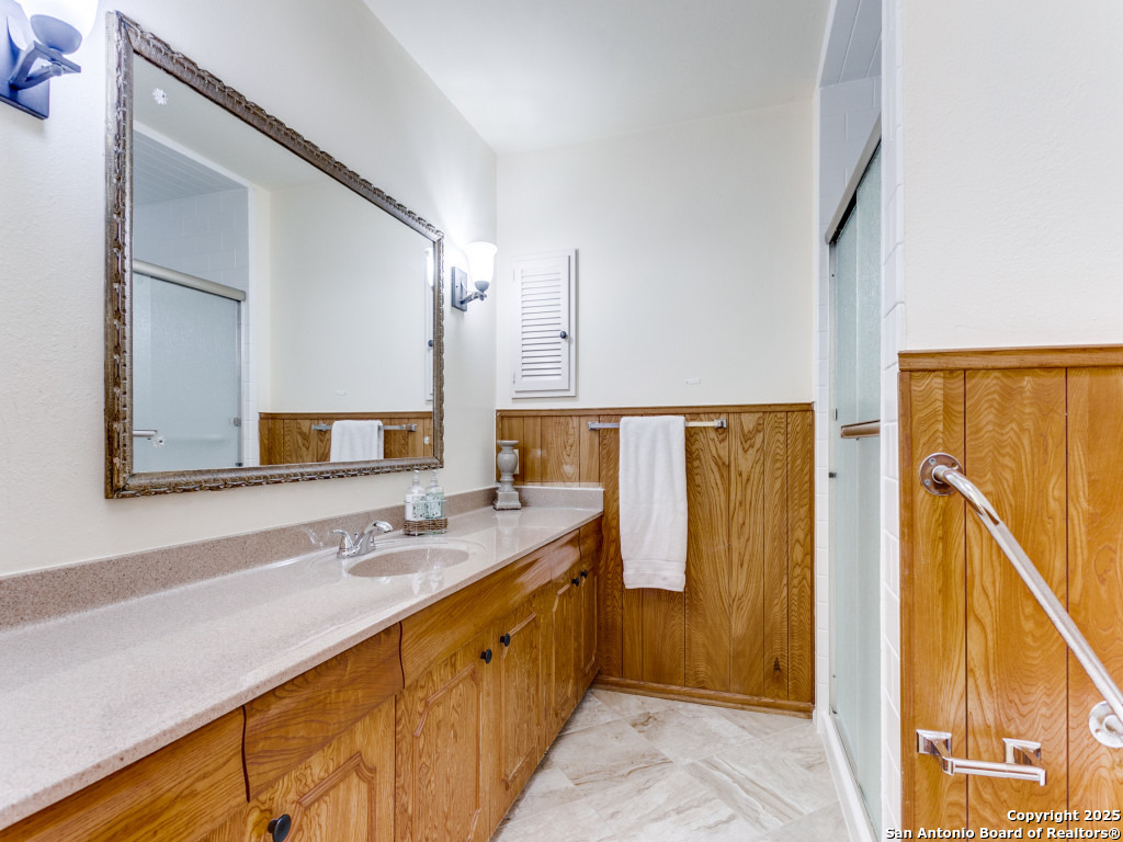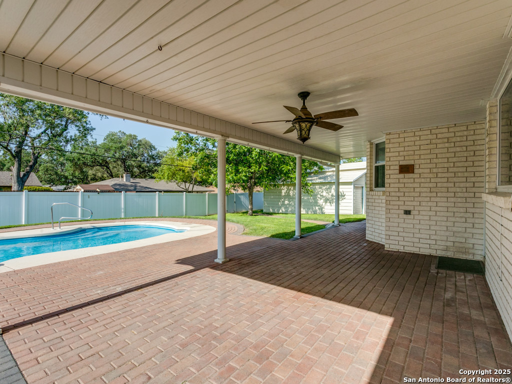 One-story ranch-style home in Windcrest featuring 3 bedrooms, 2.5 baths, and a dedicated office. Enjoy wood floors, a cozy fireplace with gas logs, and a kitchen with quartz countertops and gas cooking. The primary suite offers a walk-in closet and all bedrooms include built-ins. Fresh paint, updated electrical, whole-house surge protector and water softener provide peace of mind. Outside relax by the pool, enjoy RV parking, a storage shed, a sprinkler system, and privacy fencing. With a two-car garage and modern updates throughout, this home is move-in ready!