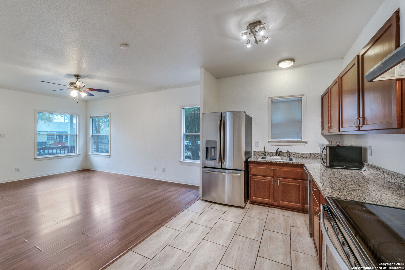 Well maintained 2 bed, 2 bath home with one car garage and large front porch. There are plenty of renter friendly features for this home which includes stainless steel refrigerator, washer, dryer, security system and water softener. Open floorplan, living/dining combination, Kitchen has granite counters, dishwasher, smooth top stove, microwave, garbage disposal and a large walk-in pantry (also washer/dryer location). Home is located 10 minutes from down town, 12 minutes to the medical center, easy access to IH10 taking you anywhere in San Antonio. Pet Friendly (pet screening required). Ready for Move In.