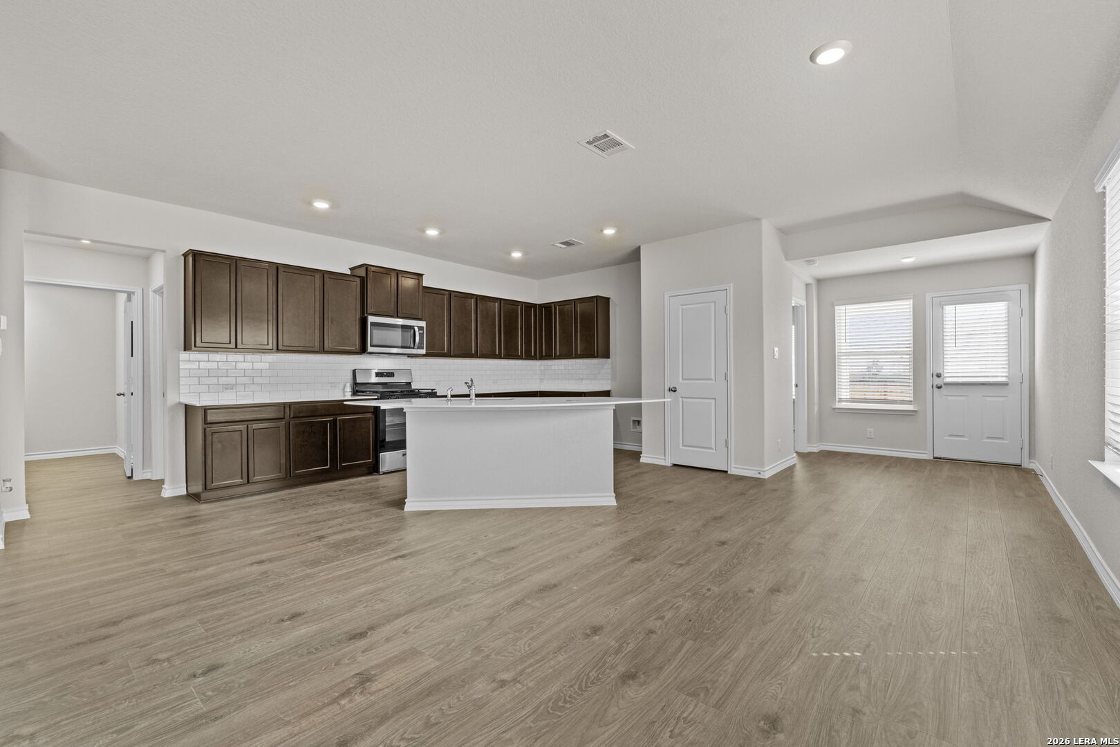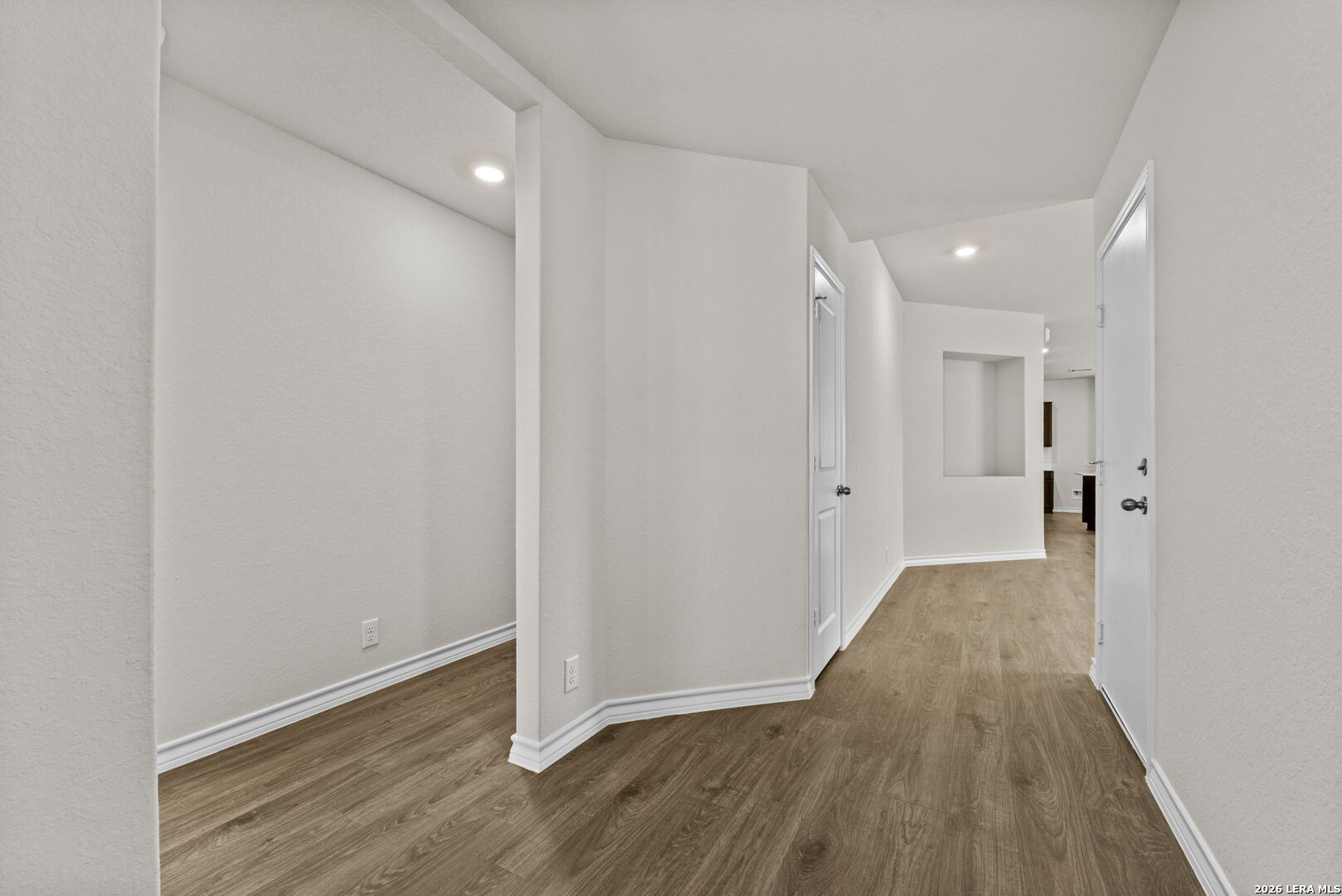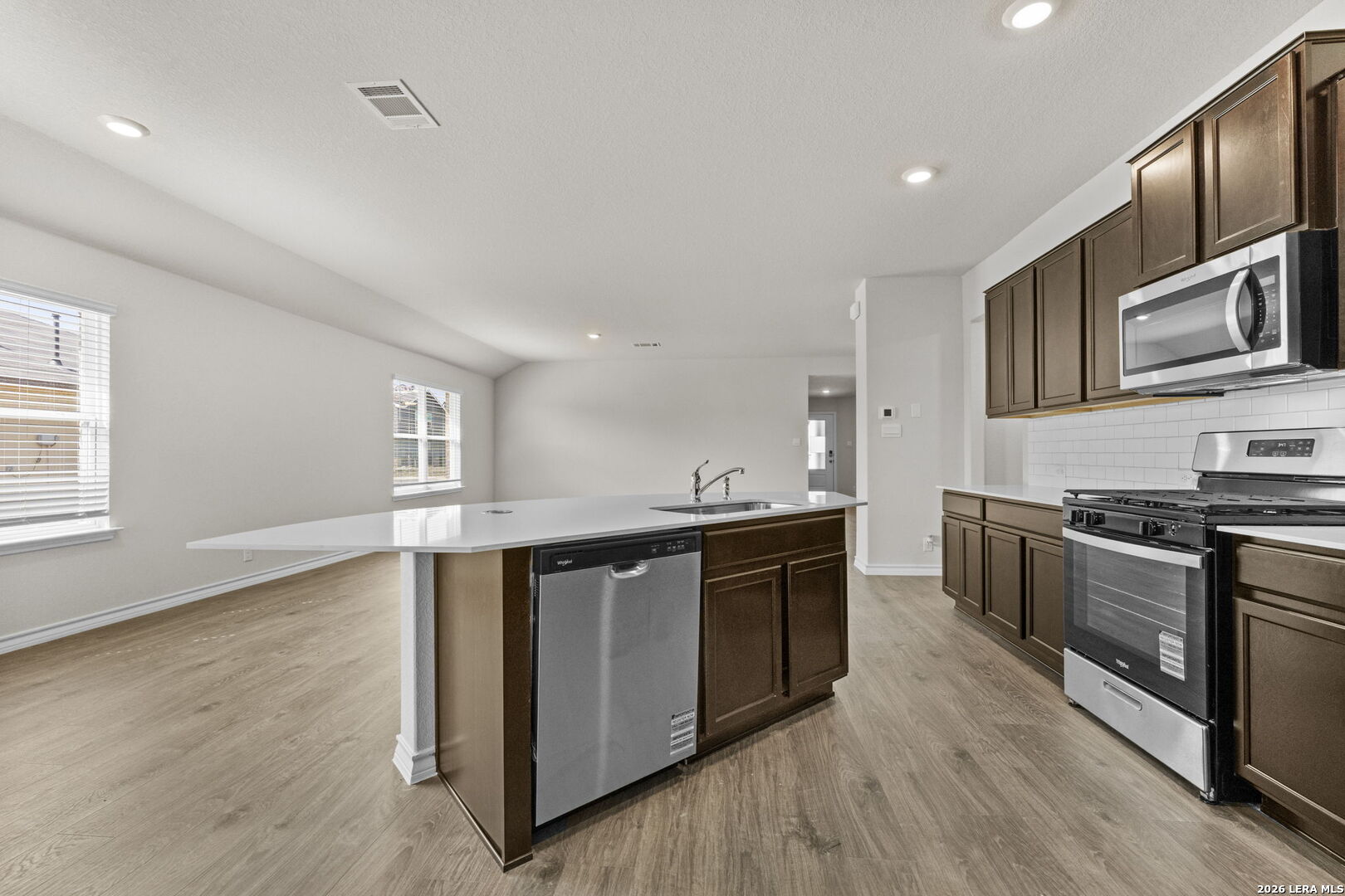 Welcome to The Knight, our largest single-story home offered at Steele Creek in Cibolo, TX. Featuring 4 bedrooms, 2 bathrooms, 2-car garage and 1901 square feet of living space, this floor plan is sure to turn heads. Spacious, comfortable living greets you at the door with a long foyer leading to a decorative wall nook and a grand, open concept living room, kitchen and dining area. The kitchen is complete with beautiful quartz countertops, stainless steel appliances, classic white subway tile backsplash, and an oversized kitchen island with a deep single basin sink. Your blended living room and dining area feature luxury hard surface flooring and plenty of windows, creating a light and bright space for living and entertaining. The private main bedroom is located at the back of the home and features a large, relaxing ensuite bathroom complete with a separate tub and walk-in shower, dual vanities, a water closet, and spacious walk-in closet. All secondary bedrooms offer quality carpeted floors and a closet. These rooms are versatile! Use them as bedrooms, offices, work out rooms or other bonus spaces. Additional features include tall 9-foot ceilings, 2-inch faux wood blinds throughout the home, ceramic tile in the bathrooms and utility room, pre-plumb for water softener loop, and full yard landscaping and irrigation. *Seller is willing to assist with closing costs or a rate buy-down through preferred lender with an acceptable offer. *
