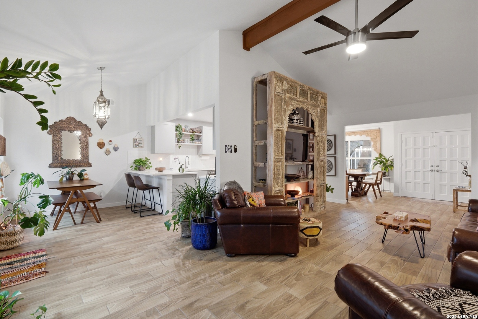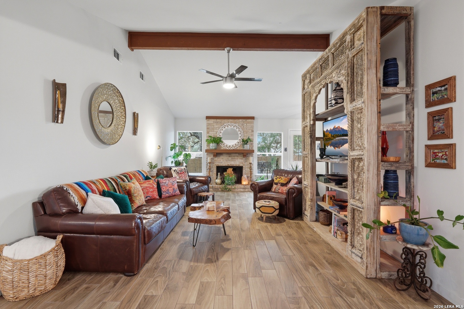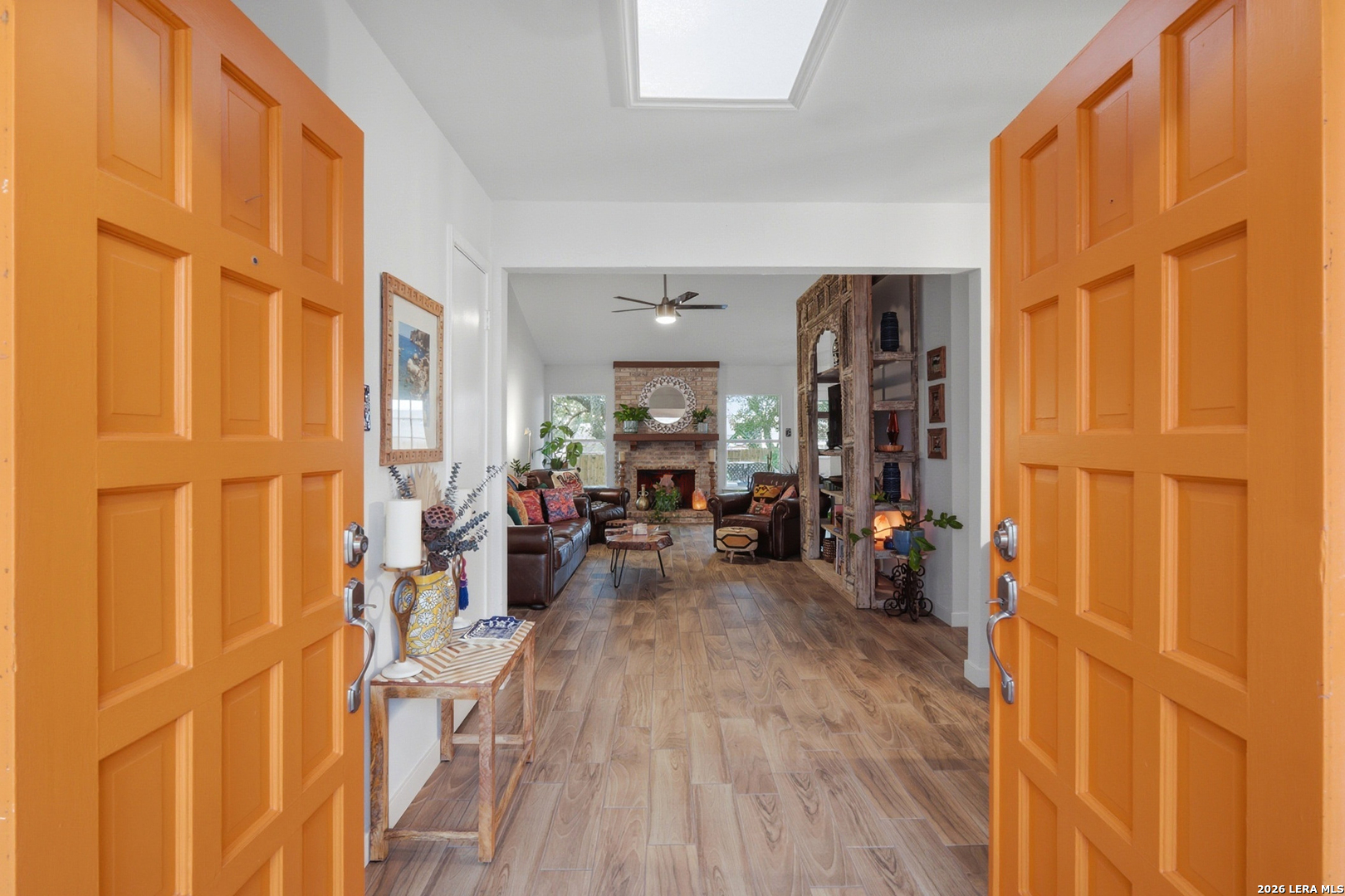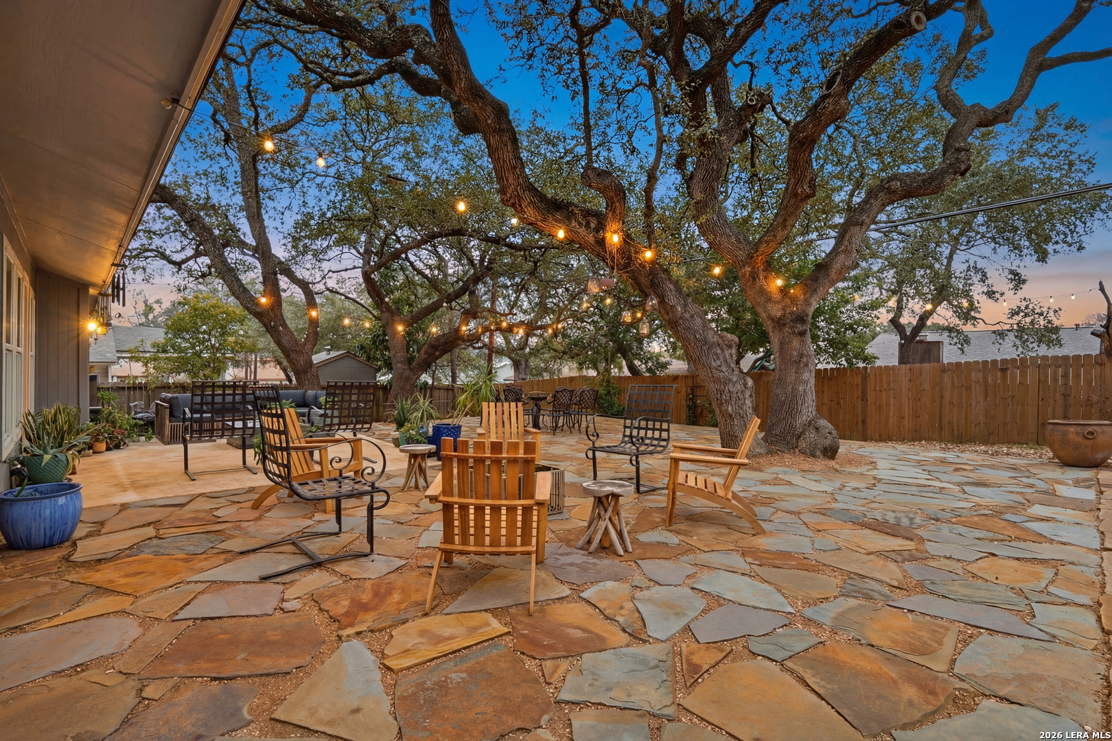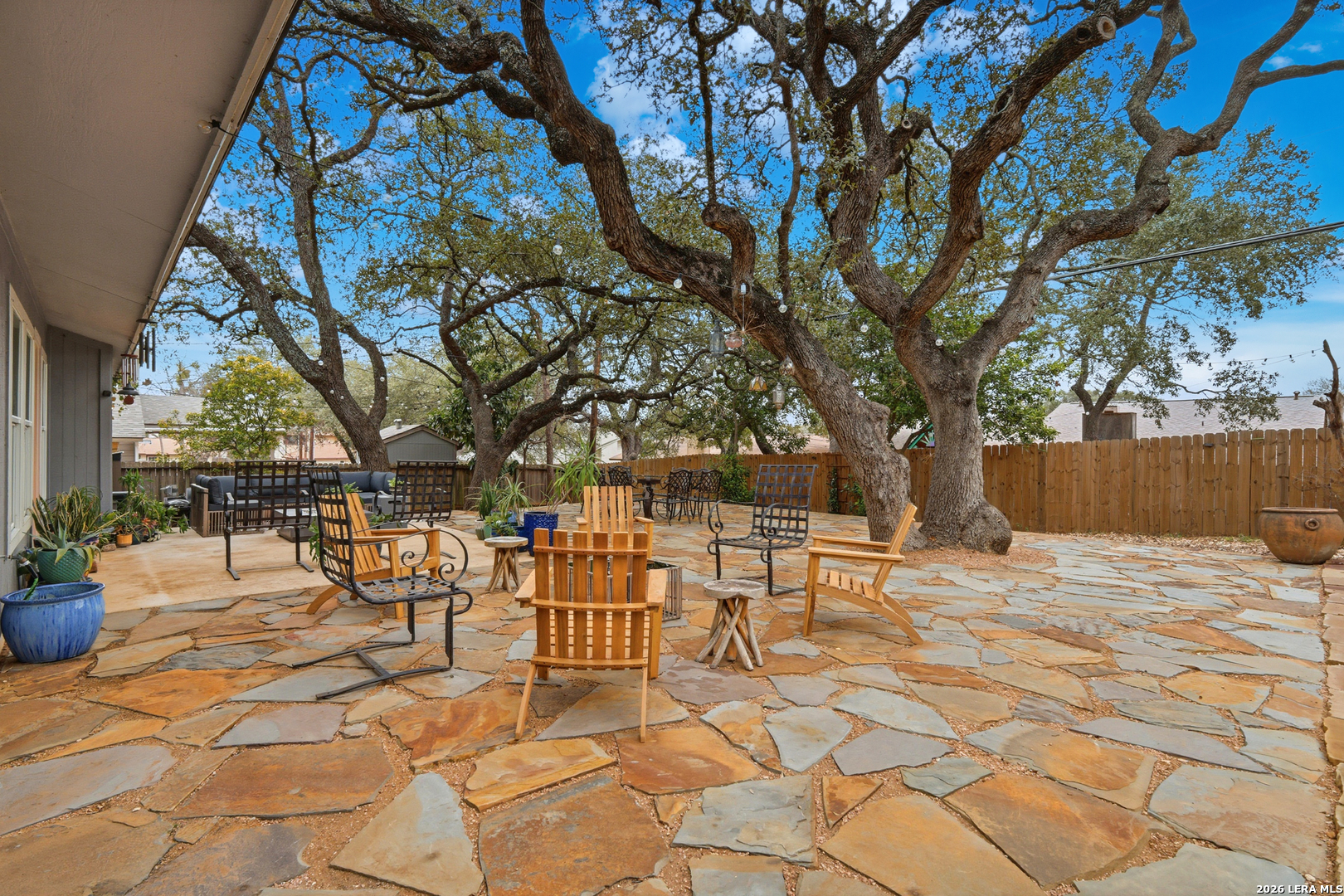 Welcome to 6110 Woodmoor St, a beautifully maintained and truly move-in-ready home offering modern updates and an exceptional outdoor living experience. Pride of ownership is evident throughout, with thoughtful care and updates reflected in every detail. The home features a light-filled, open layout with high ceilings that enhance the sense of space and flow seamlessly between the living, dining, and kitchen areas, making it ideal for both everyday living and entertaining. The entire home has been updated, including a newer roof, HVAC system, and water heater, along with brand-new kitchen finishes, flooring, and fully renovated bathrooms, creating a fresh and contemporary feel throughout. The standout feature is the elevated backyard, professionally designed with approximately 1,100 square feet of flagstone, offering a private entertaining oasis perfect for gatherings, outdoor dining, or relaxing evenings under the Texas sky. Conveniently located near popular shopping and dining destinations such as The Rim, La Cantera, and UTSA, with easy access to major roadways including I-10 and Loop 1604, this home delivers the perfect combination of style, comfort, and convenience.