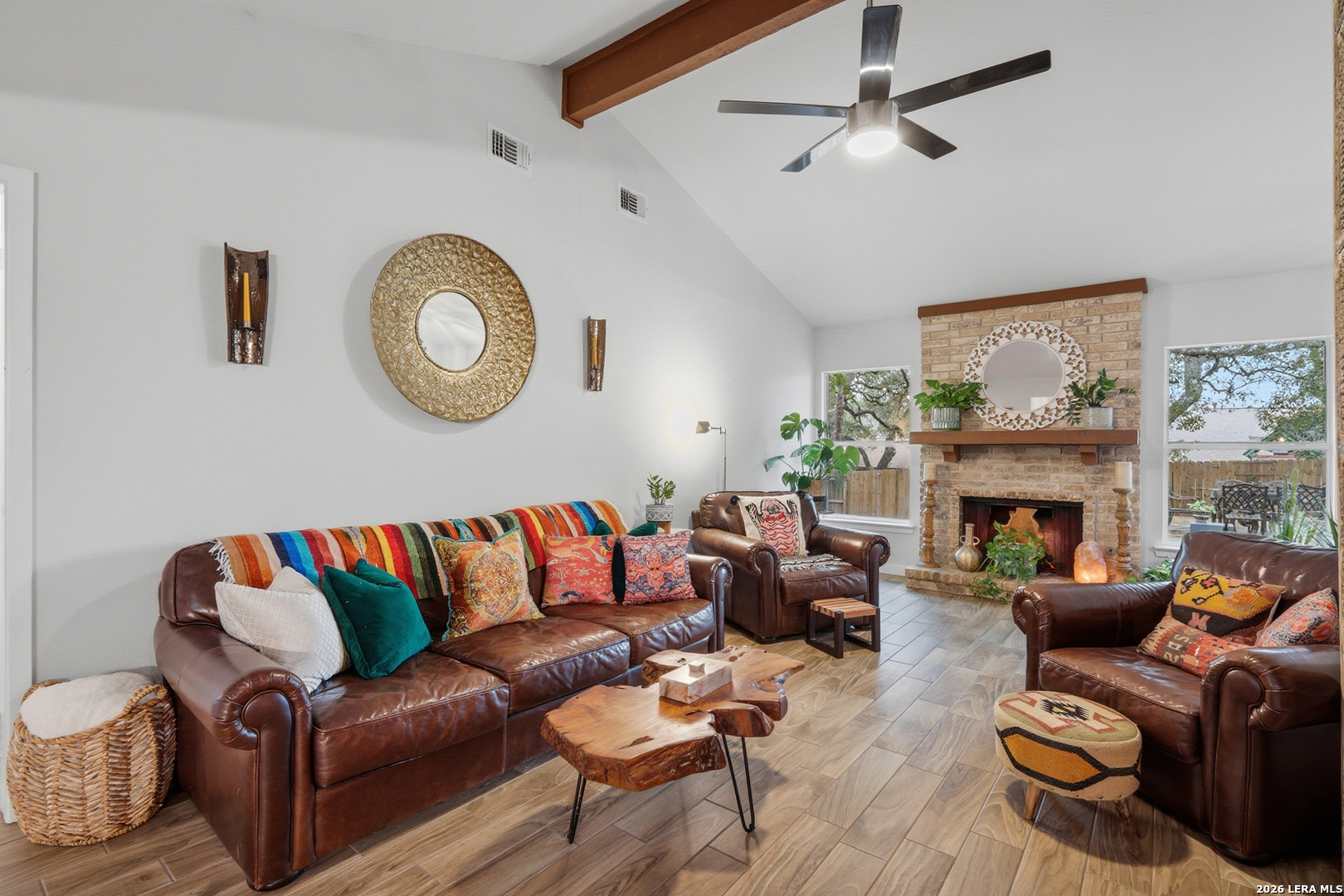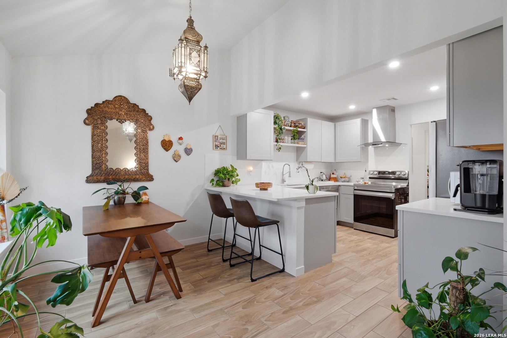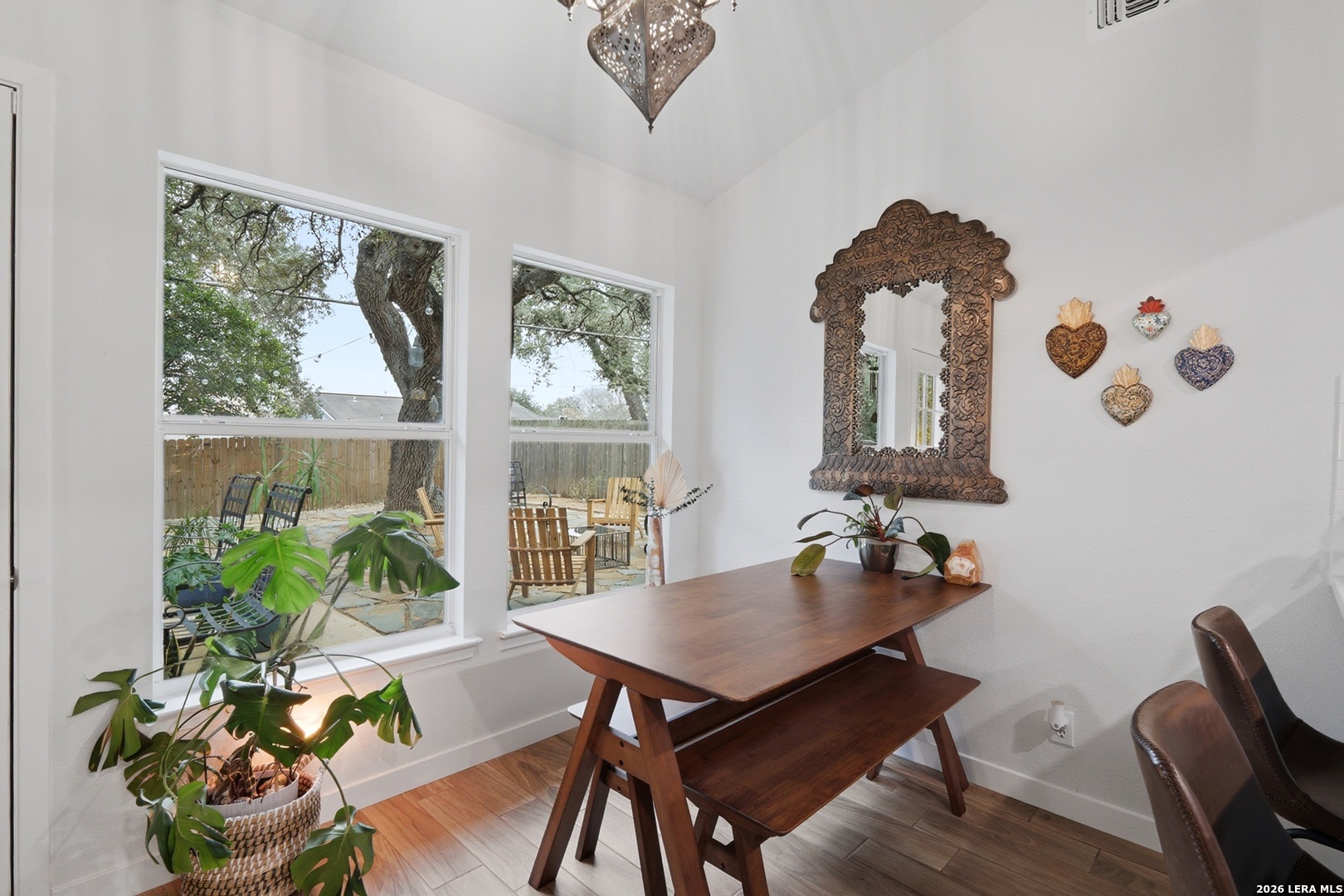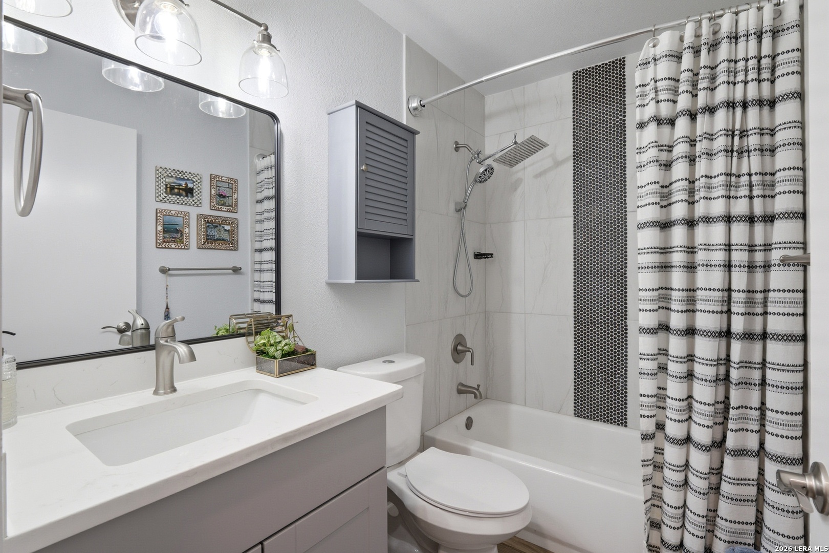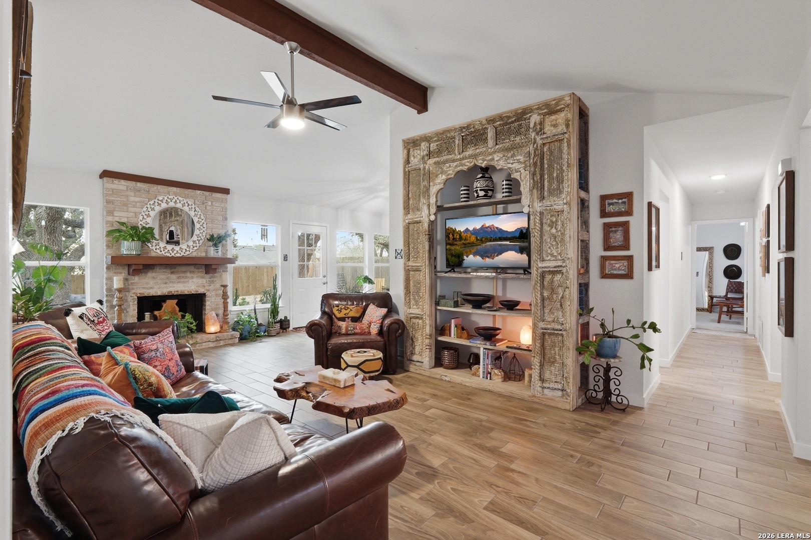 Welcome to 6110 Woodmoor St, a beautifully maintained and truly move-in-ready home offering modern updates and an exceptional outdoor living experience. Pride of ownership is evident throughout, with thoughtful care and updates reflected in every detail. The home features a light-filled, open layout with high ceilings that enhance the sense of space and flow seamlessly between the living, dining, and kitchen areas, making it ideal for both everyday living and entertaining. The entire home has been updated, including a newer roof, HVAC system, and water heater, along with brand-new kitchen finishes, flooring, and fully renovated bathrooms, creating a fresh and contemporary feel throughout. The standout feature is the elevated backyard, professionally designed with approximately 1,100 square feet of flagstone, offering a private entertaining oasis perfect for gatherings, outdoor dining, or relaxing evenings under the Texas sky. Conveniently located near popular shopping and dining destinations such as The Rim, La Cantera, and UTSA, with easy access to major roadways including I-10 and Loop 1604, this home delivers the perfect combination of style, comfort, and convenience.