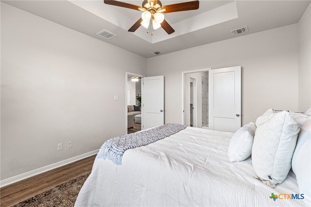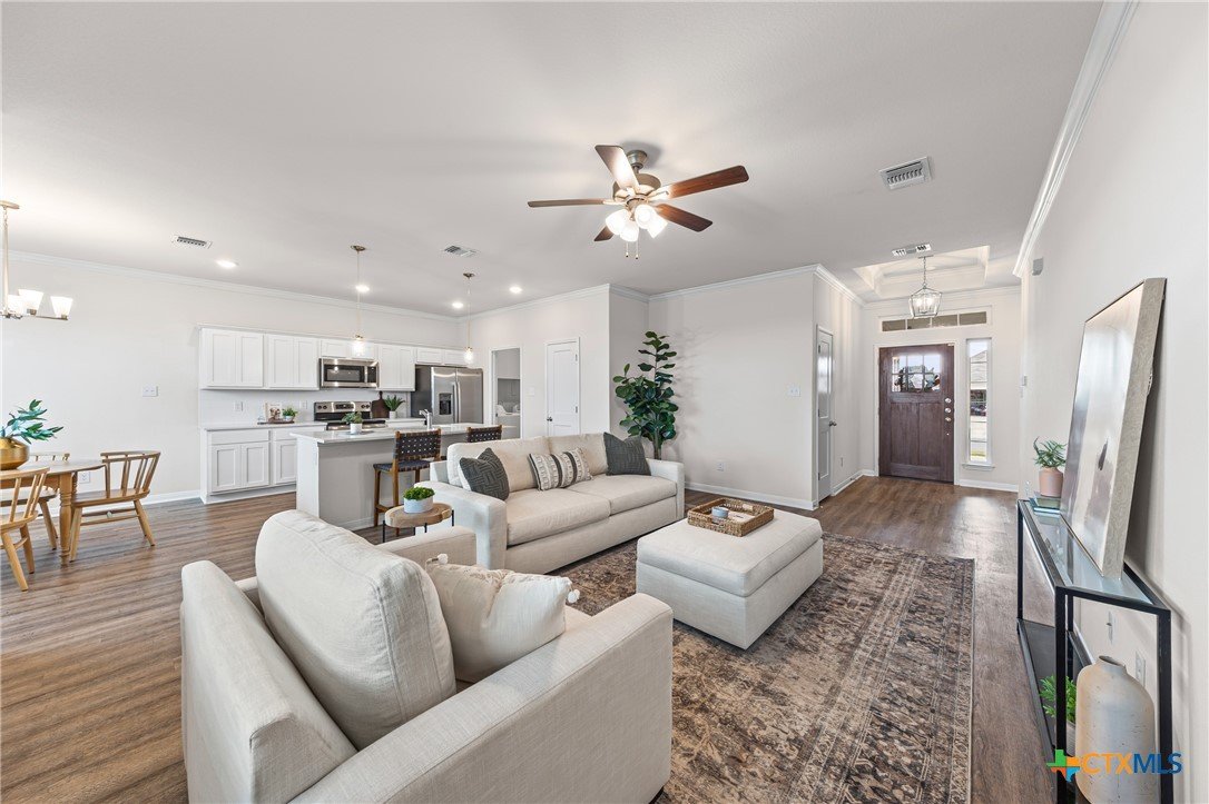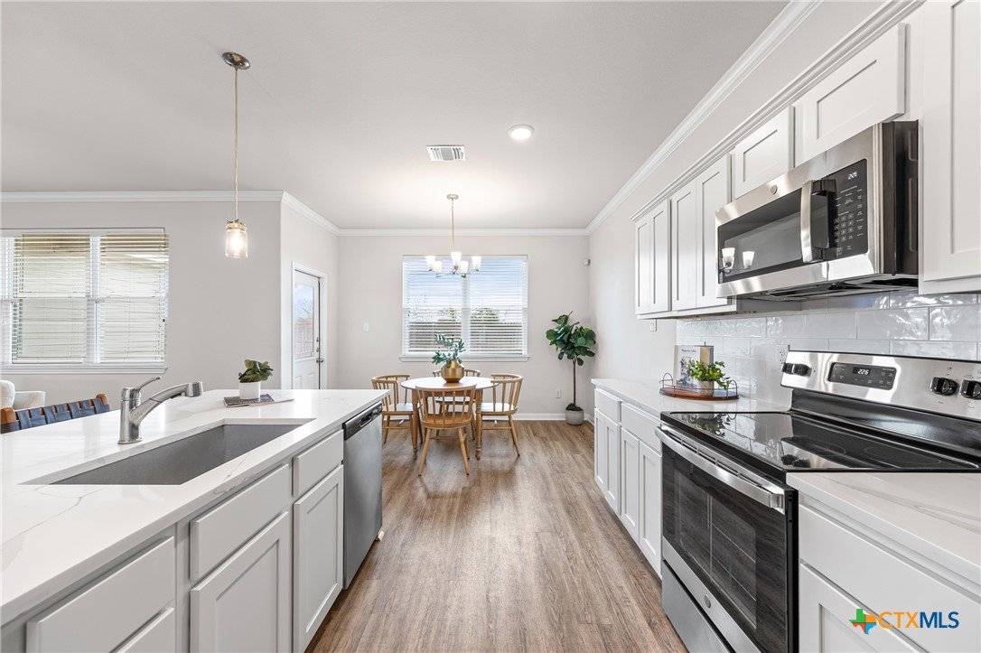 Welcome to this beautifully maintained 3-bedroom, 2-bathroom home built in 2023, located in the sought-after Hartrick Ranch Subdivision. Nestled in Academy ISD, this home offers a peaceful, country feel while still being just minutes from local shopping, dining, and conveniences. Step inside to find fresh paint, durable luxury vinyl plank flooring, and quartz countertops throughout, giving the home a modern, stylish touch. The open-concept living space is bright and airy, filled with natural light. The spacious kitchen is perfect for entertaining, featuring a large eat-at island with sink, stainless steel appliances, and plenty of counter space for cooking and gathering. Refrigerator, washer, and dryer are included, making this home truly move-in ready. The large primary suite offers a relaxing retreat with a big walk-in shower and an oversized walk-in closet. Two additional bedrooms provide flexibility for guests, home office, or family needs. This like-new home combines comfort, style, and convenience—don’t miss your chance to make it yours!