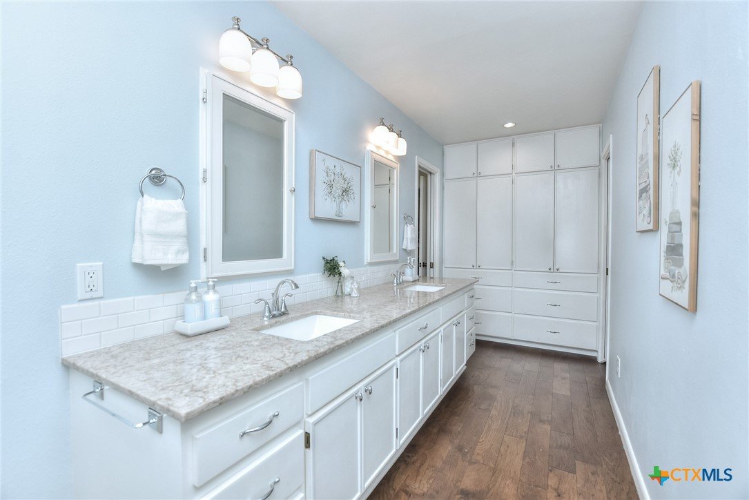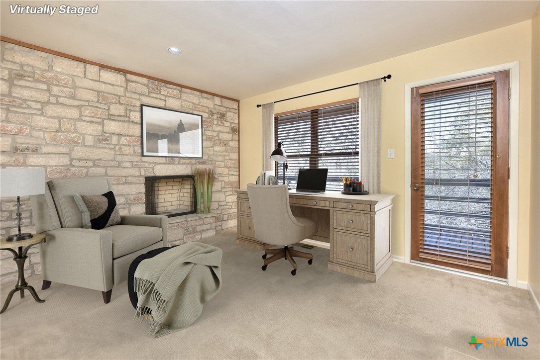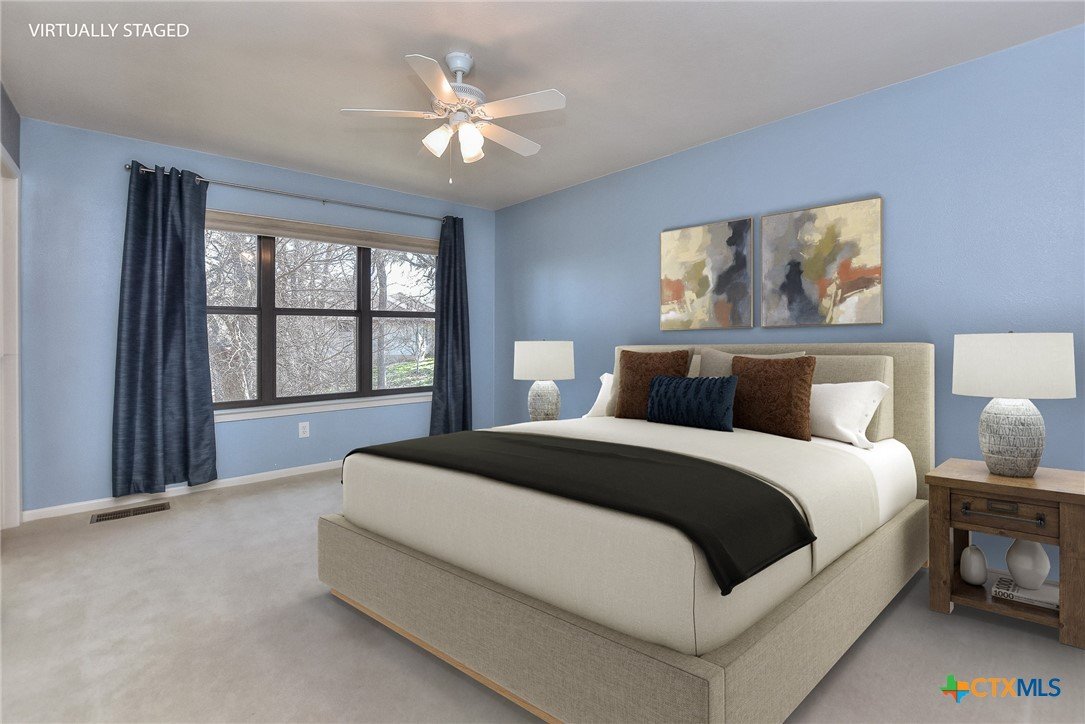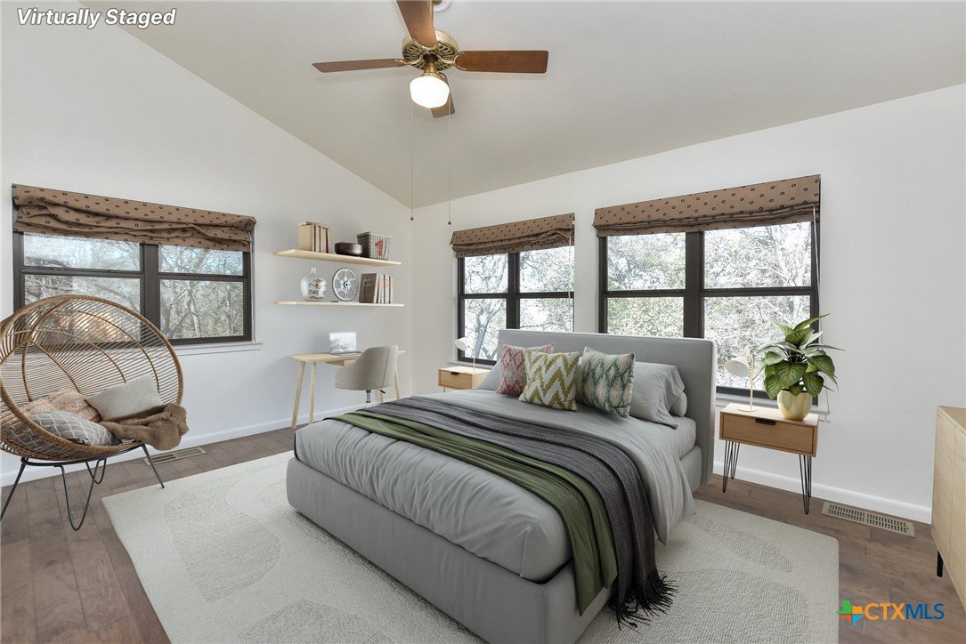 Amazing home along the serene banks of the South San Gabriel River, 612 E San Gabriel Overlook Dr offers a rare opportunity to own a breathtaking retreat with unparalleled views and direct river frontage. This custom-built ranch-style home spans 2,890 sq. ft. and sits high above the floodplain on 3.41 acres, seamlessly blending privacy, convenience, and natural beauty. Step inside to discover a spacious and well-designed layout featuring three bedrooms, three full baths, and a versatile den with its own fireplace and en-suite bath perfect for a fourth bedroom. Vaulted ceilings and a stunning fireplace in the family room create an inviting atmosphere, while the galley kitchen, complete with granite countertops and abundant cabinetry, flows effortlessly into the breakfast and family rooms. Thoughtful built-ins, including storage for linens and tableware, enhance the home's functionality. The primary suite boasts soaring ceilings, built-ins that eliminate the need for a dresser, and an en-suite bath with ample storage. Additional highlights include a fenced garden, mature fruit trees, and private river access ideal for outdoor enthusiasts looking to explore scenic rock formations and tranquil waters just steps from home. With ample parking, this property includes two garages totaling 1,515 sq. ft. plus a 625 sq. ft. metal garage, along with a spacious driveway. This home presents a unique opportunity to personalize and create your dream retreat while being just minutes from town, schools, and I-35. Don't miss your chance to own this peaceful riverside sanctuary!