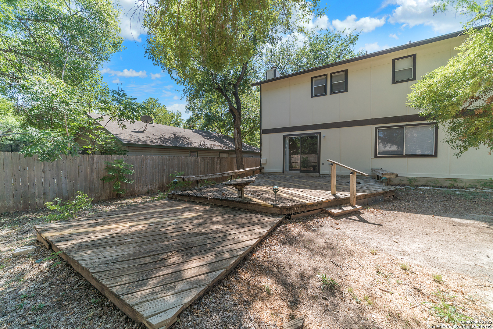 Spacious 2-story home featuring 3 bedrooms and 2.5 bathrooms, ideally located 10 mins from 1604. The main level offers a large living area with tile flooring and a cozy fireplace, perfect for family gatherings or entertaining guests. The eat-in kitchen provides ample space for dining and meal preparation. All bedrooms are located upstairs with comfortable carpet flooring. The primary bedroom boasts a large walk-in closet, double vanity, and a tub/shower combo. Enjoy the outdoors in the backyard, which features a large fenced area with a deck, ideal for entertaining, relaxing, or hosting summer barbecues. This home combines comfort, functionality, and convenience in one desirable package.