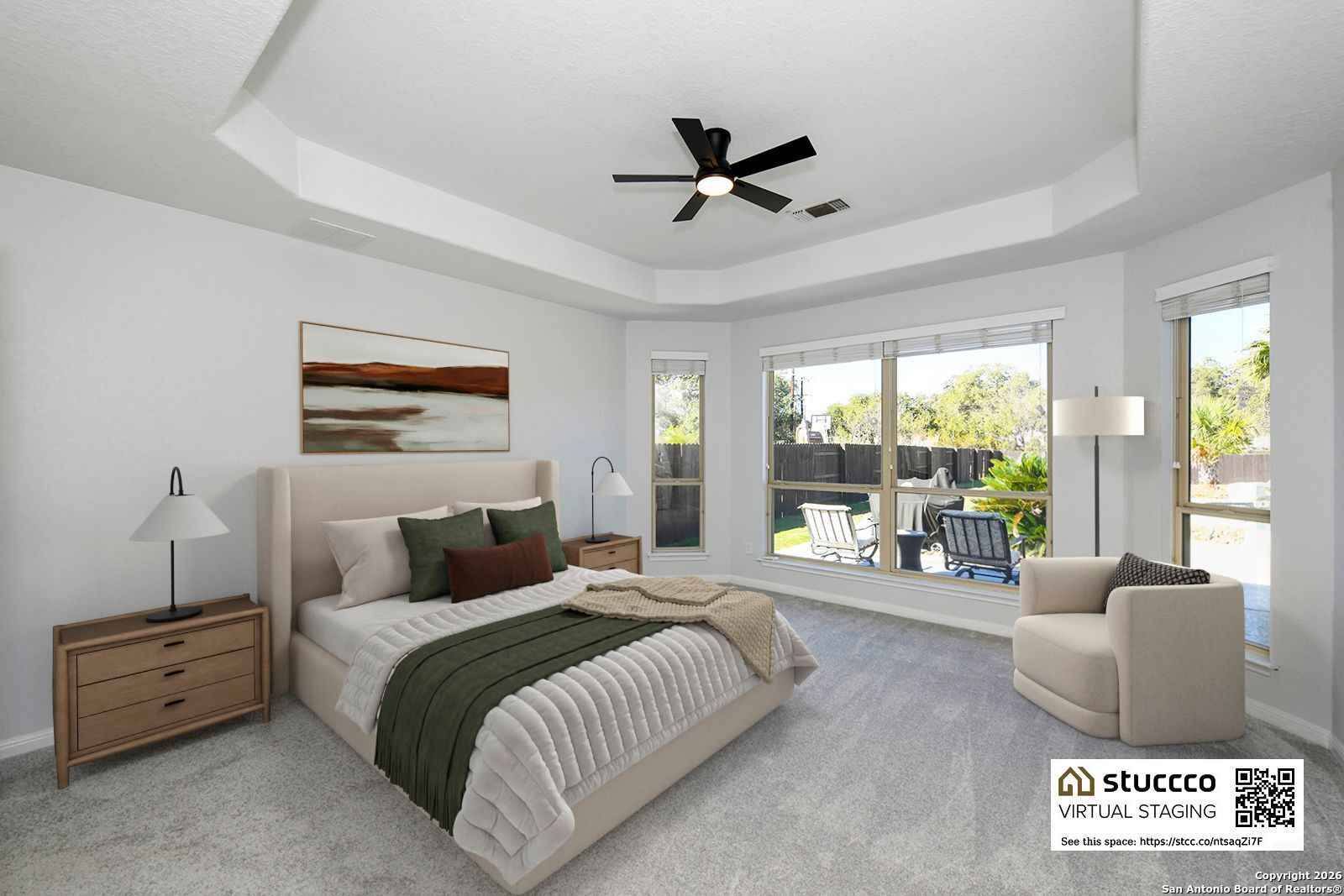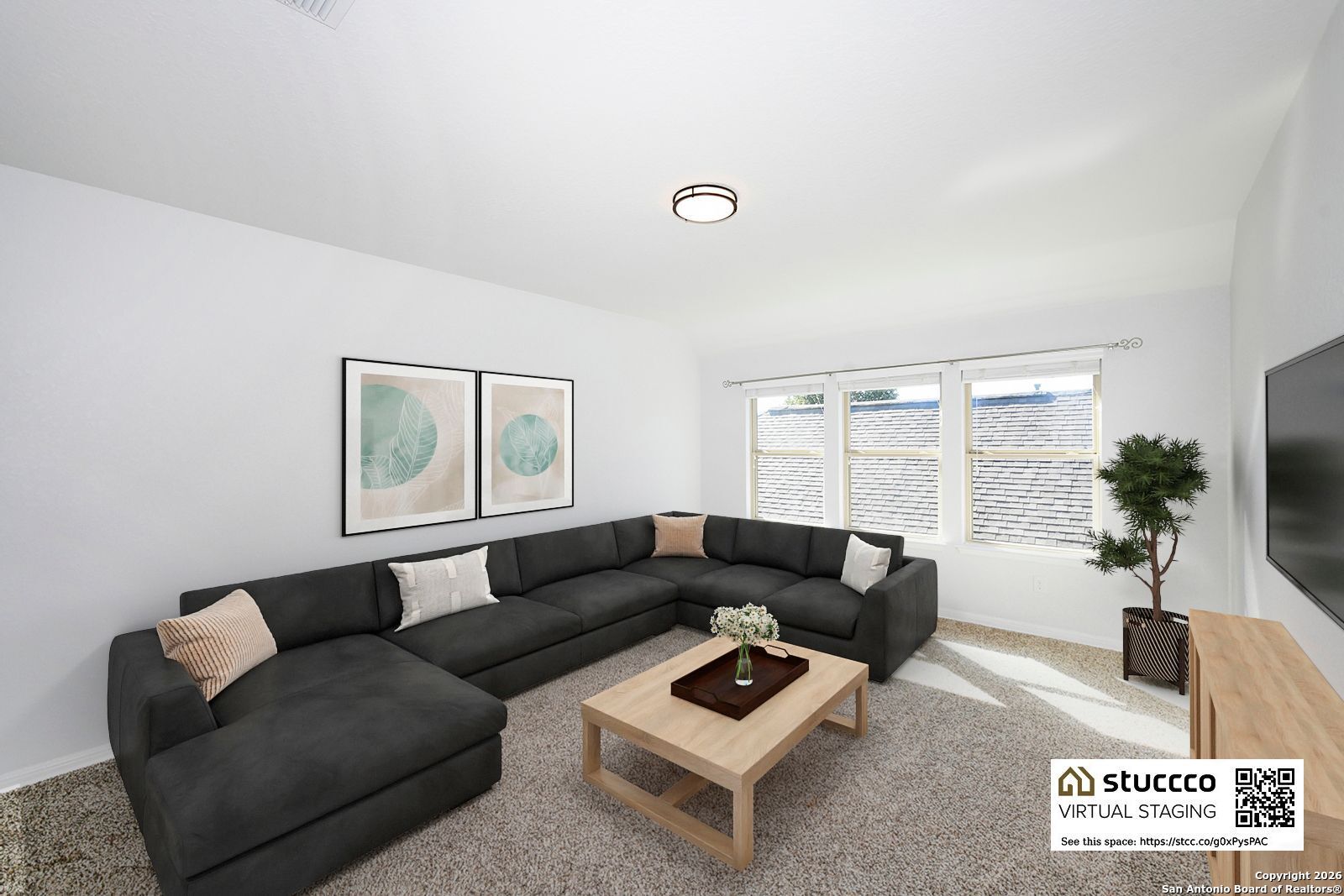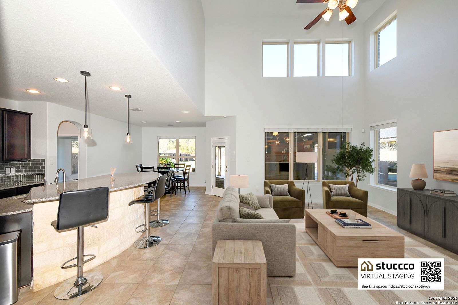 Welcome to this exceptional 5-bedroom, 4-bathroom residence offering 3,439 square feet of thoughtfully designed living space on a private cul-de-sac in a gated community with NO CITY TAX. Upon entry into the spacious foyer, potential buyers will find a fully-equipped functional kitchen, multiple eating areas, and a stone fireplace in a living area filled with natural light. The over-sized primary suite is conveniently located on the main level, providing a private retreat with room to unwind. Also downstairs is a dedicated study-ideal for working from home-as well as a secondary bedroom and bathroom. Spaces found upstairs include three generously sized secondary bedrooms, two full bathrooms, a game room and a separate media room, perfect for movie nights, entertaining, and everyday fun. Step outside to your private outdoor living area complete with a swimming pool with no backyard neighbors, creating a peaceful setting for relaxation and gatherings. Whether hosting friends or enjoying a quiet evening, this backyard oasis offers both privacy and enjoyment. Located just minutes from abundant dining and shopping options, H-E-B, and highly rated schools, this home combines comfort with convenience. Enjoy easy access to Government Canyon State Natural Area, Lackland Air Force Base, UTSA, and more-making this an ideal home for both lifestyle and location. 6123 Gypsy Bell offers many extras- from the impressive stamped concrete sidewalk and tiled front porch to the whole house generator to the FULLY EQUIPPED media room- yes, you read that right! All media room furniture and equipment convey. This is a rare opportunity to own a spacious, well-appointed home with resort-style amenities in an unbeatable area.