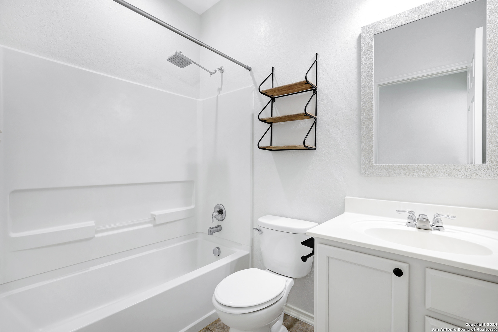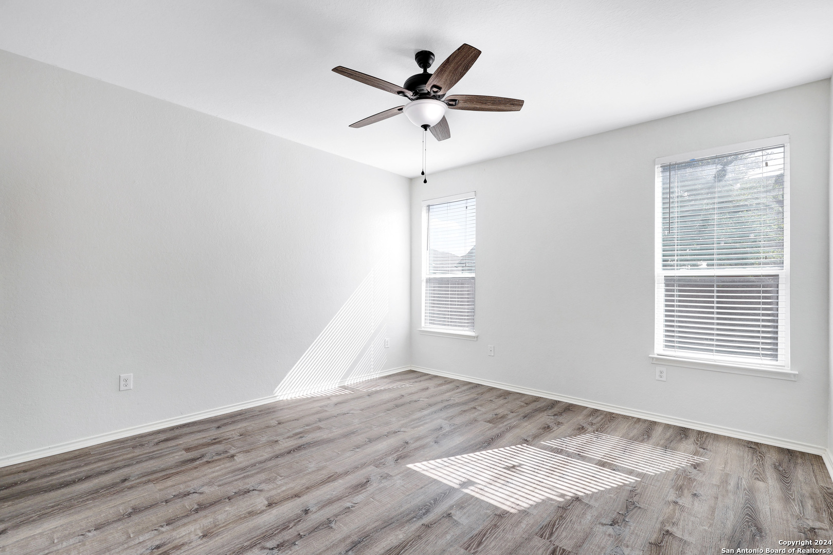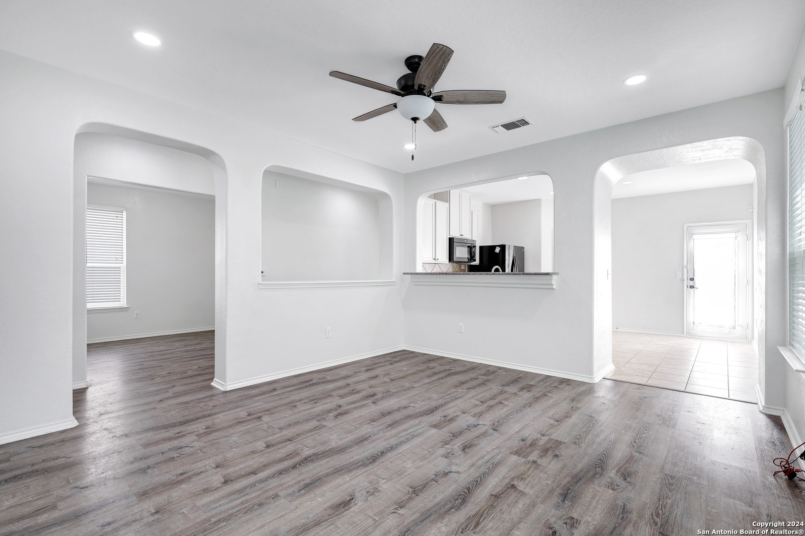 Welcome to this stunning, single-story home offering luxury and convenience, just minutes from Fort Sam Houston, Randolph Brooks AFB, top-tier shopping, dining, and more. Step inside to experience sleek laminate and tile flooring throughout-no carpet to worry about! Enjoy versatile dining options with a breakfast nook in the kitchen or a spacious, flexible room adjacent to the living area, perfect for formal meals, a home office, or additional lounge space. The home is move-in ready and comes complete with major appliances, including a washer, dryer, and refrigerator. Ceiling fans throughout provide year-round comfort, while the thoughtful layout offers a serene retreat in the primary suite. To top it off, a generous backyard awaits, perfect for outdoor relaxation. This home truly has it all.