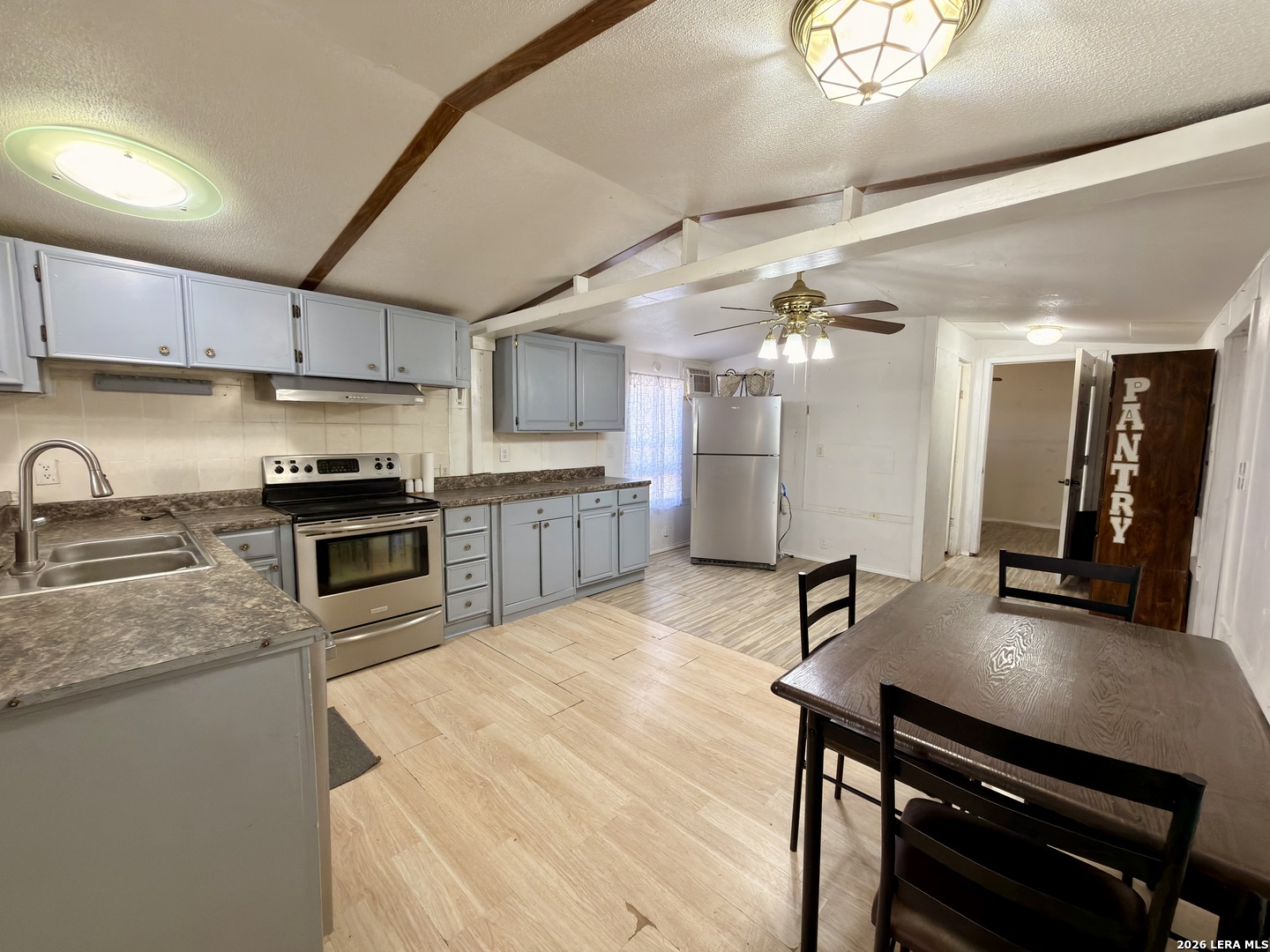 A charming 2-bedroom, 1-bath manufactured home built in 1975, offering approximately 844 sq ft of comfortable living space on a cleared lot just under one-fifth of an acre. This property features public water and sewer, along with window units for HVAC. The kitchen has been recently updated and includes newer appliances, adding modern convenience to the home. Located in the Poteet Original neighborhood and served by Poteet ISD.