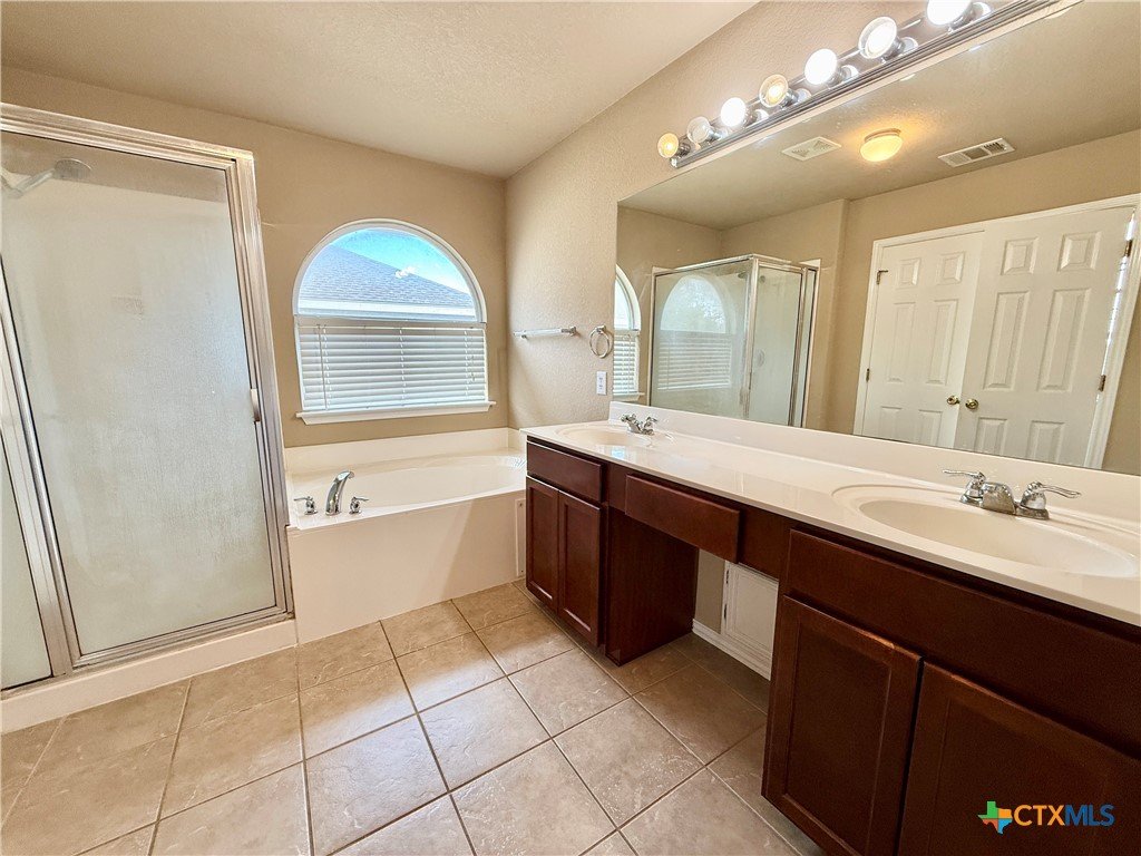 This home is located in the desirable Mission Hills Estates subdivision in popular New Braunfels! Executive two-story residence embodies Texas Hill Country living at its finest. From the moment you step inside, you're greeted with spacious living and dining areas, providing versatile space for relaxation and entertainment. One of the standout features of this home is the dual primary bedrooms with en-suite bathrooms and generous closet space. One primary bedroom conveniently located downstairs off the main living area, offering privacy and convenience, complete with a full bathroom and a walk-in closet. Upstairs, you'll find a large primary suite featuring a spacious walk-in closet and a luxurious primary bathroom complete with a garden tub, stand-up shower, and water closet. Two additional bedrooms located upstairs complete with a 3rd full bath. With a total of 4 bedrooms and 3.5 baths, this home offers ample space for both family and guests. Kitchen is open to the main living area complete with an eat-in kitchen and breakfast bar. Enjoy a nice window above the sink! Cozy up by the wood-burning fireplace in the downstairs main living area. So much room for activities! Laundry room downstairs. 2 car garage. Pre-plumbed for water softener. Fenced backyard. Schedule a tour today!