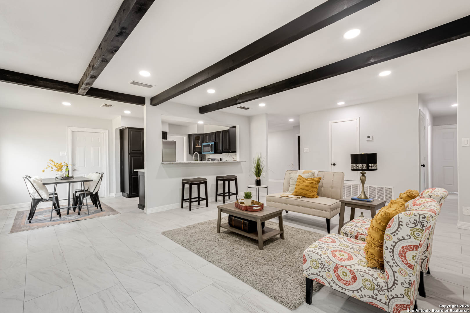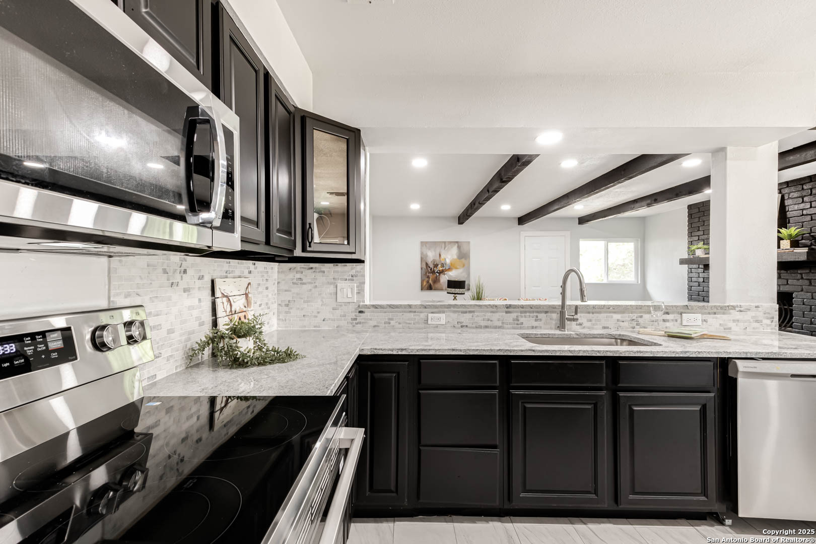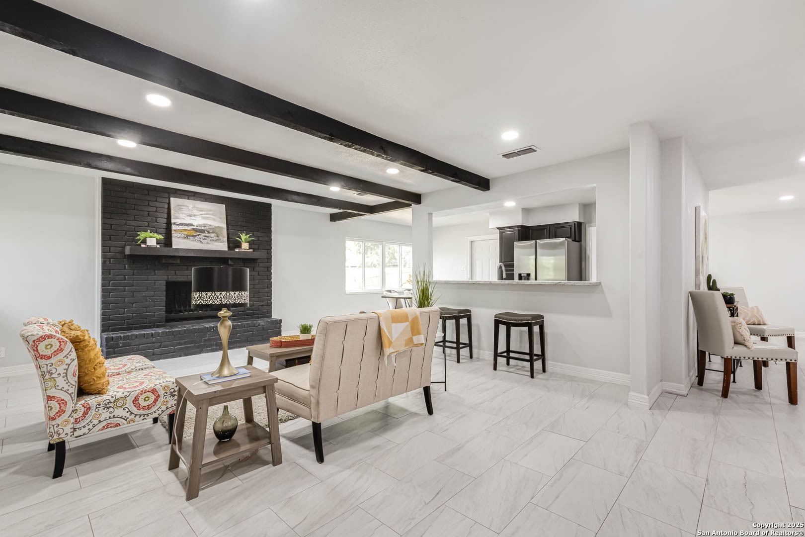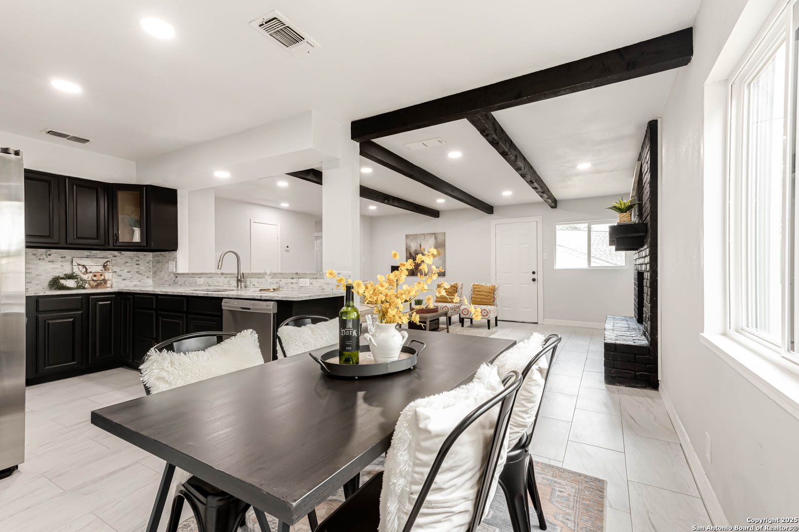 ***OPEN HOUSE SATURDAY 11/22 10-12pm***Modern Style Meets Everyday Comfort in This Fully Renovated One-Story Gem along up to $5,000 concession! Welcome to a beautifully updated home tucked in a quiet, established neighborhood. From the striking arched entry to the bold black brick fireplace, this residence blends character with modern elegance. Boasting brand new windows, doors, deck, and appliances; take a look at how it can fit your needs! Step inside to discover an airy, open-concept layout with crisp white walls, stylish tile flooring, and black ceiling beams that add a designer touch. The spacious living area flows seamlessly into a sleek kitchen featuring granite counters, stainless steel appliances, black cabinetry, and a chic backsplash-ideal for everyday living or entertaining. All updated work has been properly permitted and city approved. Natural light floods the dining nook through charming arched windows, while updated bathrooms showcase modern vanities, black hardware, and spa-inspired tilework. The primary suite offers a peaceful retreat with plush carpet, a modern ceiling fan, and a walk-in closet. A dual-sink vanity adds function and luxury to the ensuite bath. Additional perks include upgraded lighting, ample storage, and a versatile backyard ready for your personal touch. Located near top shopping, dining, and commuter routes, this move-in-ready home checks all the boxes. Don't miss your chance to tour this stylish, turn-key property-schedule your showing today!