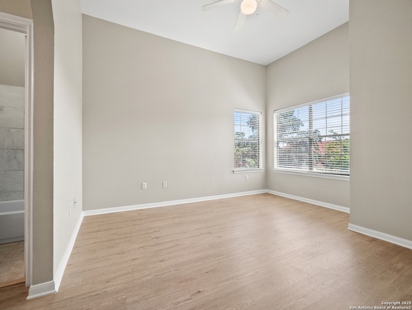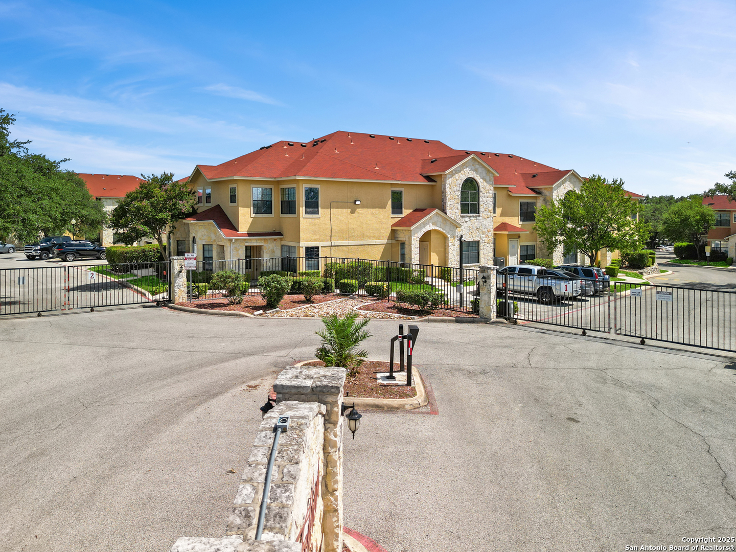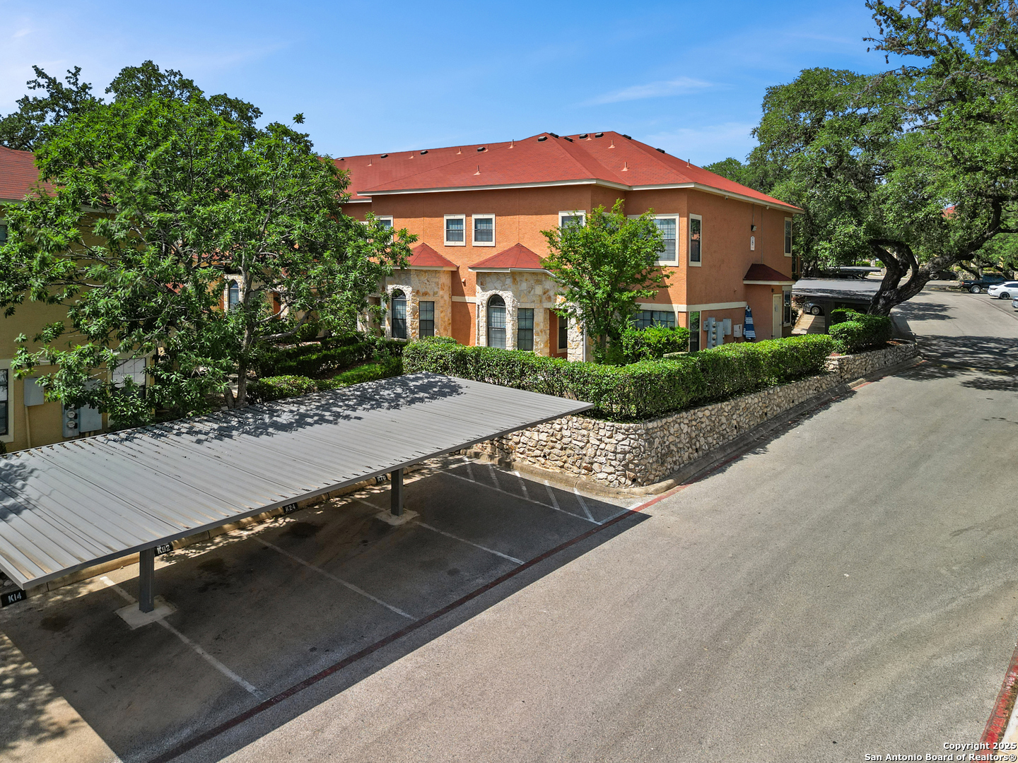 Minutes from the Medical Center and USAA, this townhome-style condo puts you right in the heart of San Antonio convenience. Fresh paint and easy-care laminate wood floors throughout mean zero carpet and effortless upkeep. Upstairs, both bedrooms feature their own private full baths and dramatic cathedral ceilings, creating a bright, airy vibe. There's also a handy half bath downstairs for guests. Your covered parking spot (K70) sits just steps from your front door. Eckhert Place offers a gated entry, beautiful oak trees, a pool, and a clubhouse-ideal for relaxing or entertaining friends. Perfect for anyone seeking a low-maintenance lifestyle in a great location. Move in now and, when you're ready, you might even turn a profit instead of just paying rent. Want to learn more or schedule a tour?