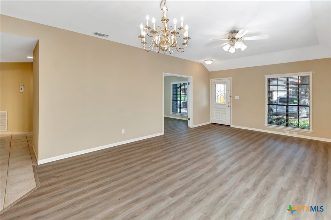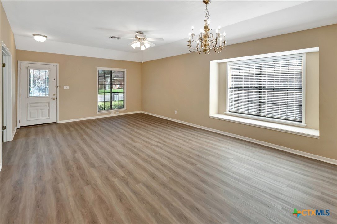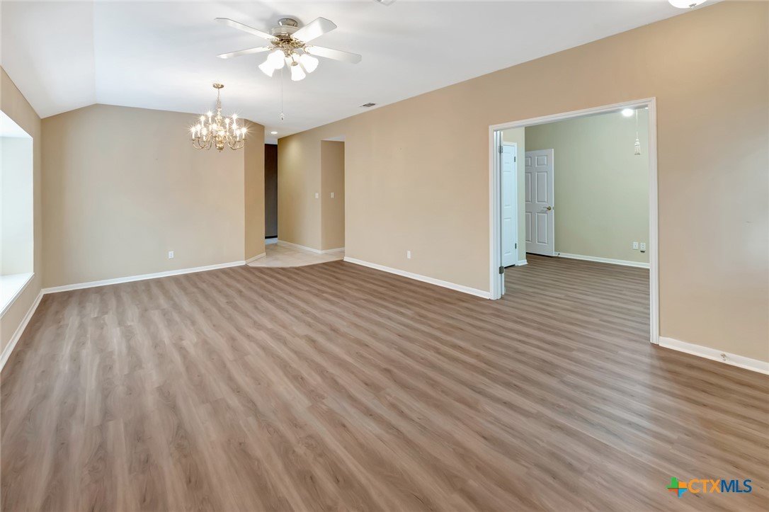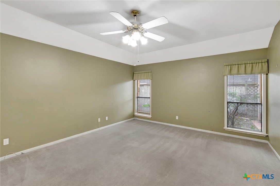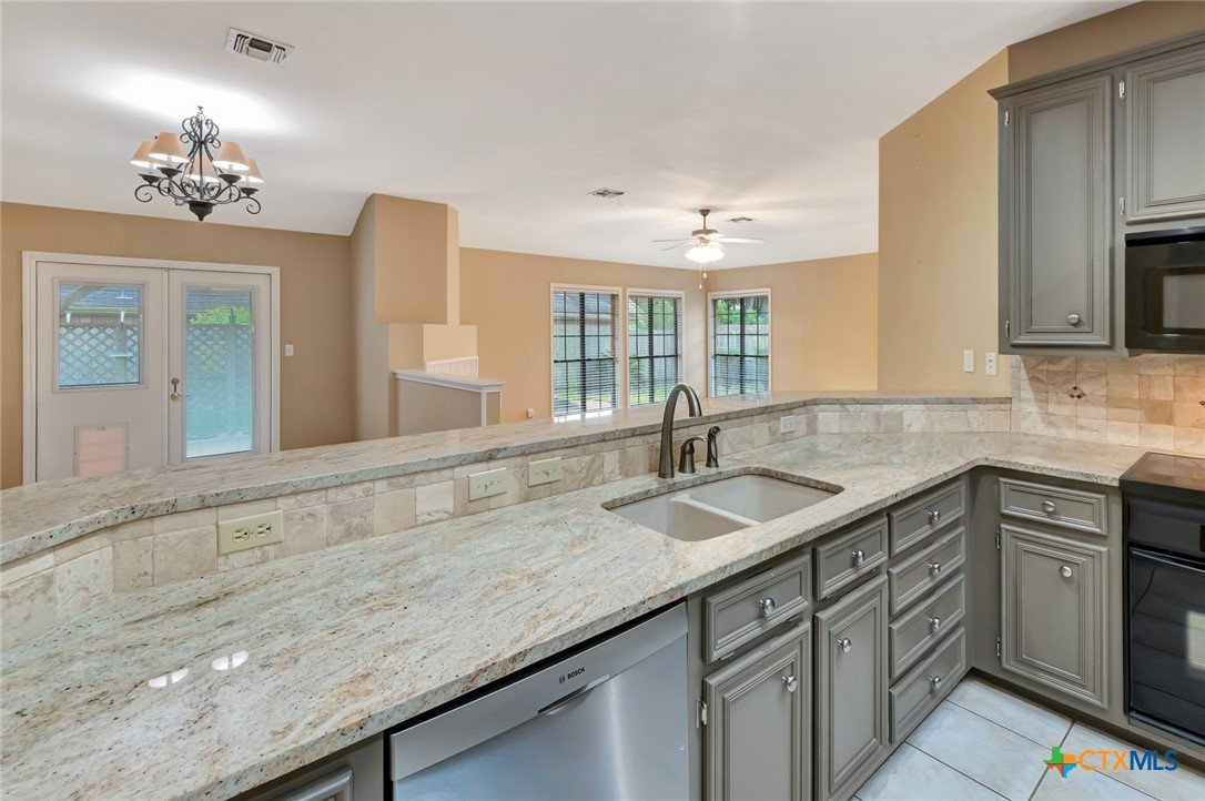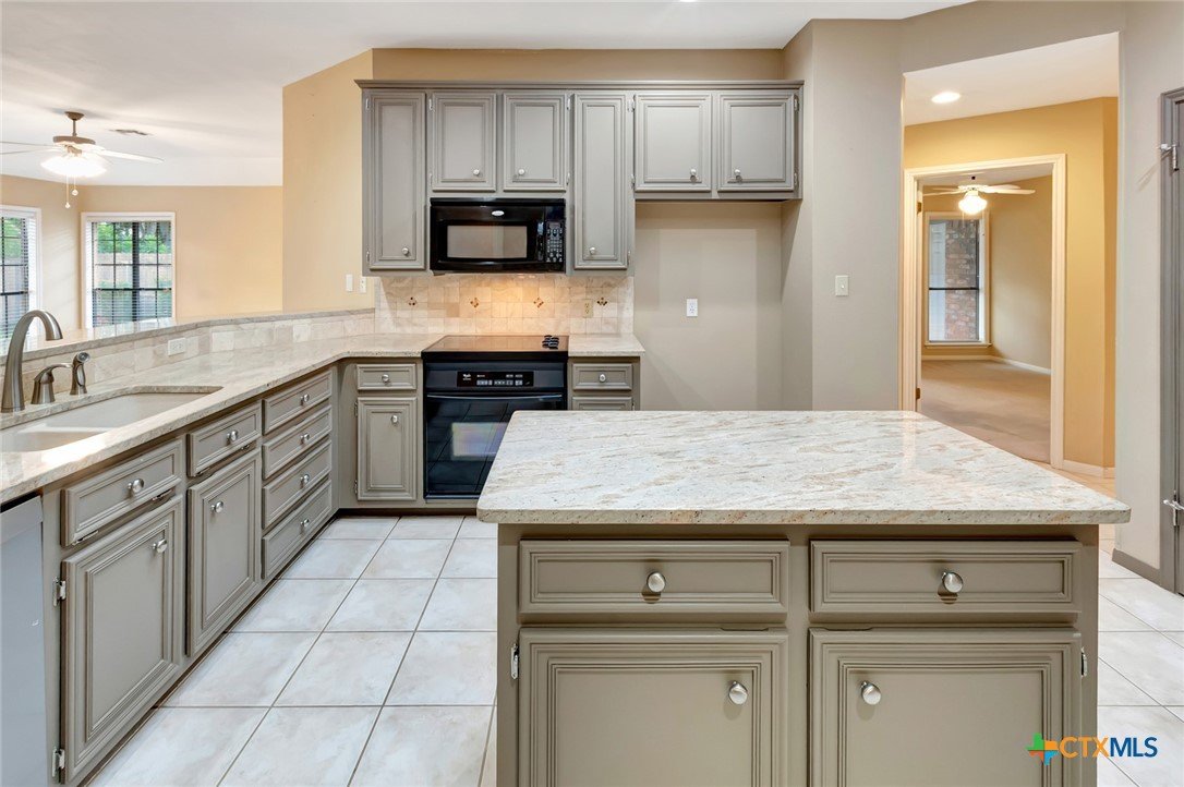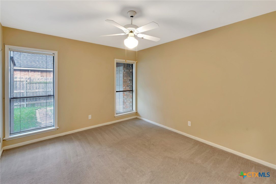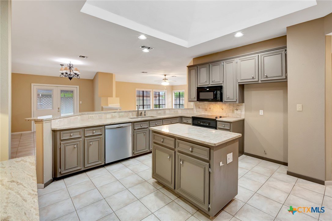 Welcome to this spacious 4-bedroom, 2-bath home located in Bell Tower. As you step inside, you're greeted by a welcoming living area and formal dining room—perfect for entertaining. The heart of the home is a large island kitchen featuring granite countertops, centrally located to serve both the front and back living spaces. Just off the kitchen is a cozy breakfast nook that opens to a second living area with a charming corner fireplace. The split primary suite offers privacy and comfort, complete with a double vanity, walk-in shower, and a relaxing soaking tub. The secondary bedrooms are generously sized, with one located near the front entry that can easily function as a home office. A rare feature in this neighborhood, the home includes a 3-car attached garage, with the third bay currently serving as an air-conditioned workshop with extensive built-in cabinetry. Enjoy outdoor living on the patio just off the breakfast area—an ideal space for morning coffee or evening gatherings. This well-maintained home combines functionality and flexibility in a sought-after location.