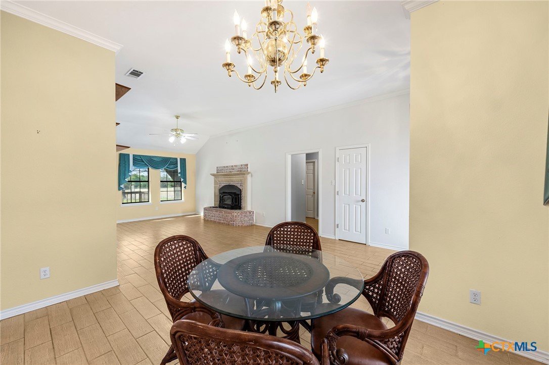 Quiet country life, but minutes from Lampasas! This home is super cute and is ready for someone to make it their own. With 2 patio areas, it is built for entertaining. Plus the den has a woodburning stove (practically brand new) Roof was replaced in 2025. There is a 2 car carport, with a shop attached with electricity...and a rain harvest tank that is fed from the carport roof catches. Did I mention the 100+ year old Oak trees???