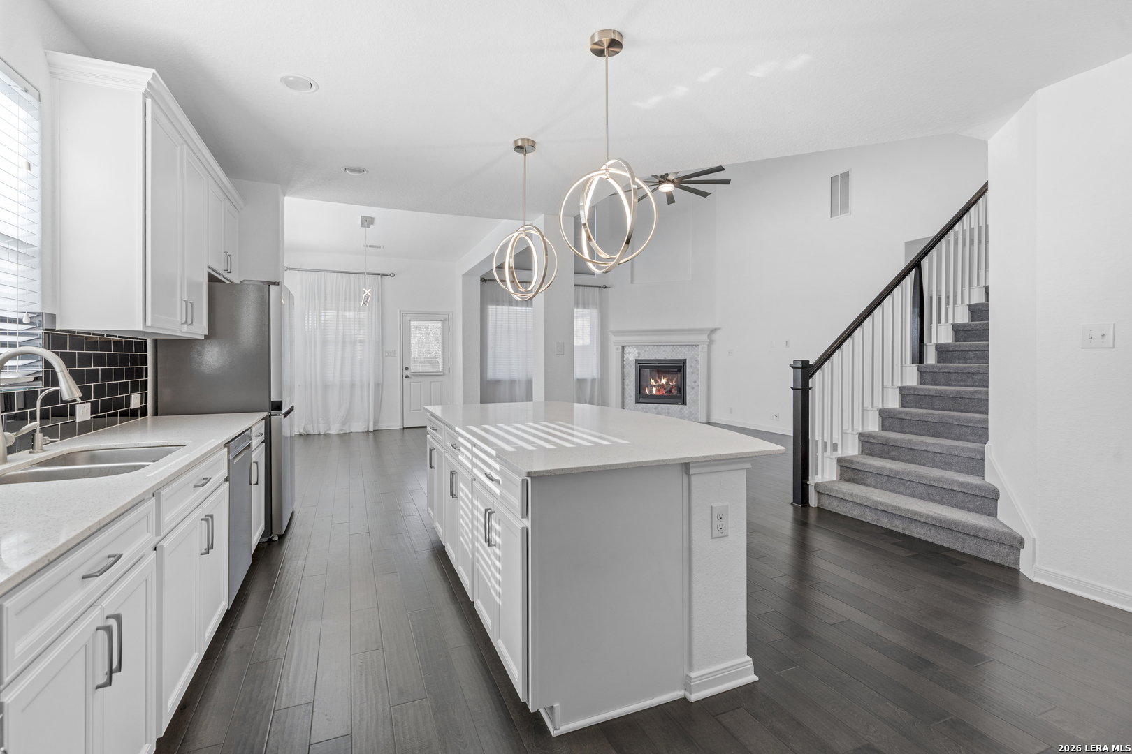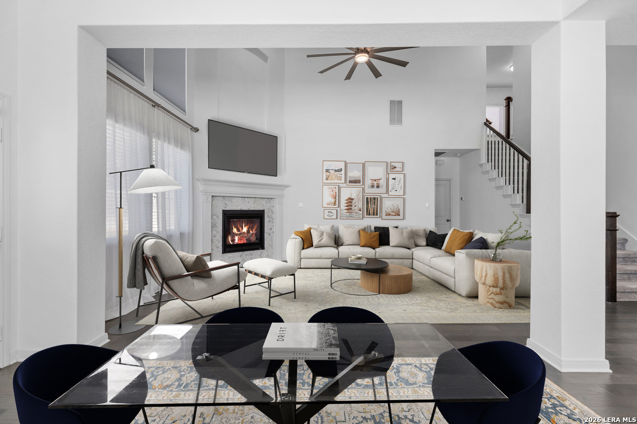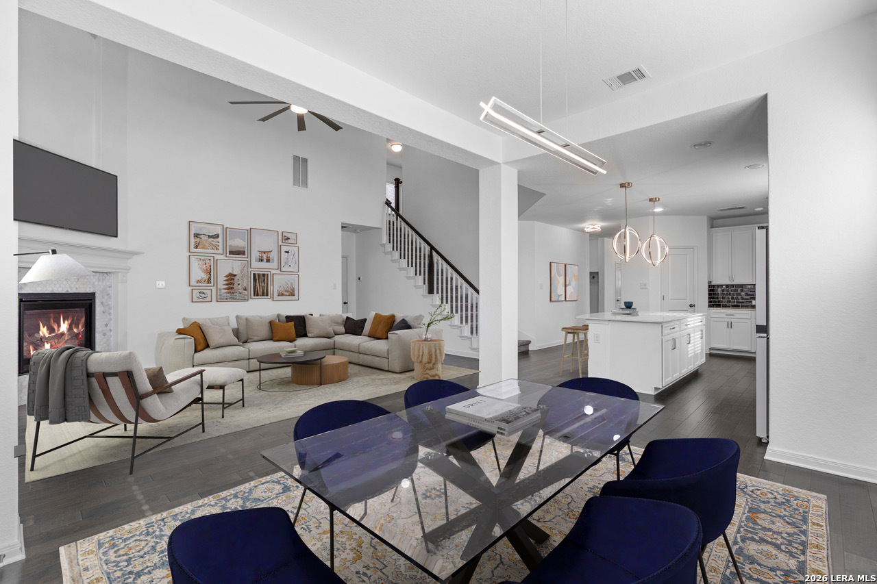 Nestled within the sought-after Hillside on Landa community, this impeccably maintained New Braunfels residence offers refined living in one of the city's most desirable in-town locations. From the moment you step inside, you'll appreciate the exceptional care and attention to detail throughout this 4-bedroom, 3.5-bath home with a study, built by David Weekly and designed with both elegance and efficiency in mind. The gourmet kitchen is a true centerpiece, featuring stainless steel appliances, a gas cooktop, expansive center island, walk-in pantry, designer countertops, and timeless subway tile backsplash, ideal for entertaining and everyday luxury. Rich hardwood floors, modern statement lighting, and a gas fireplace add warmth and sophistication to the living spaces. The primary suite provides a serene retreat with a spa-inspired bathroom, highlighted by a large walk-in shower and upscale finishes. Every detail reflects quality craftsmanship and thoughtful upgrades. Ideally located just minutes from historic Landa Park, downtown New Braunfels, premier shopping, medical facilities, and IH-35, this exceptional home delivers luxury, comfort, and convenience in perfect harmony.