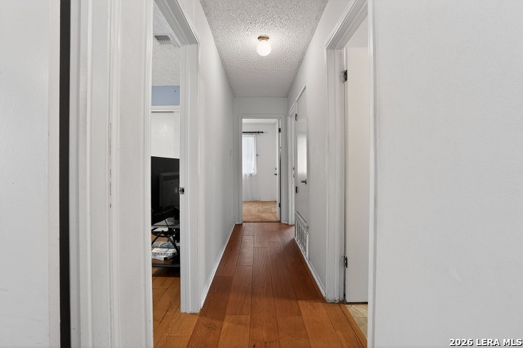 Welcome home to comfort, space, and timeless charm at **6202 Ridge Arbor St**a beautifully maintained **3-bedroom, 2-bathroom** residence offering **1,776 square feet** of inviting living space on a desirable **corner lot** in San Antonio. From the moment you arrive, this home makes a strong first impression. Mature trees frame the property, creating shade and curb appeal, while the corner-lot setting offers extra breathing room, privacy, and a sense of openness. The **2-car garage** and extended driveway provide ample parking and everyday convenience. Step inside to discover a bright, open interior designed for both everyday living and entertaining. The spacious living area features **vaulted ceilings with exposed wood beams**, warm wood-look flooring, and a striking **brick fireplace** that serves as a cozy focal point. Natural light pours in through large windows and plantation-style shutters, giving the space an airy, welcoming feel. The open-concept layout flows seamlessly into the kitchen and dining areas, making gatherings effortless. The kitchen offers generous cabinet storage, expansive countertops, and a functional breakfast bar perfect for casual meals, morning coffee, or hosting guests. Adjacent dining spaces provide flexibility for formal dinners or relaxed family meals. This homes **three well-sized bedrooms** are thoughtfully laid out to balance comfort and privacy. The primary suite includes an en-suite bathroom and ample closet space, creating a peaceful retreat at the end of the day. The two additional bedrooms are versatile and ideal for guests, a home office, or hobbies, while the second full bathroom is conveniently located for easy access.