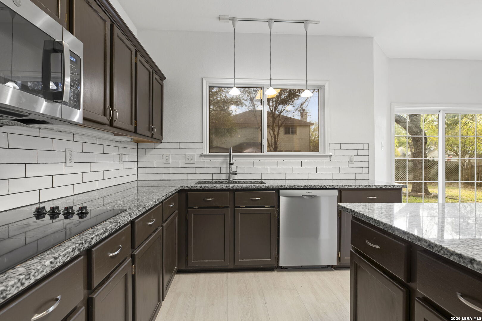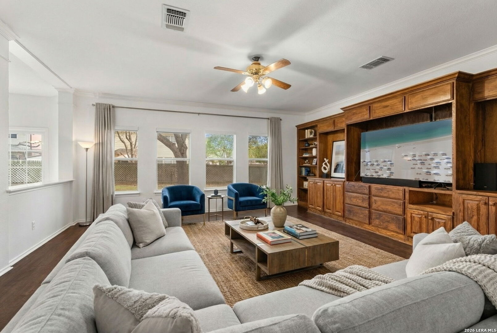 Welcome to this beautifully updated home in the desirable Oakmont Downs community! Designed with both comfort and entertaining in mind, this home features a spacious living and dining area, complemented by a large family room that offers plenty of room to gather and relax. The open floor plan seamlessly flows into an inviting eat-in kitchen, providing easy access to a generously sized, landscaped backyard-perfect for hosting festive family functions or enjoying quiet evenings outdoors. Upstairs, you'll find three ample bedrooms along with a huge loft that offers incredible flexibility. Whether you need a game room, home office, or even a fourth bedroom, this versatile space can adapt to your lifestyle. This home has been thoughtfully updated with major improvements, including a new roof (2017) and HVAC system (2018). Recent upgrades include foundation repair, a fully remodeled kitchen with new appliances, updated bathrooms, new flooring, fresh interior paint, elegant granite countertops, and the addition of a water softener. Conveniently located with easy access to IH-10, UTSA, and the Medical Center, this move-in-ready home combines modern updates, functional living space, and an unbeatable location.