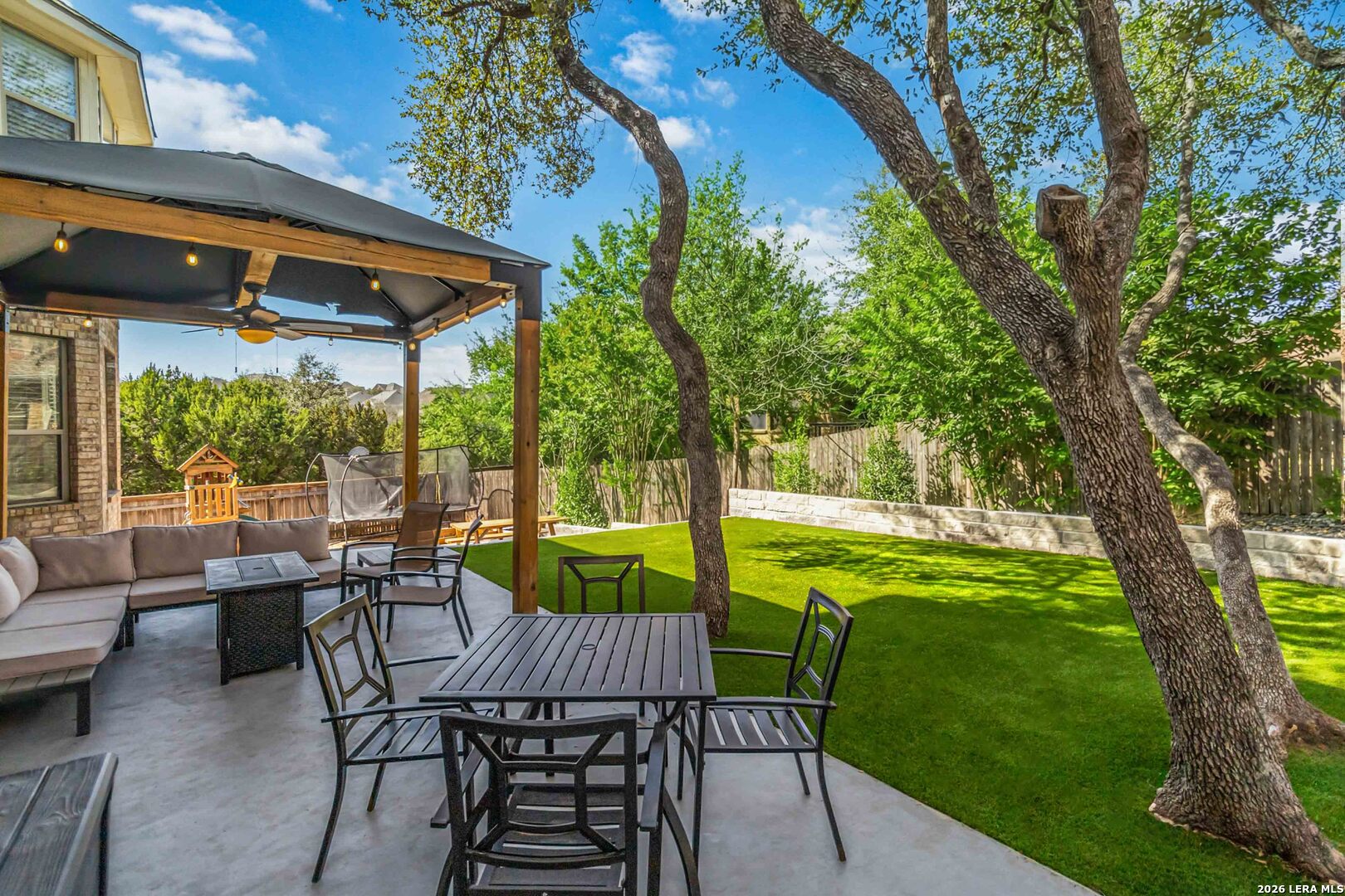 Move-in ready and beautifully updated home located in the highly desirable gated community of Terra Bella in Stone Oak! Situated in an award-winning school district, this home showcases a renovated kitchen and bathrooms along with a redesigned backyard. Major recent upgrades include a new roof, new HVAC systems, and a new water heater. From the moment you step inside, you're welcomed by abundant natural light and soaring ceilings that create an inviting and spacious atmosphere. The fully renovated kitchen is truly a showstopper, featuring quartz countertops, an oversized island, stainless steel appliances, and a luxurious, modern feel perfect for both everyday living and entertaining. Upstairs, the serene primary suite offers a relaxing retreat highlighted by a beautifully updated spa-inspired bathroom. Down the hall, you'll find secondary bedrooms along with a flexible bonus space ideal for a playroom, library, or additional living area. Adding to this home's uniqueness, the third floor provides incredible versatility - perfect for a home office, media room, workout space, or even a fifth bedroom. Step outside to a redesigned backyard created for entertaining and relaxation, offering the perfect setting for gatherings or quiet evenings at home. Residents will also enjoy resort-style neighborhood amenities including a playground, swimming pool, sports court and scenic walking trails. With modern updates, versatile living spaces, and an unbeatable location, this home is a must-see!