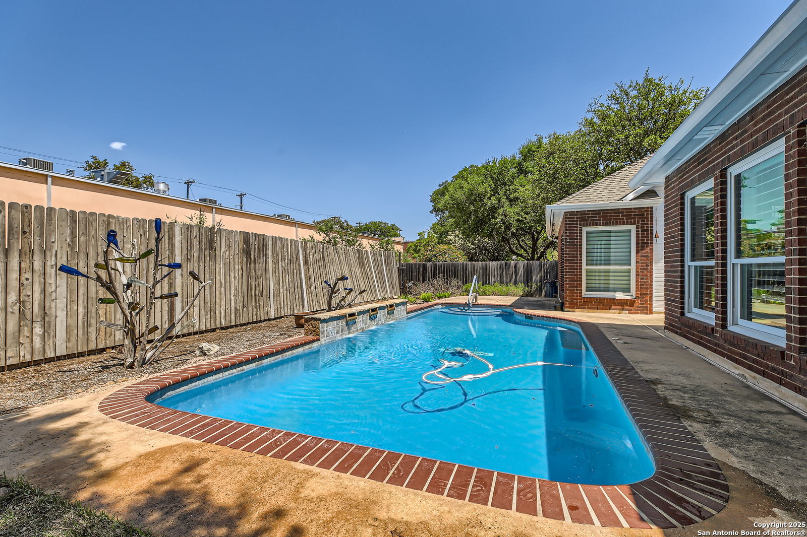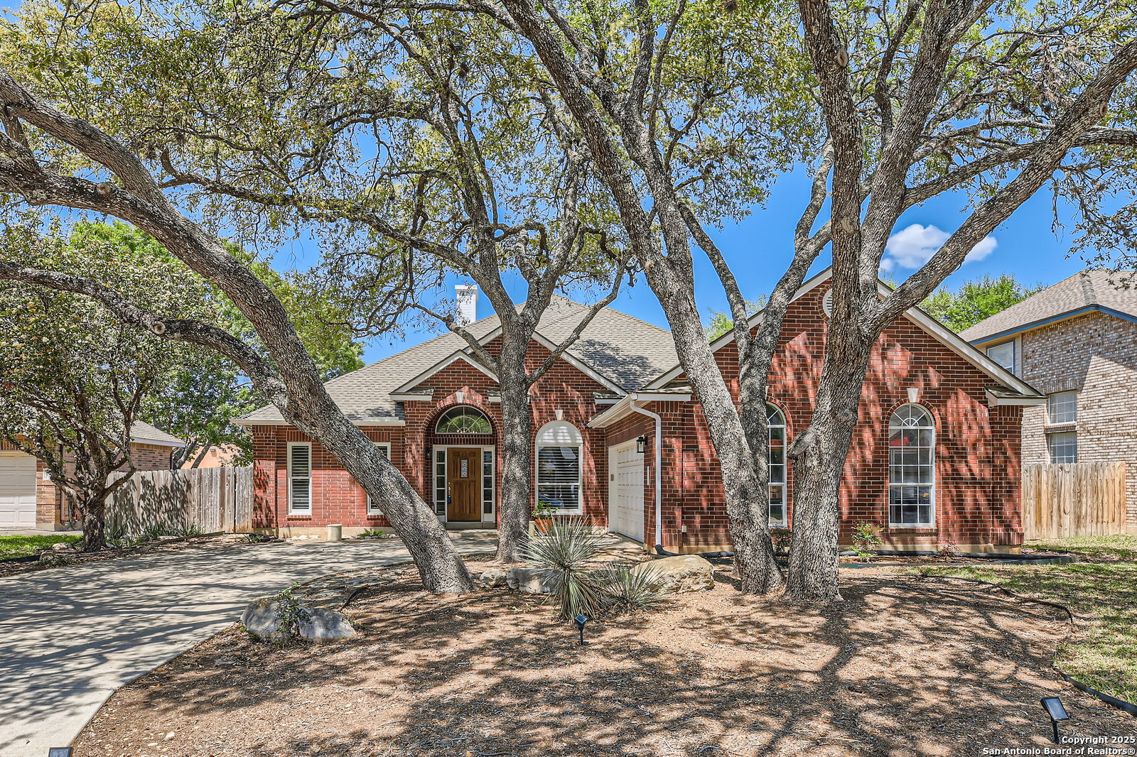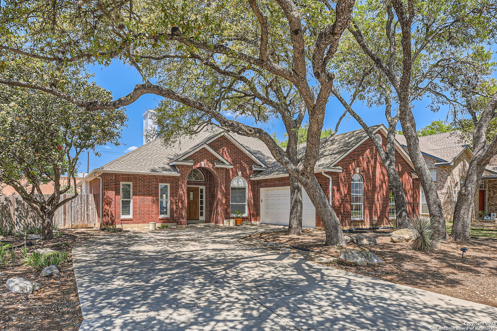 Welcome to your dream home at 6231 Stable Point Drive, a move-in ready single-story sanctuary in the heart of Oakmont Estates, San Antonio. Tucked away on a peaceful cul-de-sac, this lovingly maintained gem radiates warmth and invites you to create lasting memories. Step inside to discover a charming open floorplan that flows effortlessly, filled with thoughtful touches like plantation shutters and low-maintenance tile flooring that add a touch of timeless elegance. Imagine cozy evenings curled up by the dual-sided fireplace, its glow casting a soft ambiance across the inviting living room and adjacent dining room. The heart of the home, this space is perfect for intimate gatherings or lively celebrations. The spacious primary bedroom is your personal haven, featuring a generous walk-in closet and ensuite with a soaking tub, separate shower, and double vanity-designed for ultimate relaxation. Two additional bedrooms and a well-appointed bathroom offer comfort and versatility. After a long day, retreat to your private backyard paradise, where a heated saltwater pool sparkles under the Texas sun, ready for refreshing dips or starlit swims. The shaded patio beckons for morning coffees or sunset cocktails, creating the perfect backdrop for life's simple joys. With new windows installed in 2023, an oversized garage, and included washer, dryer, and refrigerator, every detail has been considered to make your move seamless. This isn't just a house-it's a place where laughter echoes, dreams take root, and every day feels like home. Come experience the comfort and charm of 6231 Stable Point Drive, and let your next chapter begin!