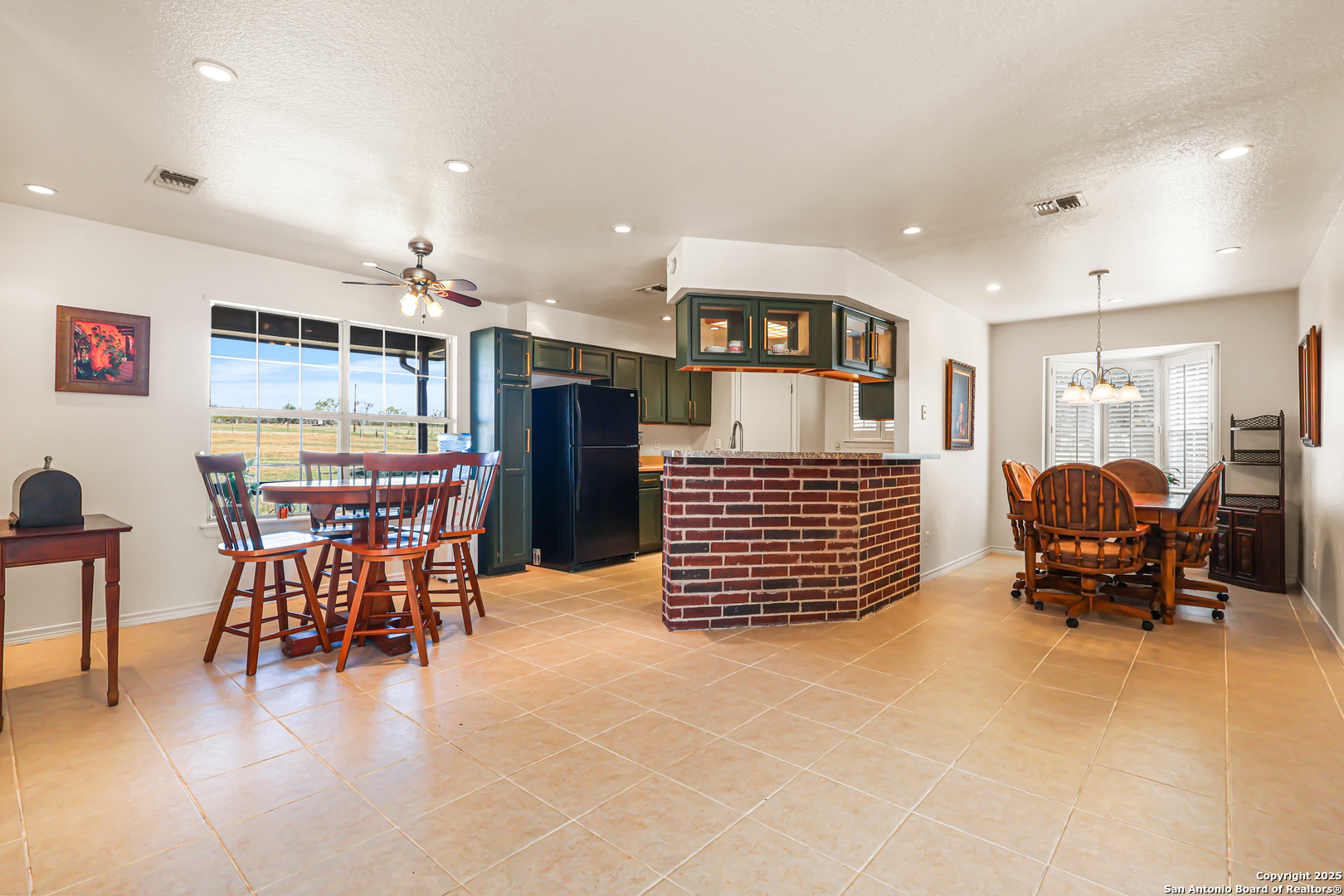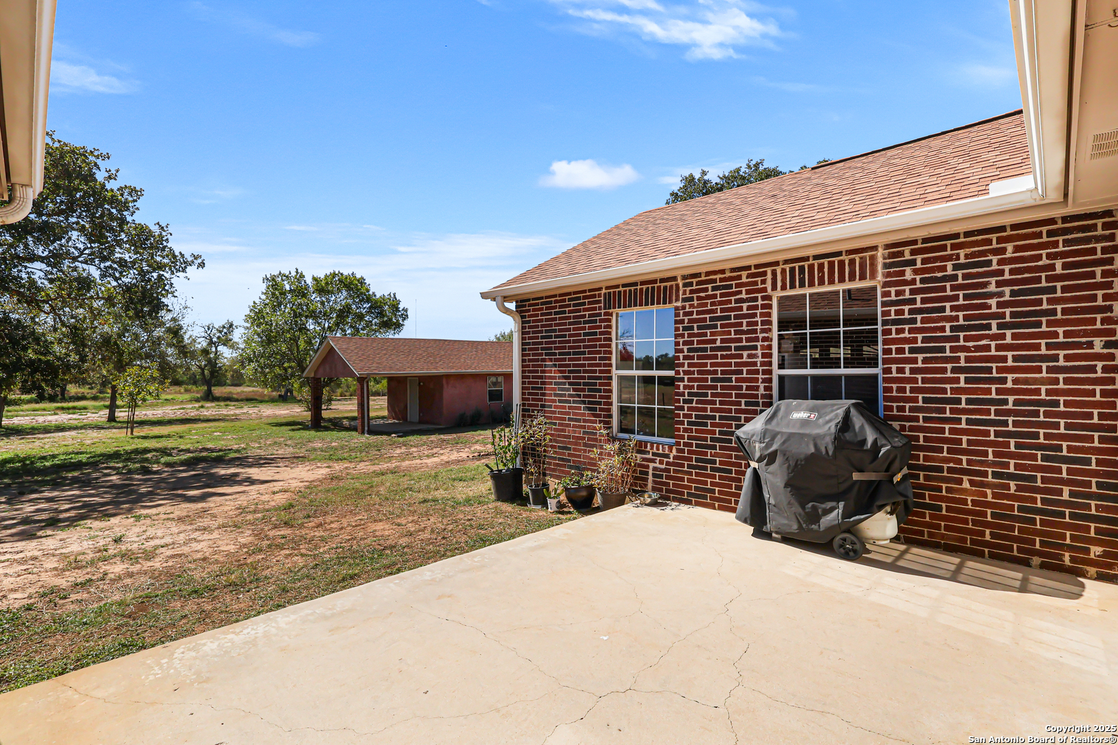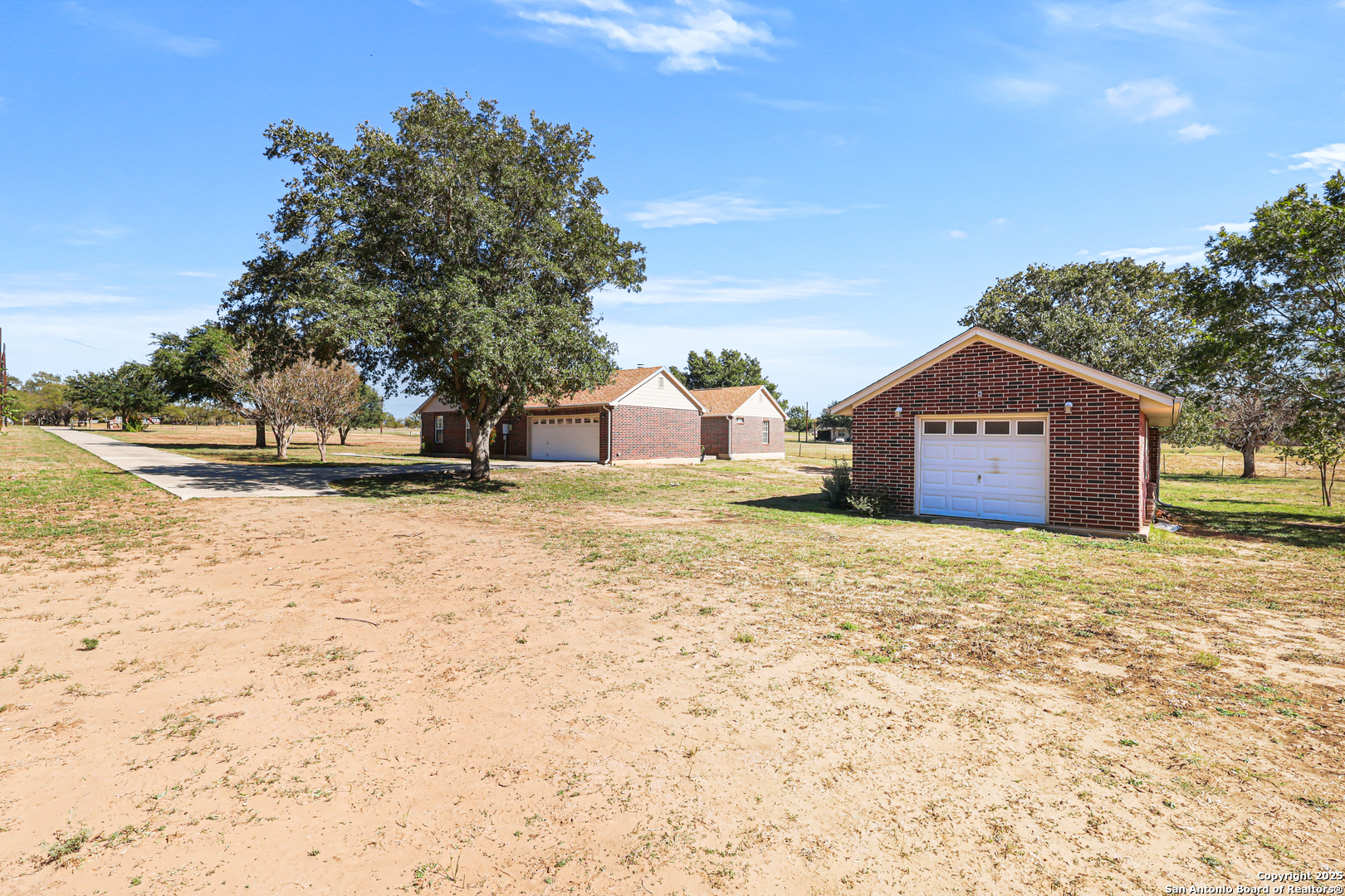 Serene country retreat in the prestigious Estates of Home Place-where peaceful living meets modern comfort on sprawling 5-acres. This meticulously maintained single-story home offers the perfect blend of privacy, space, and thoughtful upgrades, ideal for those seeking tranquility without sacrificing convenience. Step inside to discover a freshly painted interior (2025) that complements the home's warm, inviting atmosphere. The spacious 4-bedroom, 2.5-bath layout includes oversized secondary bedrooms with walk-in closets, a cozy wood-burning fireplace in the living room, and elegant tray ceilings in both the living and primary suite. The primary bedroom features built-in display shelves, a walk-in closet, and an ensuite bath with a garden tub, separate shower, and linen closet. The heart of the home is the kitchen, where trendy green cabinets, stainless steel appliances, a smooth electric range, glass-front cabinets, and a charming brick breakfast bar create a welcoming space for cooking and entertaining. A garden window in the dining area brings in natural light and scenic views, while a Lazy Susan adds accessible storage. All bedrooms are spacious and have ceiling fans. Outdoors, enjoy the freedom of no HOA and the beauty of wide-open Texas skies. Horse-friendly property: Plenty of space for grazing, riding, or future barn additions; detached workshop can easily be converted into a tack room or feed storage. The flexible detached workshop with a 1-car garage door and covered patio is perfect for hobbies or extra storage, and outdoor living. Conveying items include a $5,000 zero-turn riding lawnmower (serviced Nov 2025), edger, workshop table, steel shelves, and utility cart-everything you need to maintain and enjoy your land with ease. Recent updates ensure peace of mind: exterior trim and siding replaced and painted (2025), leaf guard gutters with warranty, energy-efficient water heater (2024), dishwasher (2024), attic solar fan (2023), spray foam insulation (2023), and major foundation and plumbing repairs with transferable warranties (2021). The HVAC system was replaced in 2020 and includes a biannual service contract for optimal performance. Located just 30 minutes from downtown San Antonio, The Estates of Home Place is a quiet, rural neighborhood known for its friendly atmosphere, mature trees, and spacious lots. Nearby attractions include the charming town of La Vernia, local wineries, golf courses, and scenic parks-perfect for leisurely outings and community engagement. Whether you're gardening, relaxing on the patio, or enjoying the stars at night, this property offers a lifestyle of comfort, independence, and natural beauty. Don't miss your chance to own a slice of Texas paradise tailored for your next chapter.