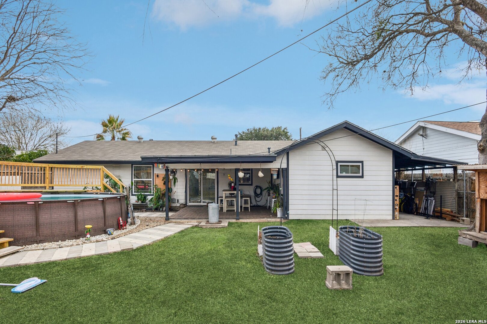 Welcome to this lovely single-story home featuring 3 bedrooms, 3 full bathrooms, and 1,427 square feet of thoughtfully designed living space. The open layout flows with ease and gives you a space that feels both functional and inviting from the moment you walk in. The flexible bonus room gives you options - set it up as a home office, workout space, playroom, or guest retreat. A 1-car garage and extended carport provide ample parking and extra storage. Step outside to a covered patio and spacious backyard designed for relaxing and entertaining. The above-ground pool is perfect for hot San Antonio summers, while the storage shed and chicken coop add practical value and versatility. Located just two blocks from Medina Base Park and minutes from Tech Port Center + Arena, Lackland AFB, shopping, dining, and major highways, this home offers everyday convenience without sacrificing comfort. If you want space, flexibility, and a backyard made for memories, this home deserves a spot on your showing list.
