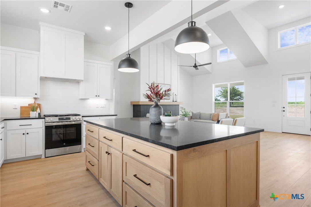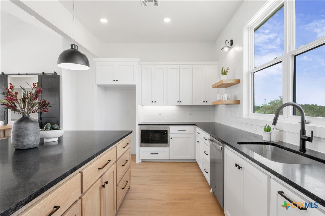 Typical of Brandon Whatley Homes, this modern farmhouse is architecturally pleasing to the eye. With neutral tones including white oak and painted cabinetry mixes, this home is ready for your personalized touch. The vaulted ceiling, open kitchen, living, and dining offer so much light and comfortable space. The luxury vinyl plank in common areas will accommodate an active lifestyle. The 4 bedrooms are in a split arrangement along with a computer/office space. This home sits on 2 acres in north Belton ISD. You'll have plenty of room to spread out and a 20 X 30 shop for all the extra toys. No city limits or HOA.