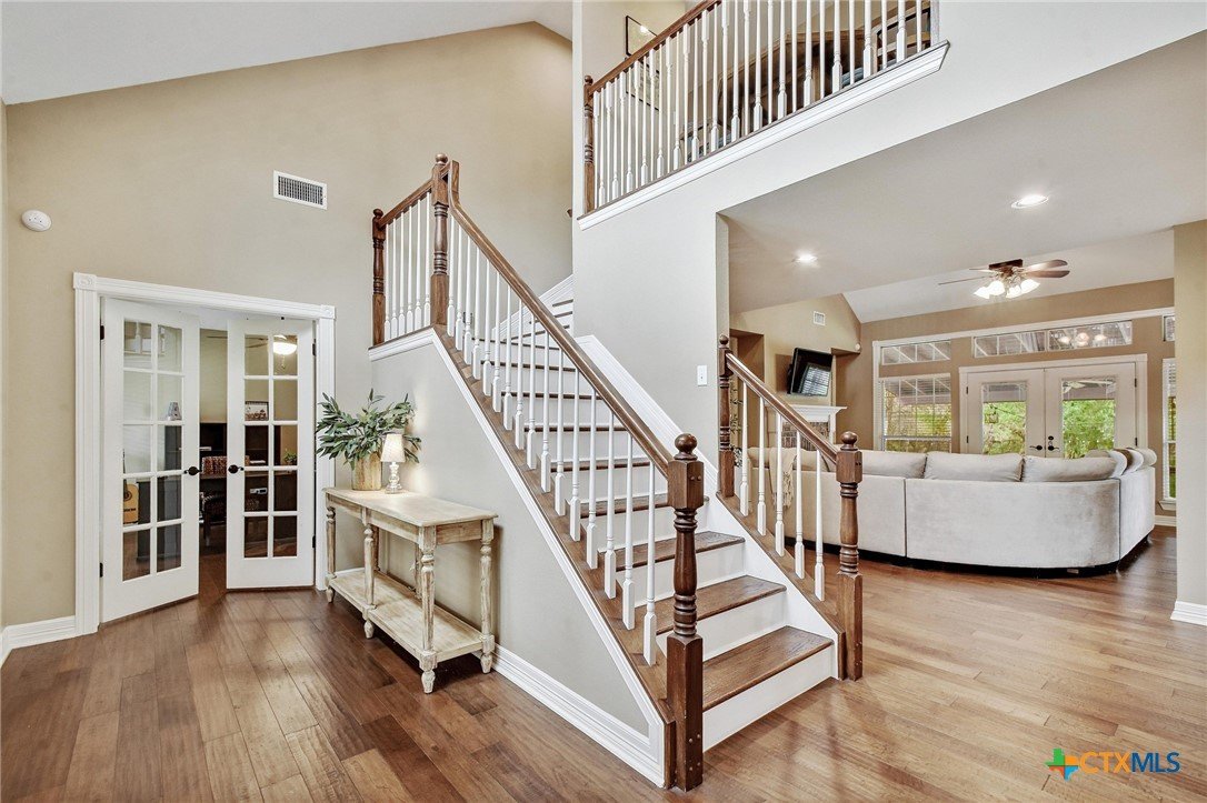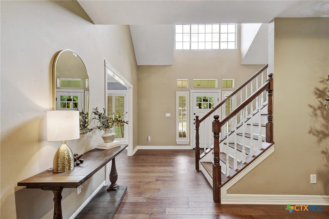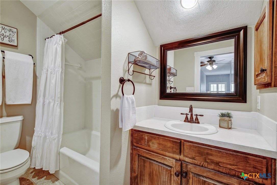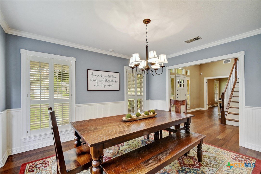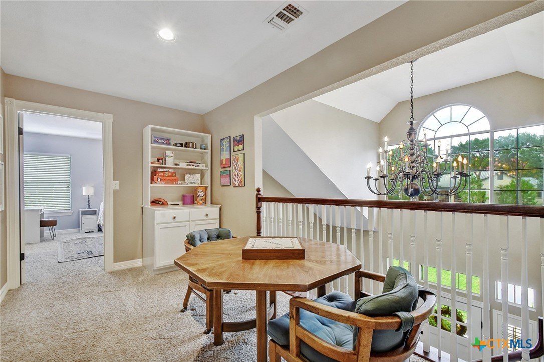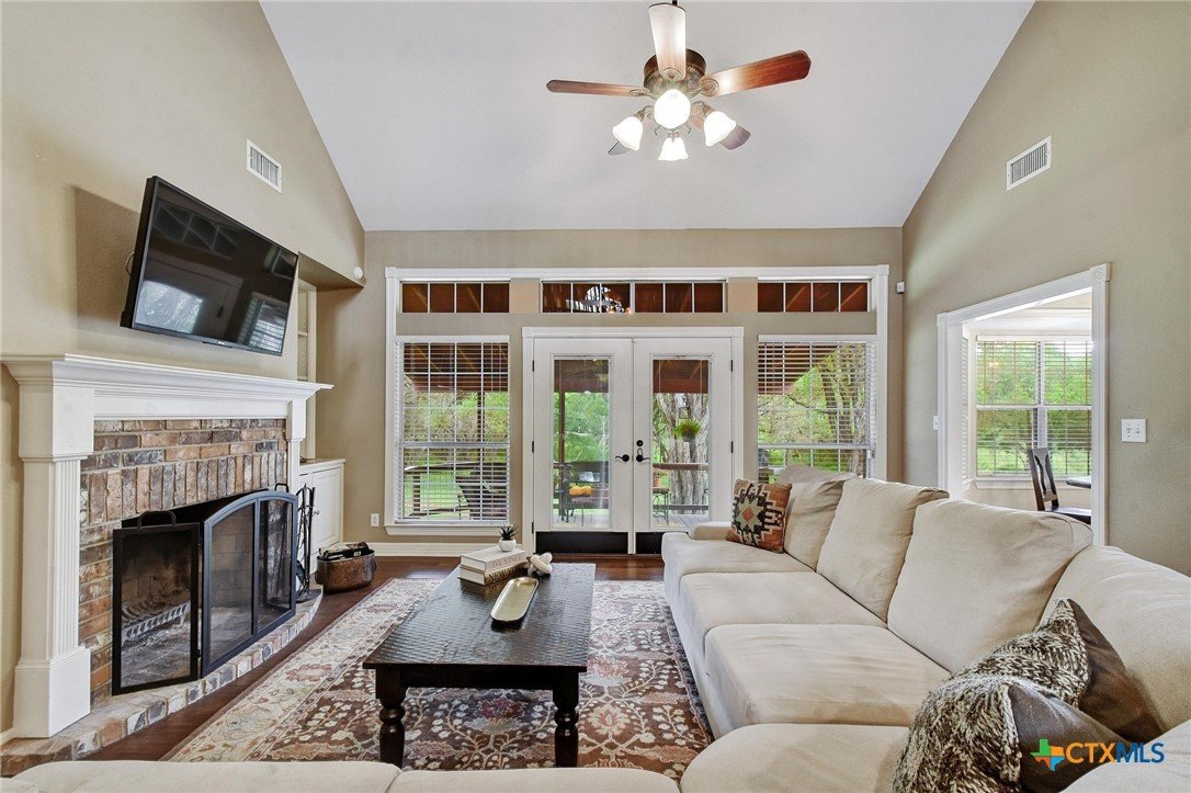 Welcome to 63 Hunters Point Drive – where timeless charm meets modern comfort in the heart of the coveted Hunter’s Creek neighborhood. From the moment you arrive, the inviting curb appeal draws you in—anchored by a sweeping covered front porch that spans the length of the home. It’s the perfect spot for a pair of rocking chairs, a morning coffee, and a view of your peaceful, tree-lined street. Inside, this 4-bedroom, 4.5 bathroom home offers over 3,300 square feet of thoughtfully designed space. The open-concept living area is bathed in natural light, flowing effortlessly into two dining spaces that are ideal for everything from weeknight dinners to holiday gatherings. Each generously sized bedroom comes with its own en suite bath, offering privacy and comfort for family or guests. The primary suite is conveniently located on the first floor, while a cozy upstairs loft adds a bonus flex space perfect for a playroom or reading nook. But what truly sets this home apart is its setting. Nestled on a lush, one-acre lot that backs to a private ranch, you’ll enjoy quiet mornings watching deer wander through the trees and peaceful evenings under the stars. The expansive back deck is made for entertaining—with dedicated zones for dining, grilling, and lounging, all framed by the beauty of nature. Located just minutes from top-rated schools, downtown New Braunfels, and the charm of local shopping and dining, 63 Hunters Point Drive offers the perfect blend of serenity, space, and convenience. Come experience the kind of lifestyle that feels like a retreat—yet keeps you close to everything. Welcome home.