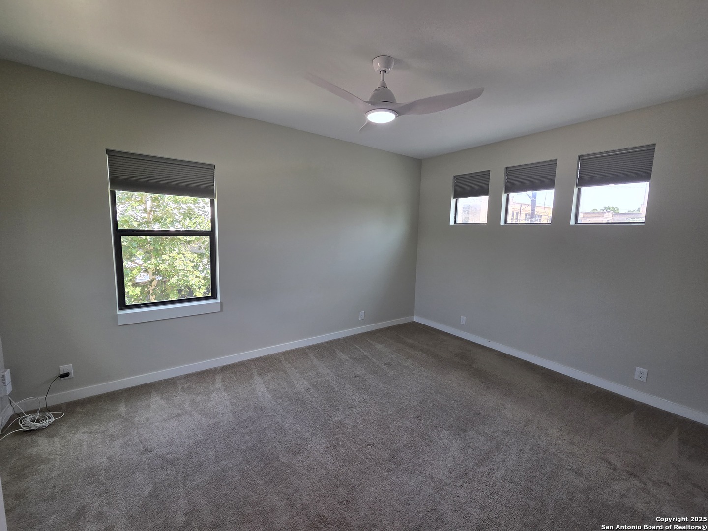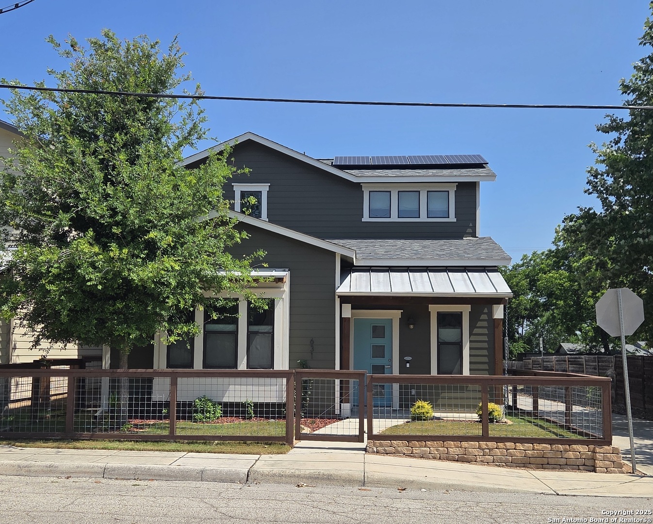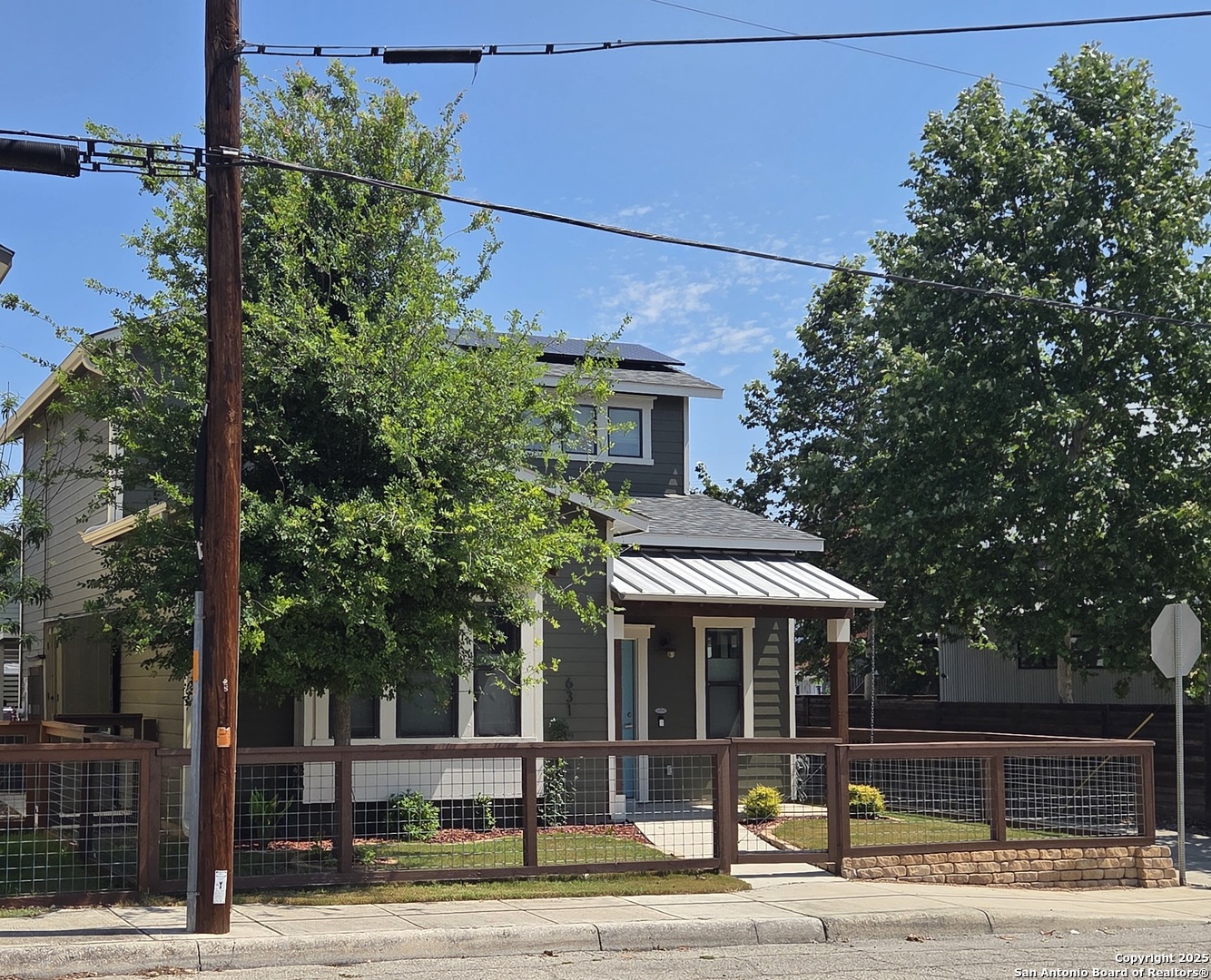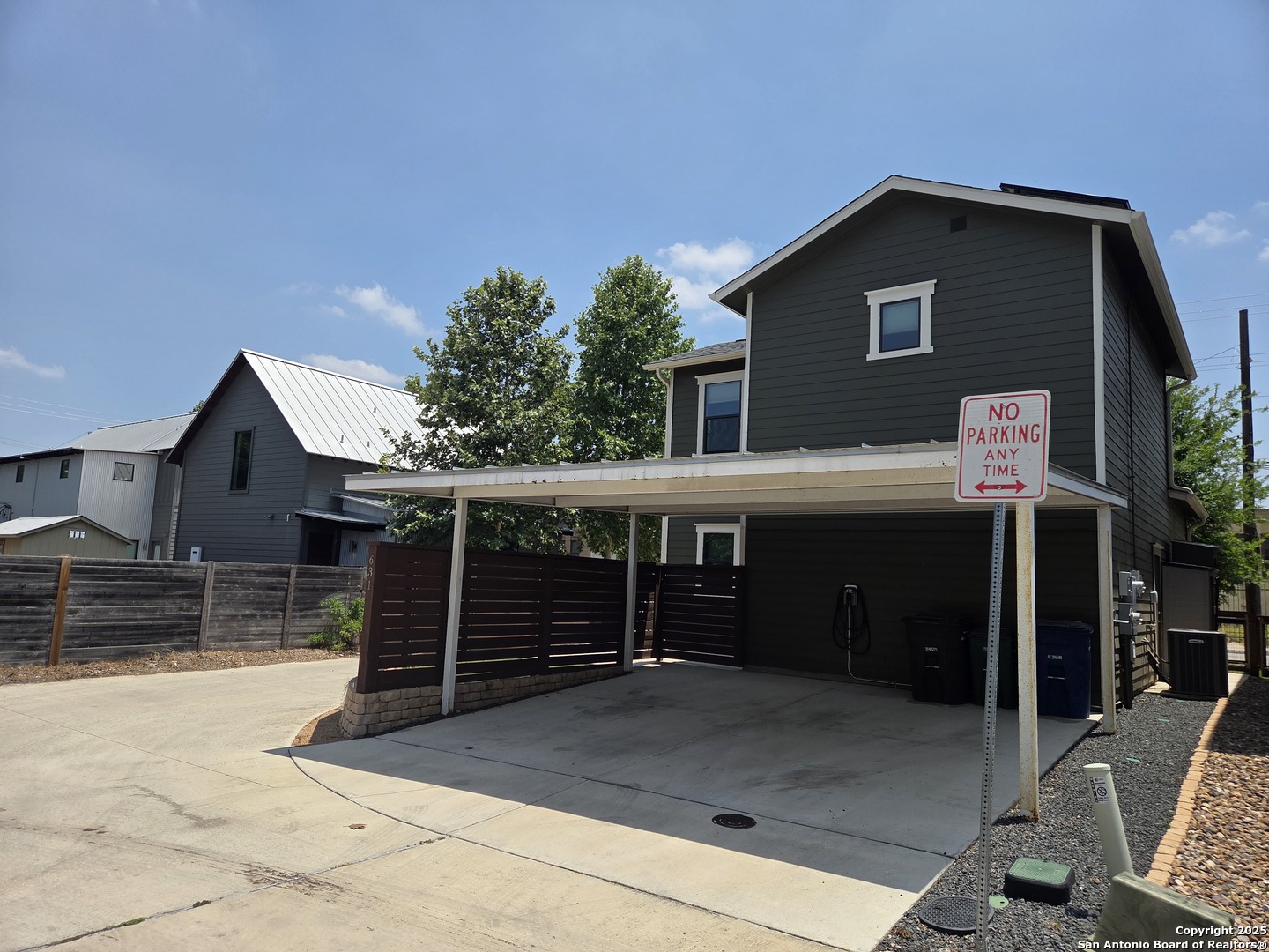 Looking for a home that blends style, security, and sustainability? This energy-efficient, modern two-story rental has it all-fully paid-off solar panels that deliver substantial energy savings, a whole-house water softener for improved water quality, a home alarm system for peace of mind, and two storage sheds for extra storage. The fenced-in yard offers outdoor enjoyment, while the Level 2 EV charger in the 2-car carport makes keeping your vehicle charged hassle-free. Inside, enjoy vaulted ceilings, stained concrete flooring, and a chef's kitchen perfect for entertaining. The primary suite is conveniently located downstairs and includes a private ensuite bathroom and a generous walk-in closet. Upstairs, you'll find two additional bedrooms offering privacy and comfort. Bedroom windows come with modern blackout honeycomb blinds, creating darkness if you need to sleep during the day. Situated just minutes from Fort Sam Houston, The Pearl, The Riverwalk, Southtown, and Downtown, this home is a must-see!
