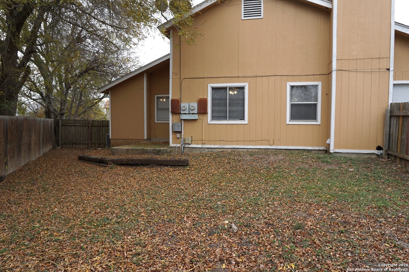 This well-maintained duplex for rent in San Antonio is tucked away on a quiet cul-de-sac and offers a comfortable, functional layout. Featuring 2 bedrooms and 2 full bathrooms, the home includes an open floorplan with high ceilings in the living room and a cozy fireplace that creates a welcoming atmosphere. Linoleum flooring runs throughout-no carpet-making cleaning and maintenance easy. The dining area flows into the kitchen, which comes equipped with a refrigerator, and the utility area is conveniently located in the one-car garage. Outside, enjoy a private backyard with a patio slab and privacy fence, perfect for relaxing or entertaining.