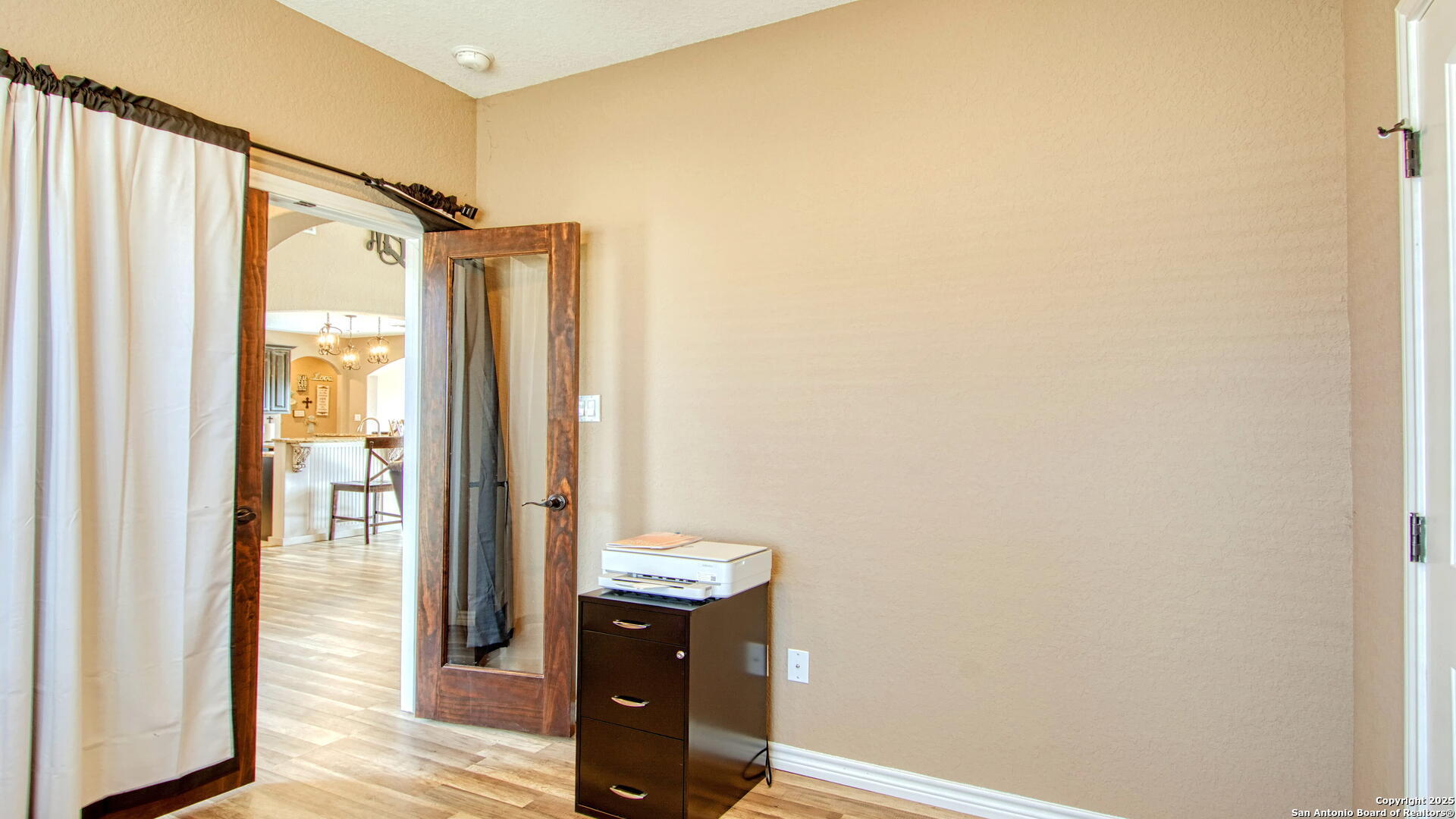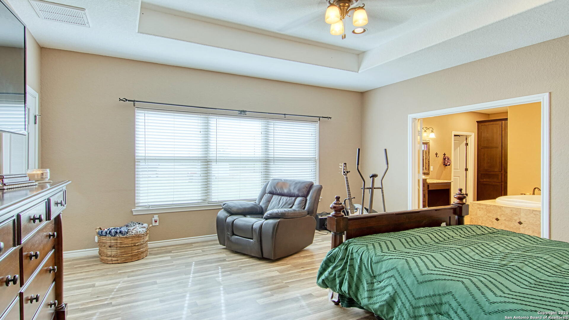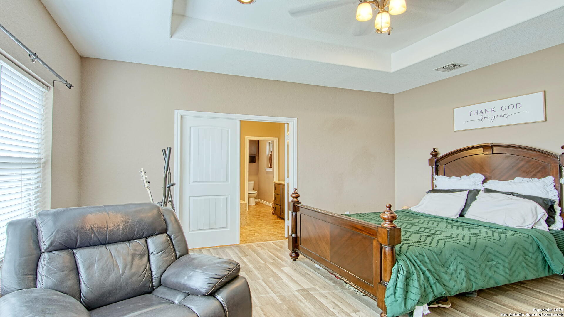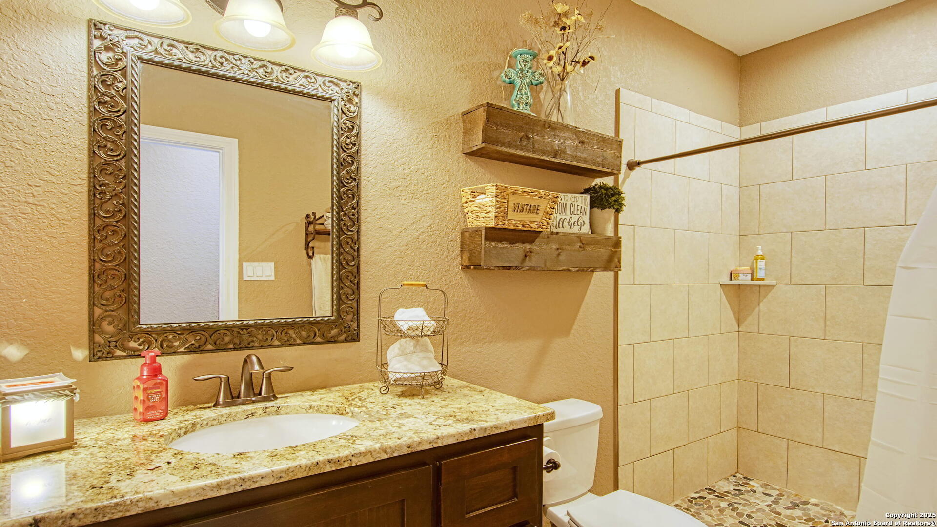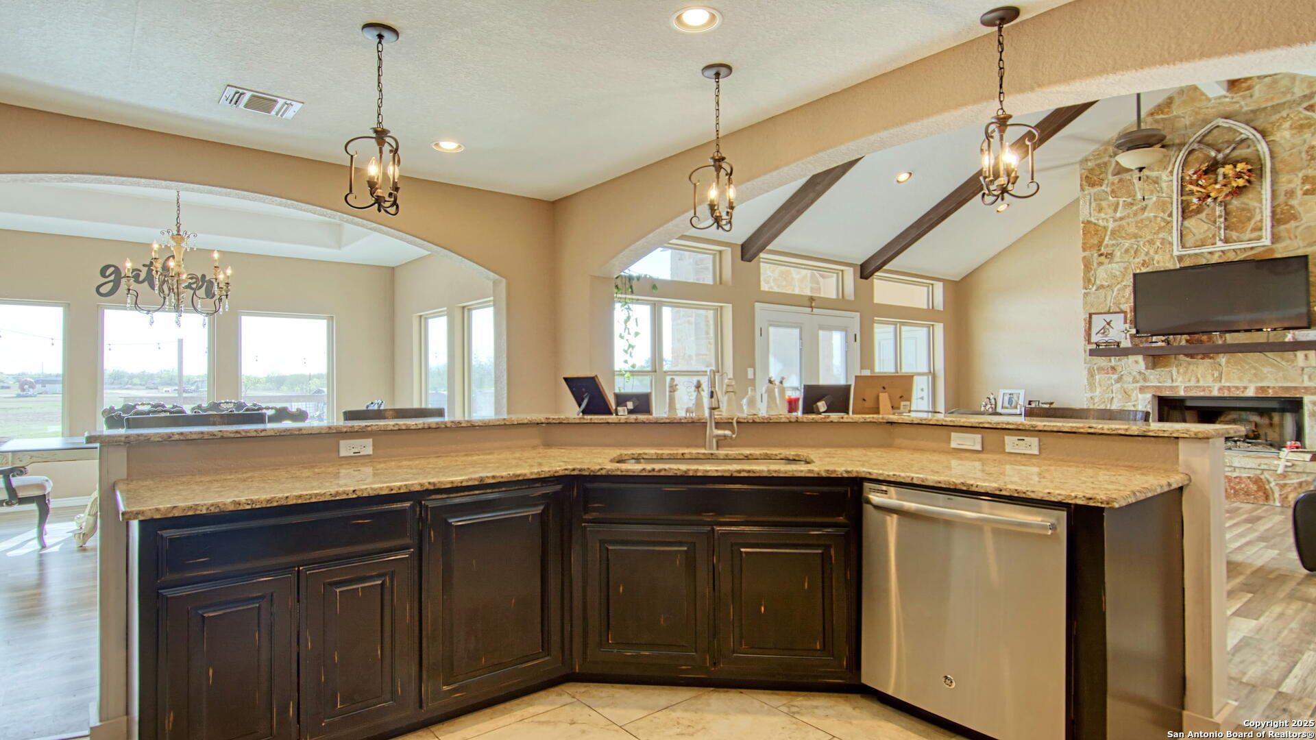 CUSTOM BUILT in 2017, this beautiful 3 BED, 3 BATH home with an OPEN FLOOR PLAN sits on the outskirts of small town Floresville, Texas! The heart of the 2443 SQ FT home is the spacious kitchen (refrigerator included!) and expansive living room with impressive rock FIREPLACE and views of the back of the property. For those who enjoy outdoor living, a second rock fireplace on the large DECK provides a cozy retreat with country views, ideal for entertaining or simply relaxing. The MASTER SUITE is a true sanctuary, with vaulted ceilings, private outside access, and a luxurious ensuite bath. Centered around the relaxing SPA TUB, the master bathroom includes SEPARATE VANITIES, a walk-in tile SHOWER, a massive WALK IN CLOSET, and a private water closet for added convenience. On the opposite side of the home, the other two bedrooms are equally impressive, each featuring charming BAY WINDOWS, walk-in closets, and connected by a JACK AND JILL BATHROOM. The SPLIT FLOOR PLAN ensures added privacy for everyone in the home. The MUDROOM, laundry room and NO CARPET help streamline home maintenance and the OFFICE is perfect for working or could be used as a FOURTH BEDROOM with its own closet. The large STORAGE BUILDING and covered carport behind the house provide storage galore. Nestled on a peaceful 5 ACRE LOT and located just minutes from town, this property offers a perfect balance of privacy and accessibility. Enjoy the peace and quiet of a short street with minimal traffic, while still being close to schools, stores, and emergency services. And only a short 20 minute drive to San Antonio or the Eagle Ford area. Whether you're entertaining, relaxing, or simply enjoying your space, this home has it all. Don't miss the opportunity to make this beautiful property your own!