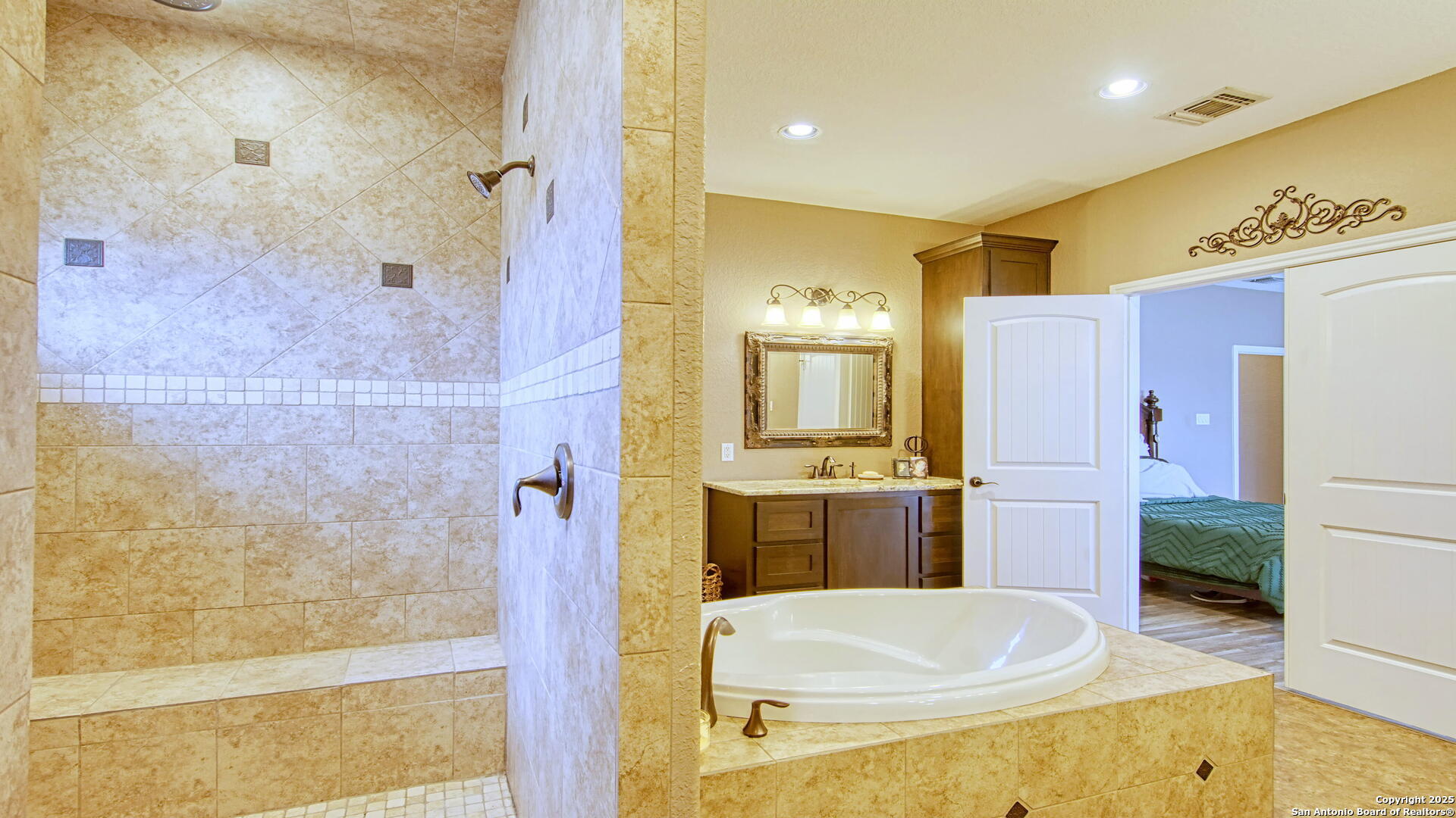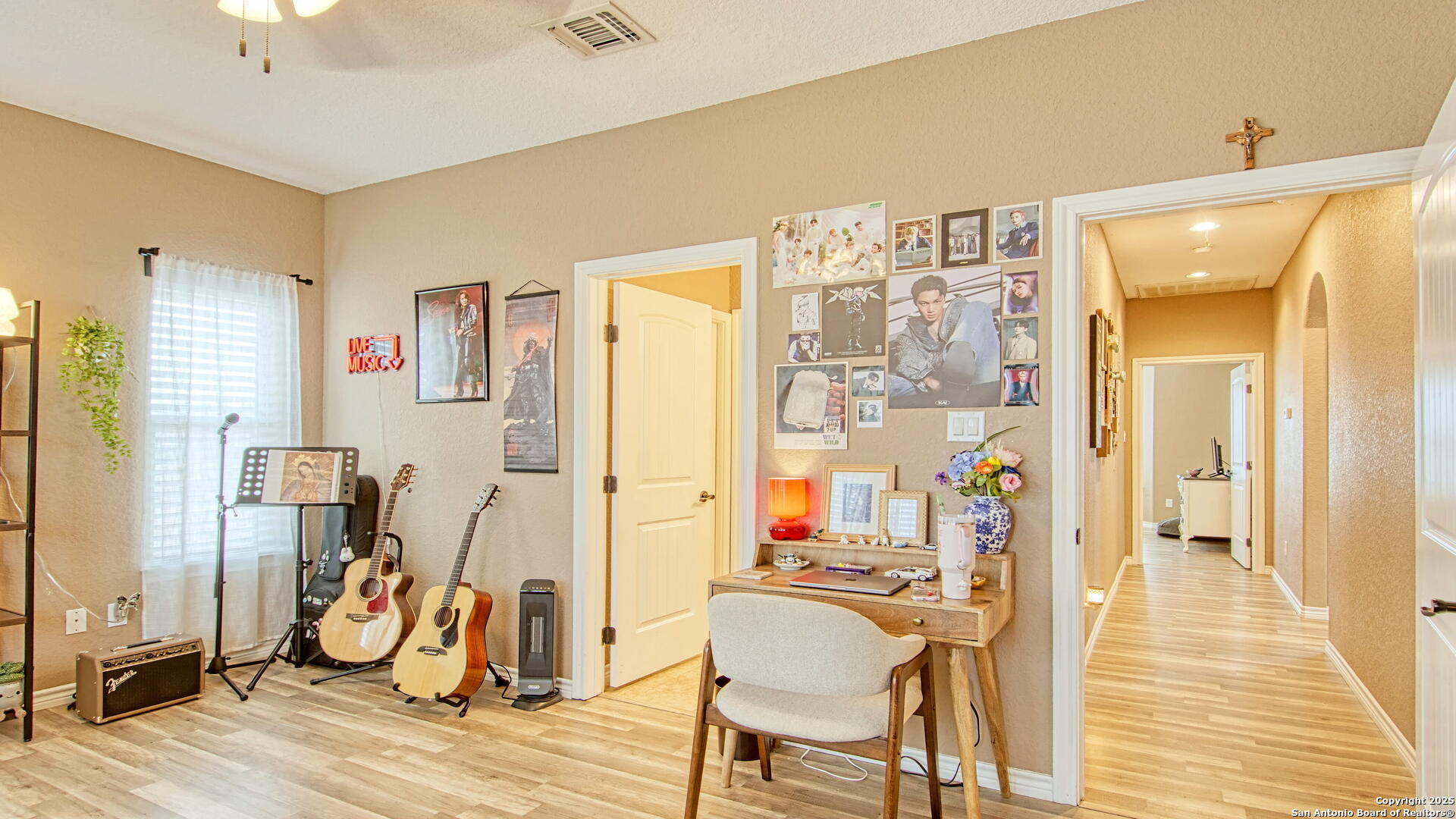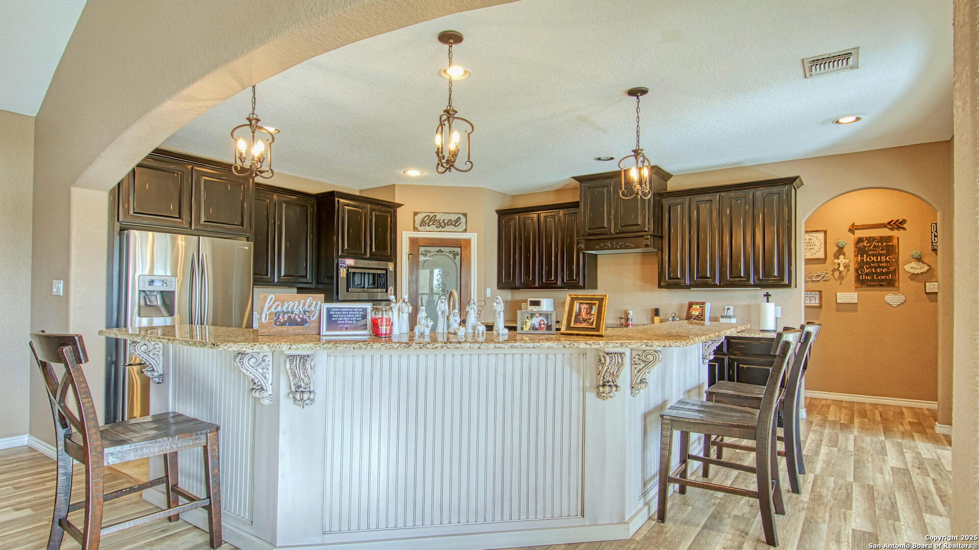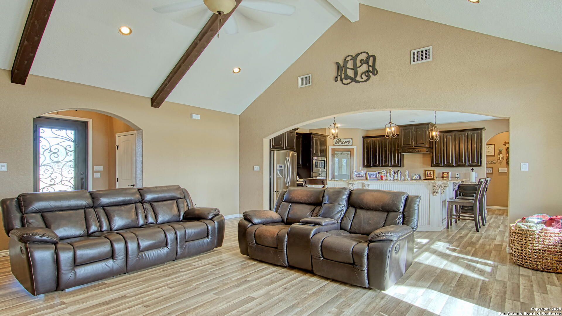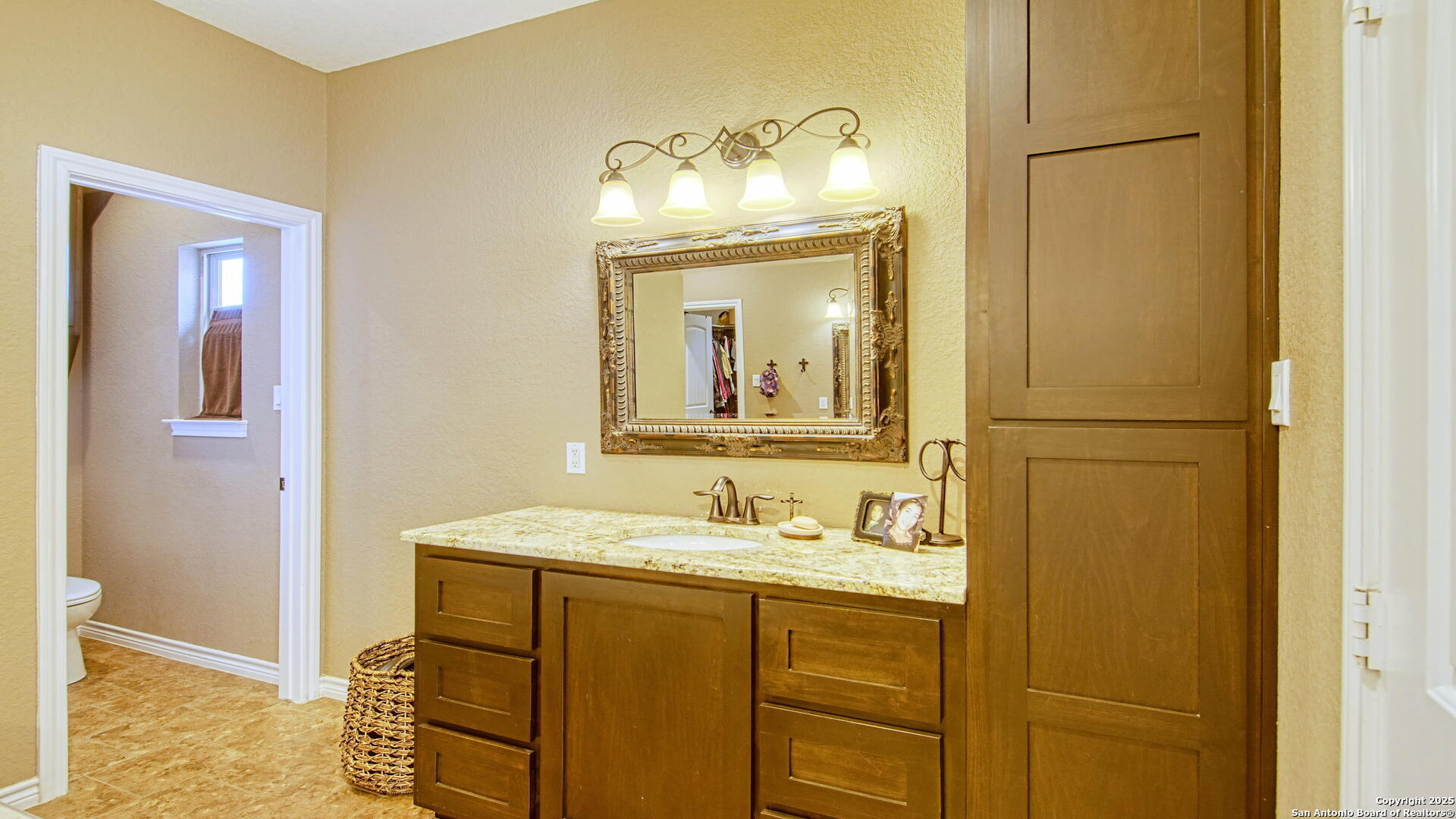CUSTOM BUILT in 2017, this beautiful 3 BED, 3 BATH home with an OPEN FLOOR PLAN sits on the outskirts of small town Floresville, Texas! The heart of the 2443 SQ FT home is the spacious kitchen (refrigerator included!) and expansive living room with impressive rock FIREPLACE and views of the back of the property. For those who enjoy outdoor living, a second rock fireplace on the large DECK provides a cozy retreat with country views, ideal for entertaining or simply relaxing. The MASTER SUITE is a true sanctuary, with vaulted ceilings, private outside access, and a luxurious ensuite bath. Centered around the relaxing SPA TUB, the master bathroom includes SEPARATE VANITIES, a walk-in tile SHOWER, a massive WALK IN CLOSET, and a private water closet for added convenience. On the opposite side of the home, the other two bedrooms are equally impressive, each featuring charming BAY WINDOWS, walk-in closets, and connected by a JACK AND JILL BATHROOM. The SPLIT FLOOR PLAN ensures added privacy for everyone in the home. The MUDROOM, laundry room and NO CARPET help streamline home maintenance and the OFFICE is perfect for working or could be used as a FOURTH BEDROOM with its own closet. The large STORAGE BUILDING and covered carport behind the house provide storage galore. Nestled on a peaceful 5 ACRE LOT and located just minutes from town, this property offers a perfect balance of privacy and accessibility. Enjoy the peace and quiet of a short street with minimal traffic, while still being close to schools, stores, and emergency services. And only a short 20 minute drive to San Antonio or the Eagle Ford area. Whether you're entertaining, relaxing, or simply enjoying your space, this home has it all. Don't miss the opportunity to make this beautiful property your own!
