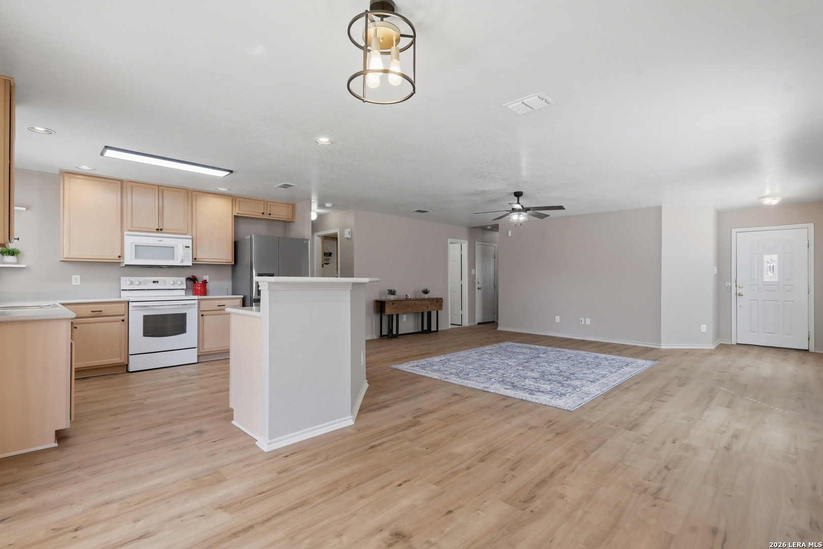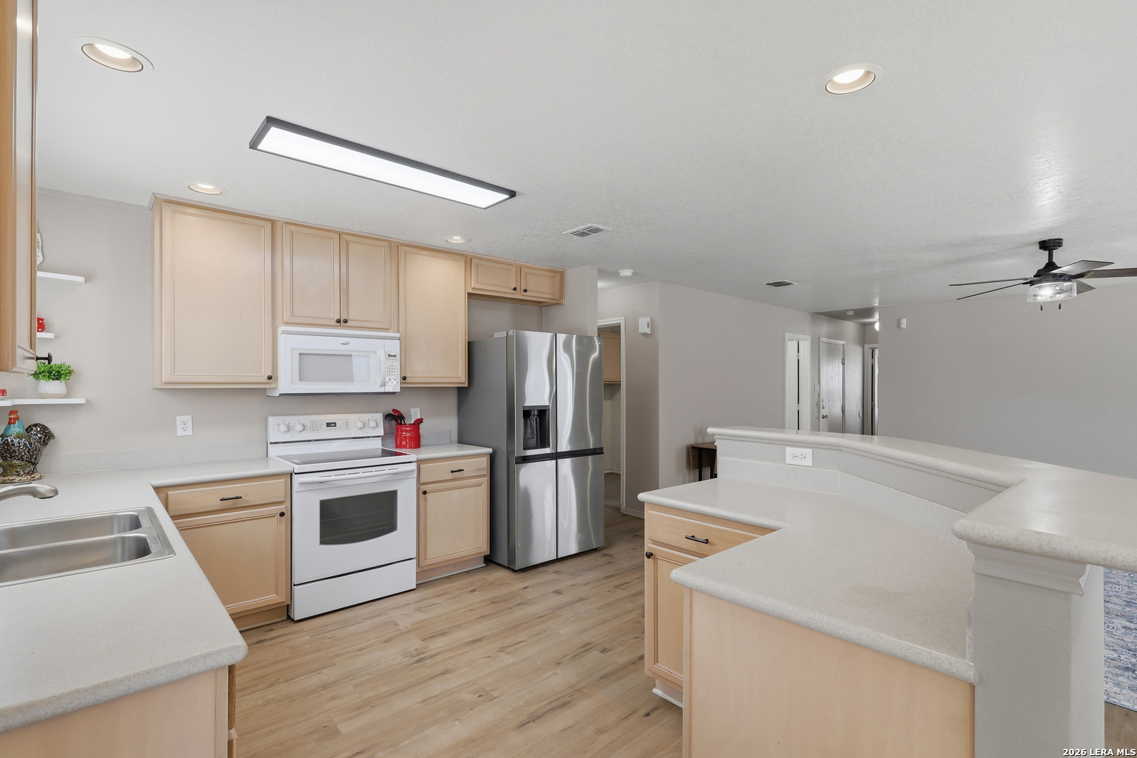 Tucked away on a quiet cul-de-sac in highly sought-after Comal ISD, this charming single-story, four-side brick home offers the perfect blend of comfort, functionality, and location. Featuring 3 bedrooms and 2 baths, the open and thoughtfully designed floor plan makes everyday living easy and inviting. Inside, you'll find updated flooring, fresh interior paint, and modern light fixtures that give the home a clean, refreshed feel. The spacious primary suite offers a peaceful retreat with a walk-in closet, double vanities, and a walk-in shower in the primary bath. Step outside to enjoy the covered back patio, perfect for relaxing evenings or weekend gatherings along with a convenient storage building for extra space. The garage has been upgraded with a fresh epoxy-coated floor, adding durability and a polished finish. Located just minutes from Gruene and everyday conveniences like HEB, Target, and Creekside Shopping Center, you'll also love being close to exciting additions such as Topgolf, Costco, and Sprouts. This home checks all the boxes - location, updates, and move-in-ready appeal!