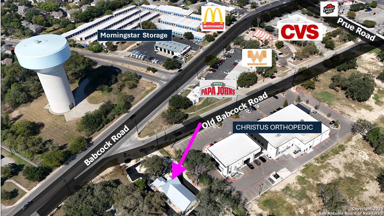 Exceptional Opportunity to Acquire a Commercial Property in the San Antonio Medical Center! Building & Zoning: Remodeled shell building (2025) with updated zoning to Neighborhood Commercial (NC) allowing for flexible uses Lot size: ~1 Acre with ingress from and egress to Old Babcock Rd, Building Sizes: 2843 sq. ft. shell building with utilities in place and a 400 sq ft storage two-story storage building Approved Plans: City-approved construction plans, new survey, and platting included Location: Prime area near major hospitals, USAA, UT San Antonio, La Cantera, The Rim, Medical Drive, local businesses, and key highways Potential Uses: Ideal for a variety of commercial ventures such as:-Medical or Dental Office-Law Firm or Professional Office-Coffee Shop, Bakery, Grocery, or QSR-Veterinary Clinic or Pet Grooming Features & Upgrades: 10-space asphalt parking lot completed (October 2025) Additional Options: Available for long-term lease, as well. This property offers flexibility, visibility, and is in a strategic location dense with residential, national retailers and restaurants, medical providers, and more, making it a perfect investment opportunity for a wide range of uses.