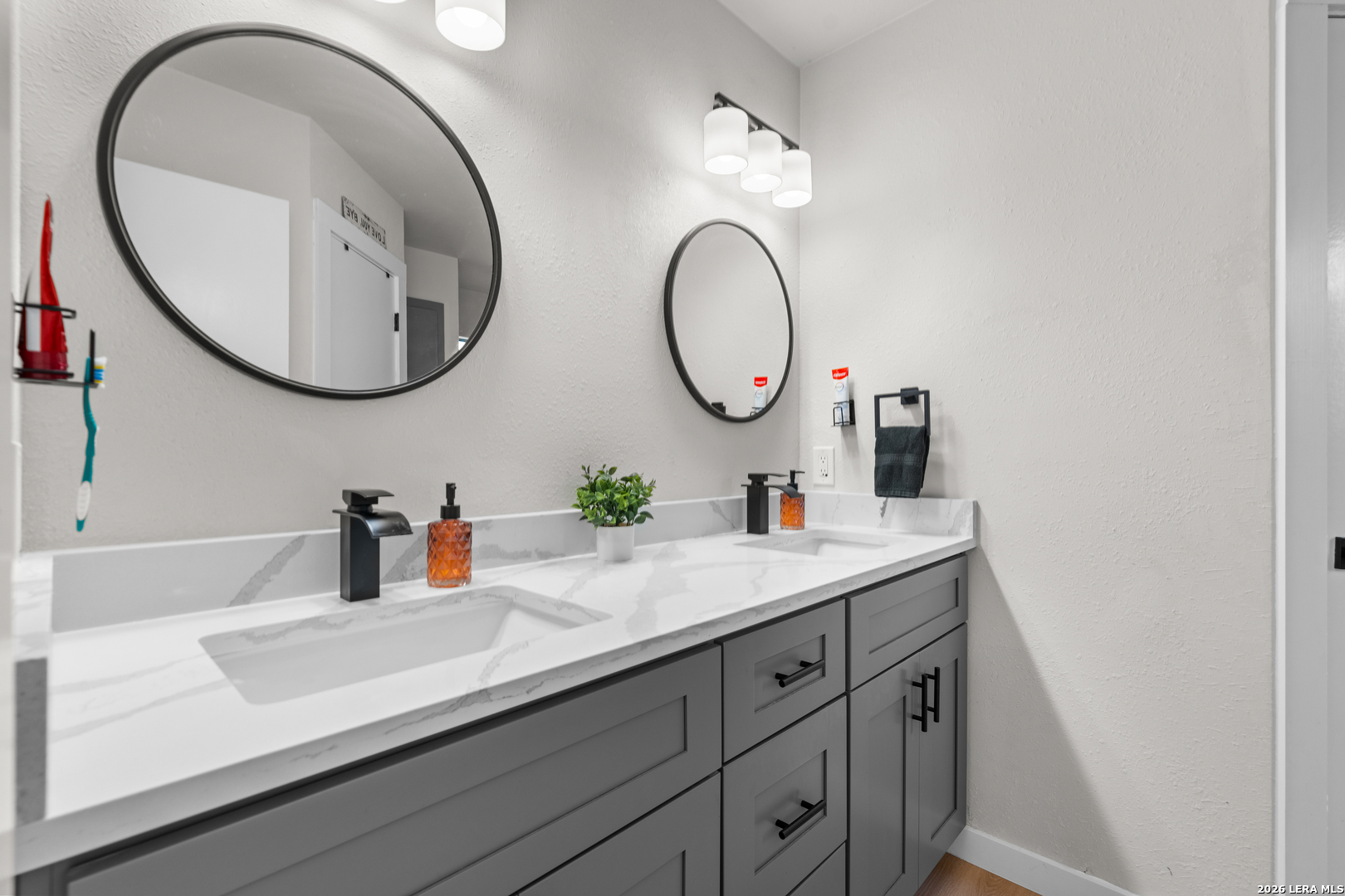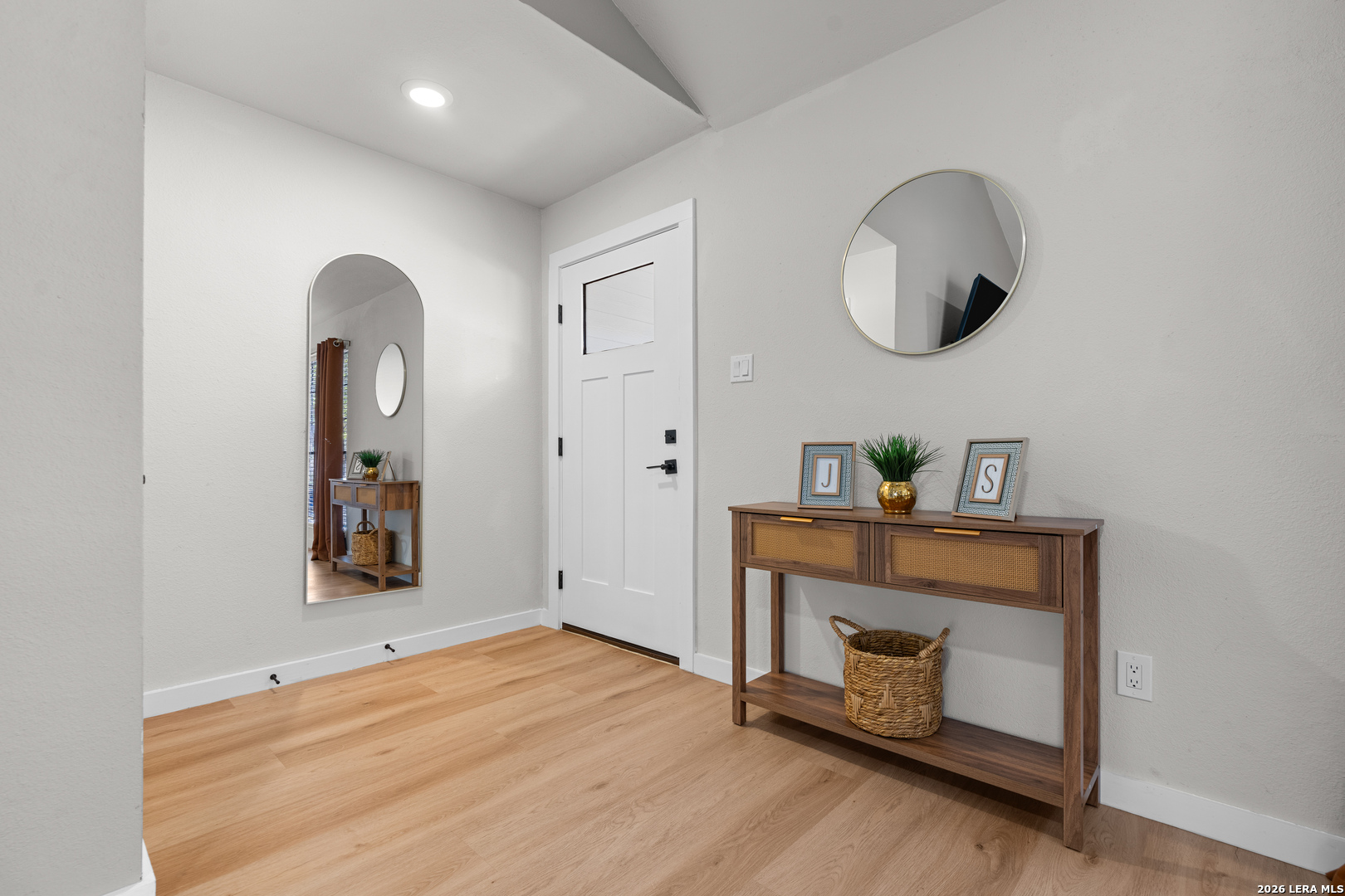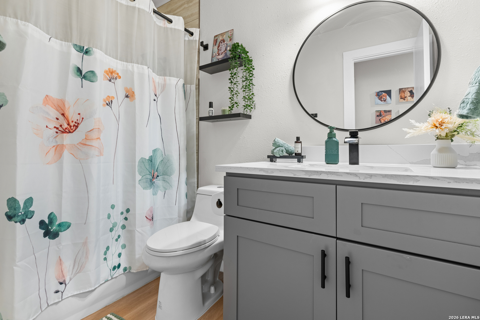 Turn-key, fully renovated & upgraded pristine home in the desirable Ridge Creek community! This beautifully updated 3-bedroom, 2-bath home offers 1,276 sq ft of thoughtfully designed living space with an open-concept layout, soaring ceilings, & abundant natural light. Step inside to find a modern interior featuring no carpet, custom cabinetry, quartz countertops, & a spacious living area centered around a cozy fireplace with a newly added wood mantle, shelving, & built-in TV outlet for a clean, cord-free setup. The kitchen is equipped with like-new stainless steel appliances (only 1 year old), including refrigerator, stove, and dishwasher, making this home truly move-in ready. This home is featuring a BRAND NEW ROOF (2026). The home also will include three premium TV wall mounts already in place for added convenience. Enjoy the outdoors with a well-maintained yard featuring lush green grass, improved landscaping, & mature trees, plus an added patio space perfect for relaxing or entertaining. Additional highlights include a 2-car garage and a professionally installed in-wall dog door that is both clean and functional. Located in the highly sought-after Northside ISD with easy access to shopping, dining, & major highways, this home stands out as one of the most updated and move-in ready properties in the area. Don't miss your opportunity to own a top-tier home with major upgrades already completed - including one of the only homes in the area with a brand new roof! Schedule your showing today, you will not be disappointed!
