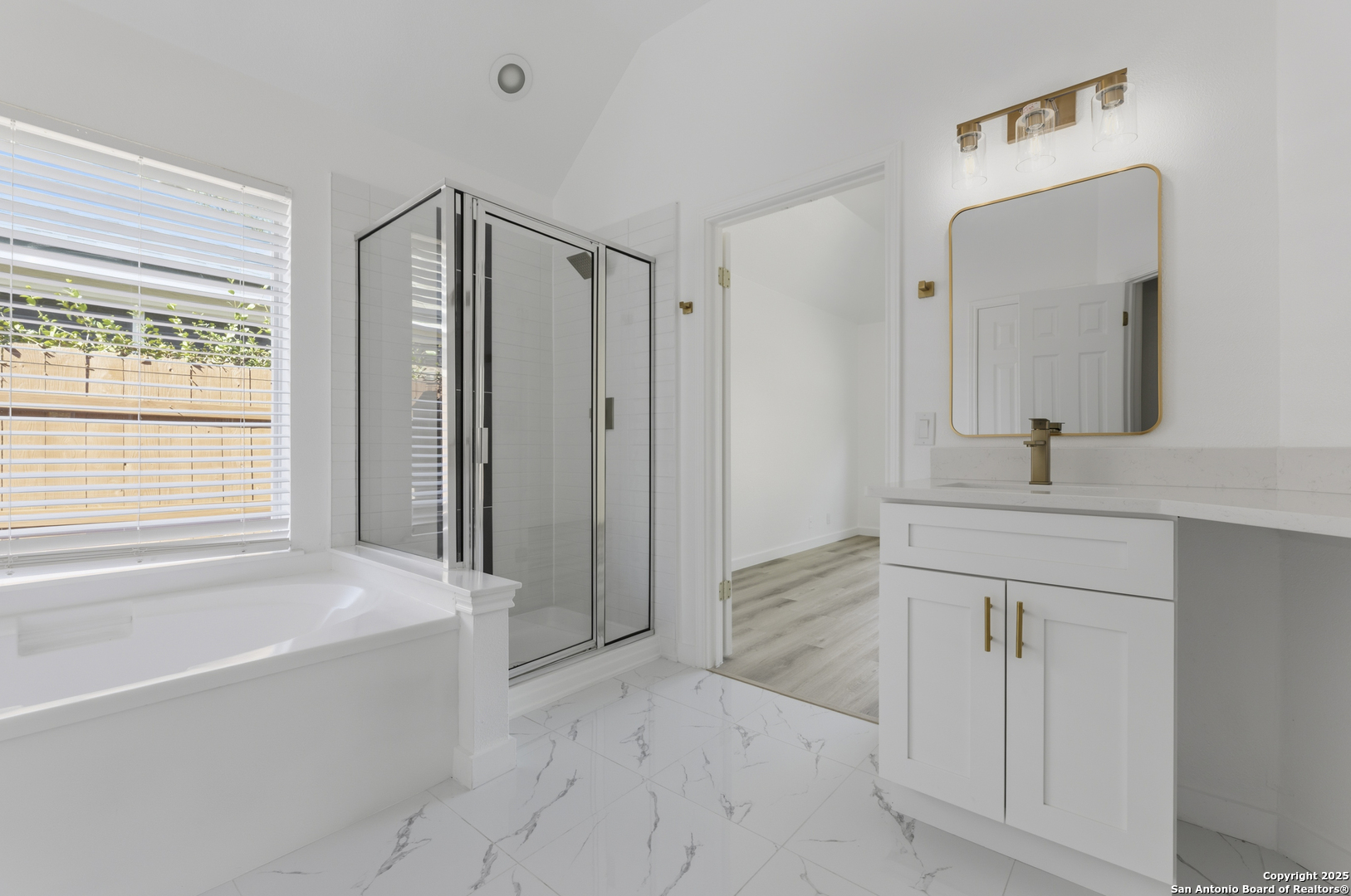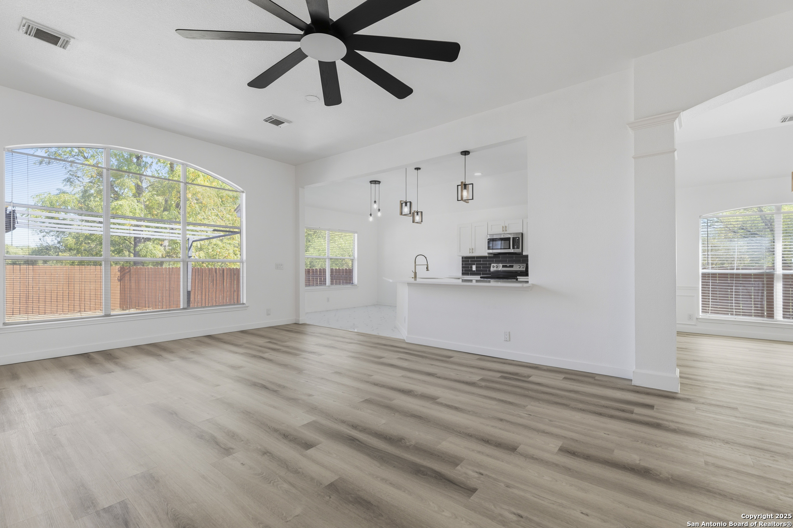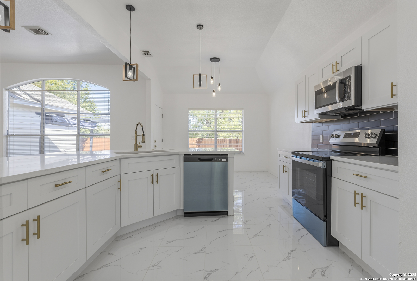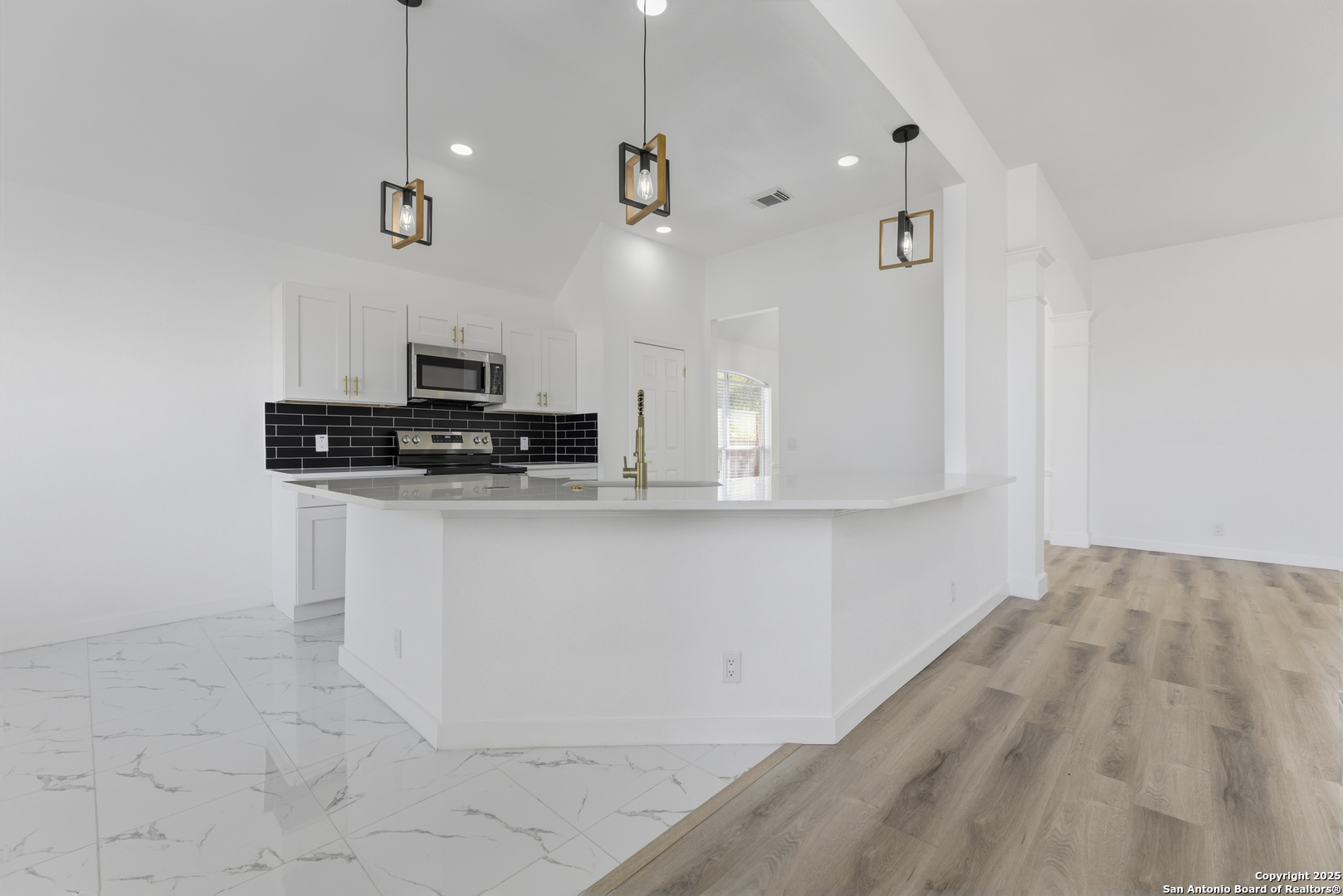 Welcome to your new 1 story, 3/2/2 home in the beautiful Jade Oaks subd. You will fall in love with this home with the incredible natural light that it allows, the large-sized rooms, the high ceilings and gorgeous flooring throughout. The living room gives you a stunning fireplace for those cozy evenings, and an upgraded ceiling fan to keep you cool on the warmer days. Your stunning kitchen offers a smooth cook top, built in microwave, amazing bright white cabinets with gold hardware to accent. The back splash is a striking black subway tile to match the appliances. The absolutely gorgeous lights pull this all together. You will enjoy the build in island for extra counter space. You have two eating areas that both offer lots of light. Your master bedroom offer plenty of room, high ceilings with an upgraded ceiling fan, and the master bath features a separate garden tub and shower with dual vanities and is ready to be your own private retreat. Your secondary bedrooms are spacious and offer the room everyone needs. Your back yard gives you a covered patio and lots of level ground for playing games with privacy. You will not want to miss out on this opportunity to own this beautiful home.