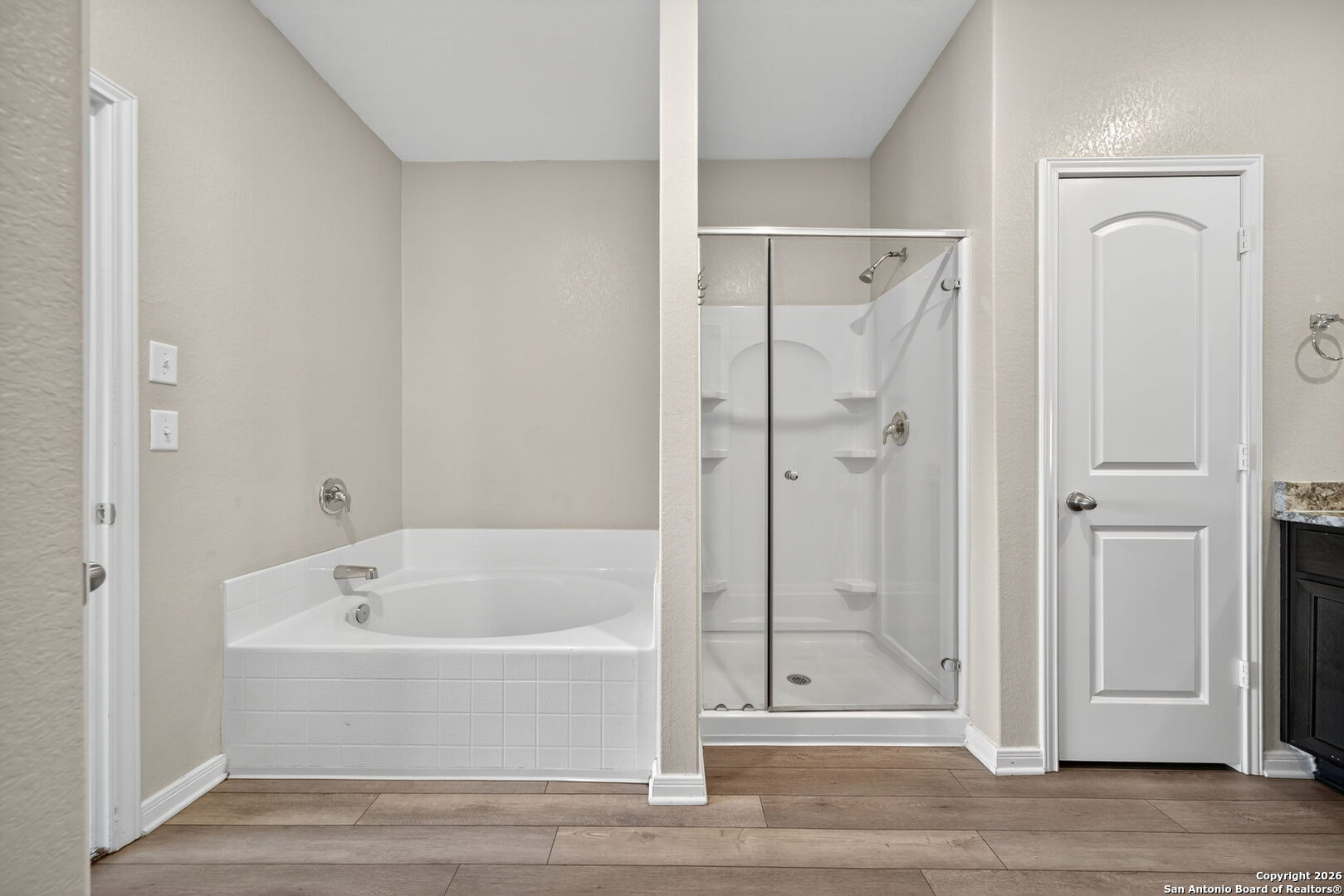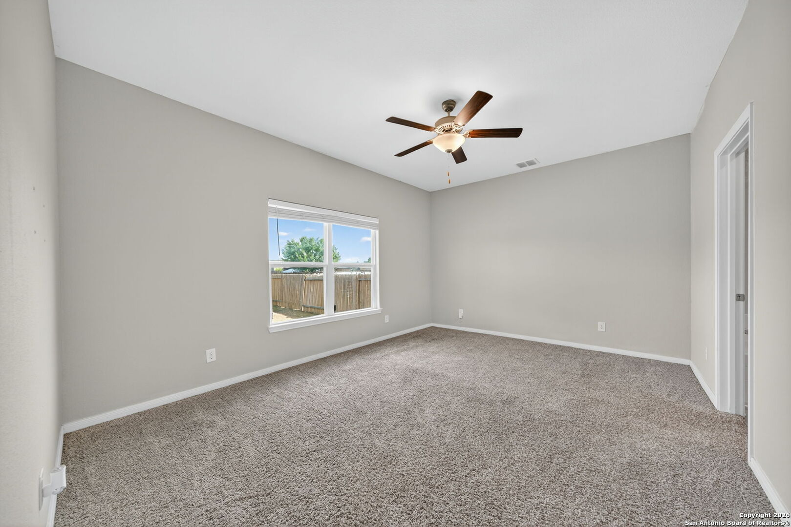 *Home is also available for rent: $2450/month*...Energy smart and move in ready. Save from day one with $37,000 in paid off solar panels and a free refrigerator included. This 2,538 sqft home offers 5 bedrooms, 2.5 baths, and an open concept main level with luxury vinyl plank flooring. The downstairs primary suite features a massive walk in closet, double vanities, and a separate soaking tub and shower. The kitchen and all bathrooms are finished with granite countertops and the home is plumbed for a water softener. Kitchen has upgraded 42" cabinets. A large bonus room upstairs can serve as a second living area, game room, or home theater. Each of the additional 4 upstairs bedrooms are generous in size plus each have walk in closets. Enjoy tons of natural light, covered front and back porches, no back neighbors and a community park and playground nearby. Kitchen is also equipped with an Alkaline water filtration system and reverse osmosis system Space, savings, and comfort all in one place. Conveniently located near Lackland, Loop 1604 & a short drive to Loop 410 via Hwy 90.