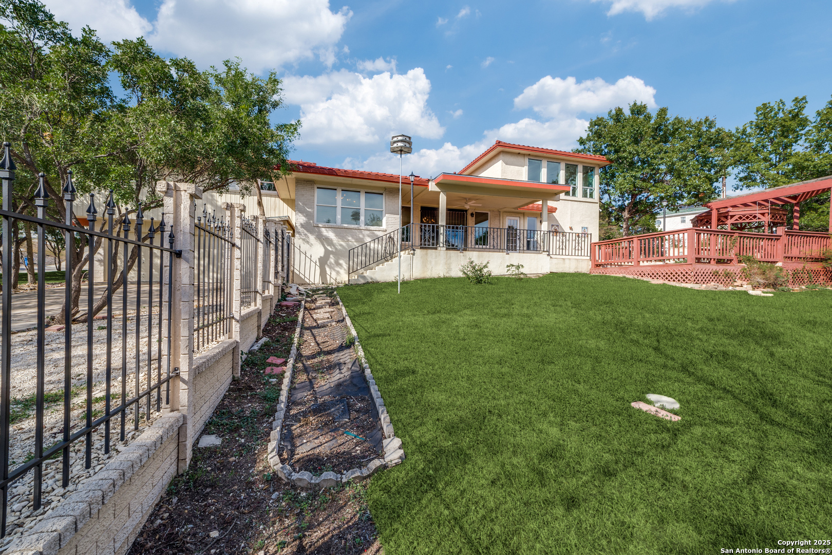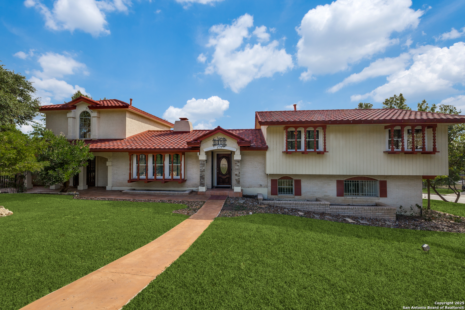 Located in the highly desirable Oak Hills neighborhood just outside Loop 410 between Fredericksburg and Babcock, this one-of-a-kind property offers timeless character and exceptional convenience. Oak Hills is a well-established San Antonio community known for its mature landscaping, generous lots, and mid-century architectural appeal-all in a prime location between Downtown San Antonio and the Medical Center. Custom built in 1969 and lovingly owned by one family, 6410 Laurel Hill is filled with unique features you won't find anywhere else. Step into a warm and inviting living room highlighted by a double-sided gas fireplace that seamlessly connects the formal living and dining rooms. The dining room and kitchen overlook a spacious covered patio that extends to a deck and charming gazebo-perfect for year-round gatherings. Thoughtfully designed, the home offers two separate bedroom wings. One side features a primary bedroom with a full bath, with a beautifully appointed entertainment room above that showcases scenic views. The opposite side includes a second primary bedroom, plus two additional bedrooms. With 3 full baths and 2 half baths, this home provides both comfort and flexibility for family or guests. Set on just under a half-acre corner lot, this property offers a peaceful retreat in the heart of the city. From its distinctive architecture to its ample entertaining spaces, this is a special home ready to welcome its next chapter.