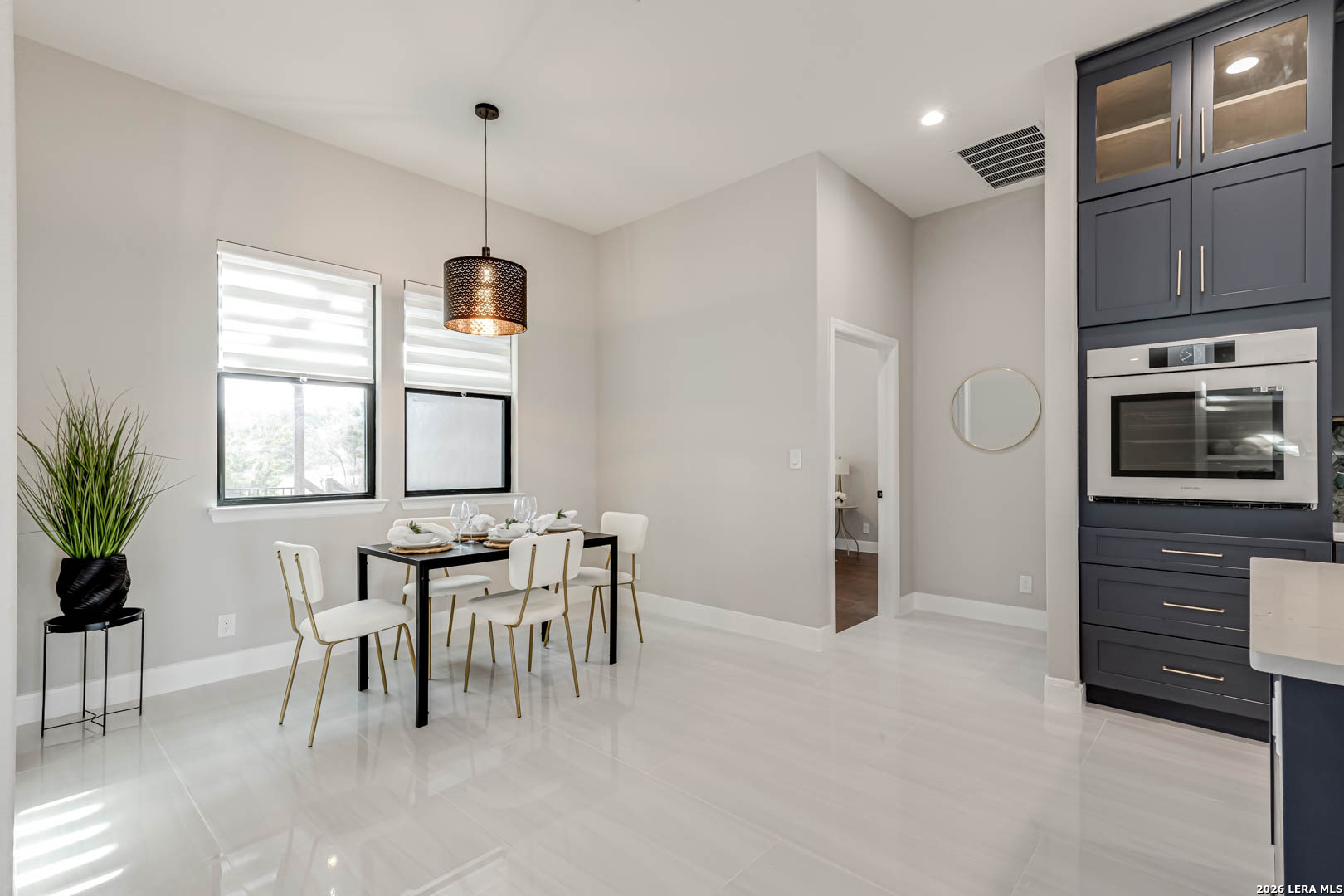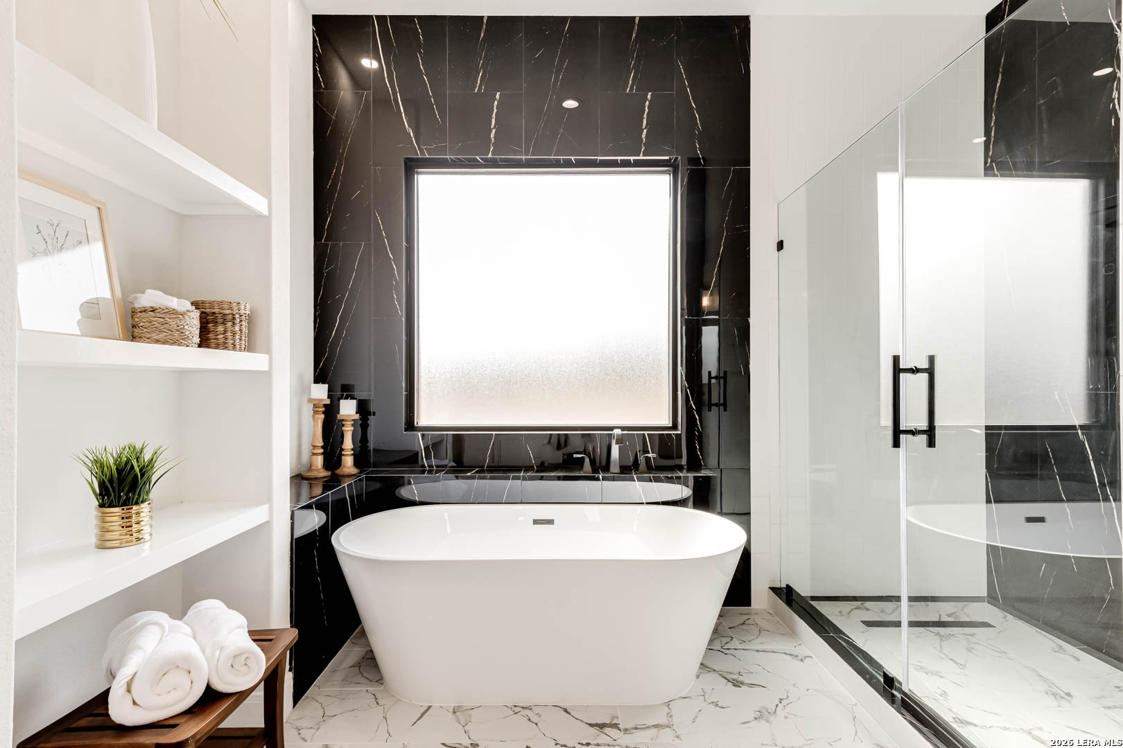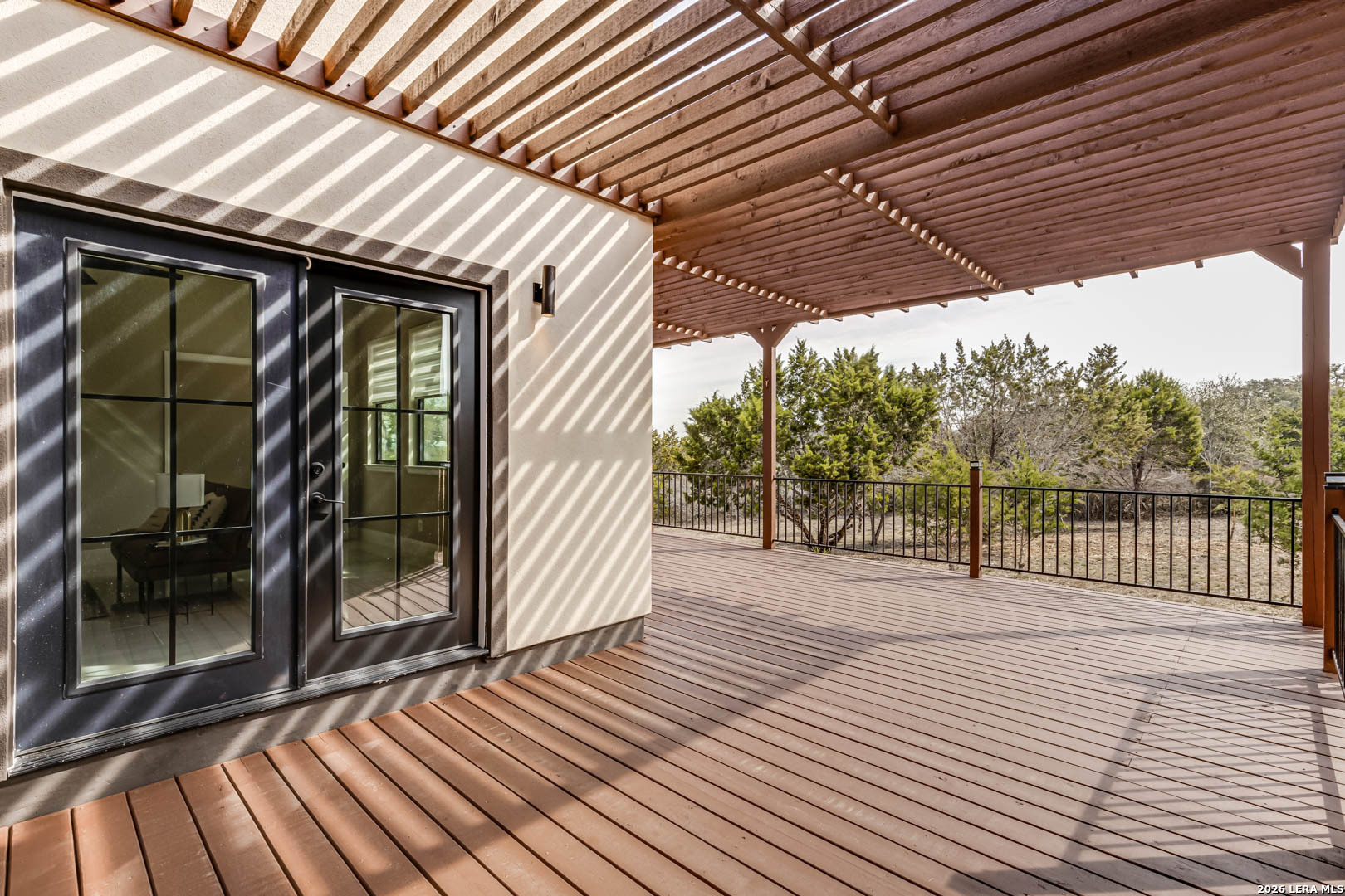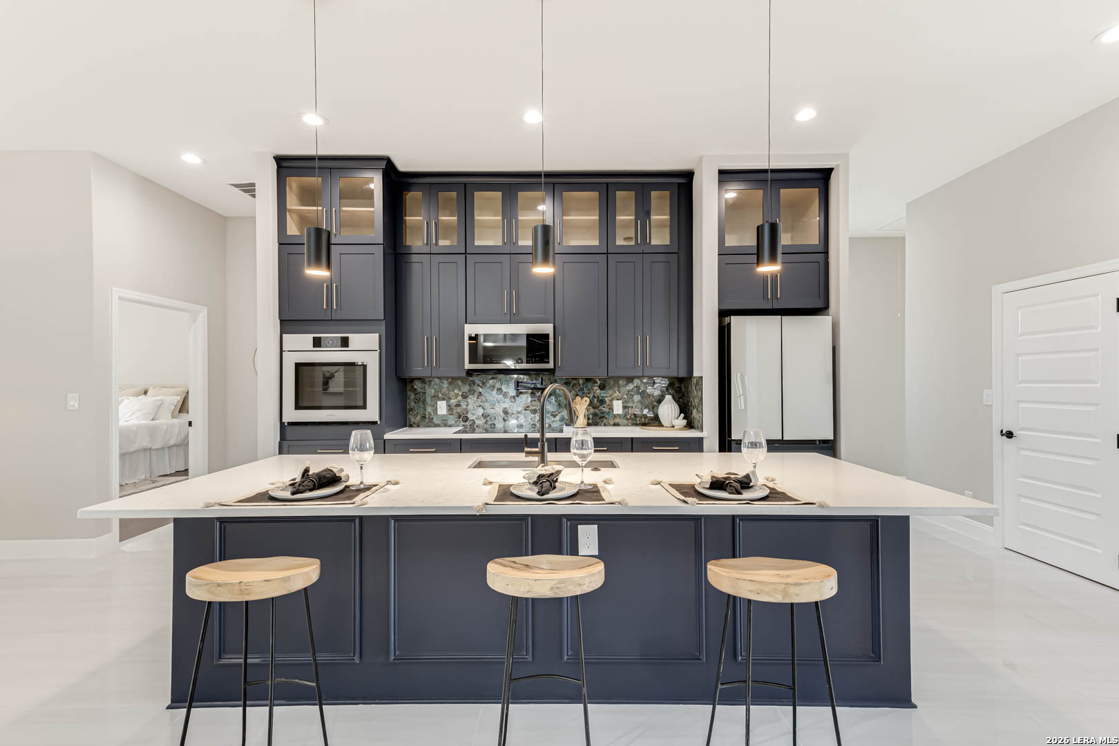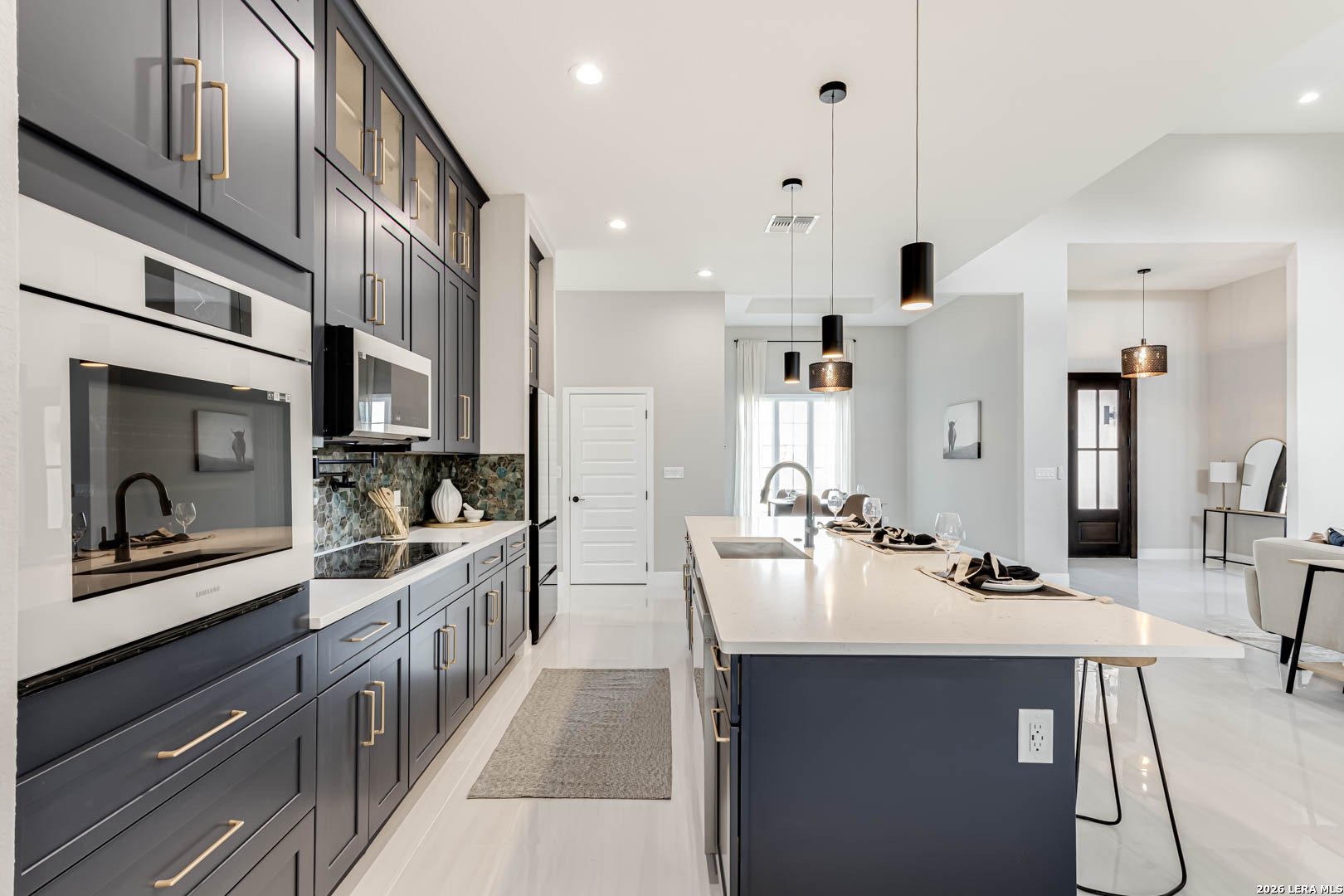 Completed in 2025, this modern single-story home offers refined design and rare privacy on an oversized homesite in Mystic Shores. 3,077 sq ft of light-filled living features soaring ceilings, a dramatic floor-to-ceiling black marble fireplace, and a statement kitchen with custom navy cabinetry and an oversized island designed for gathering. The primary suite delivers a spa-inspired retreat with a freestanding soaking tub and oversized walk-in shower. A covered pergola and expansive outdoor space extend the living experience beyond the interior. Residents enjoy resort-style amenities, lake access, and nature preserve trails. Modern construction. Elevated finishes. Privacy without compromise.