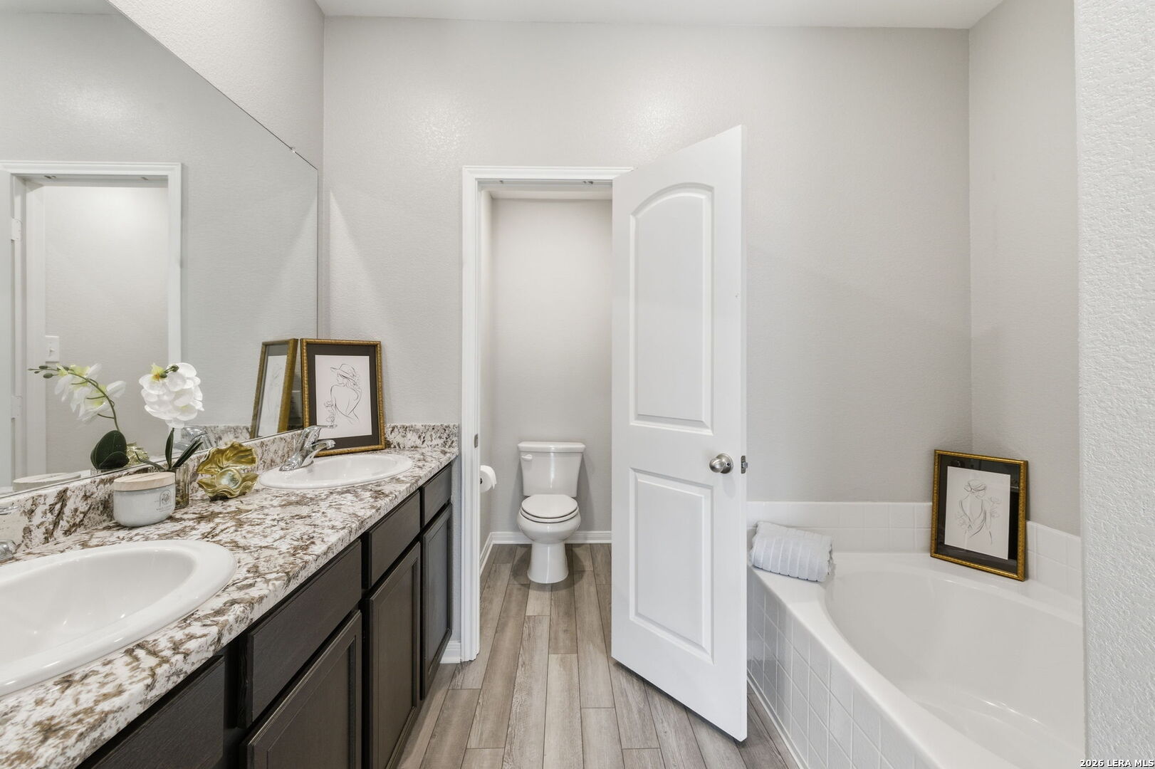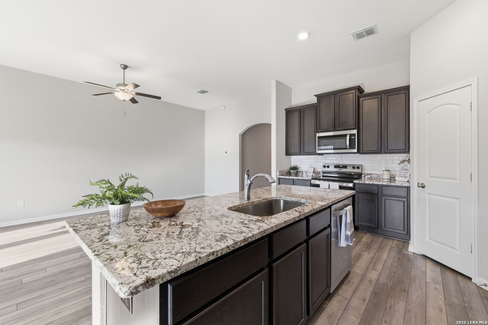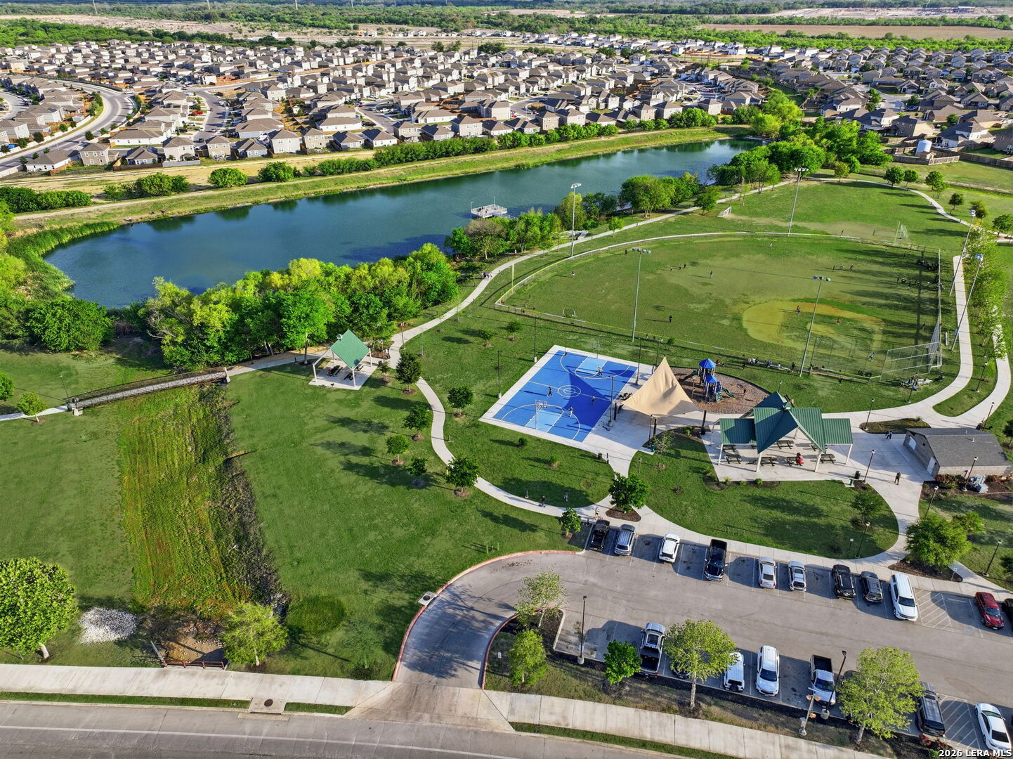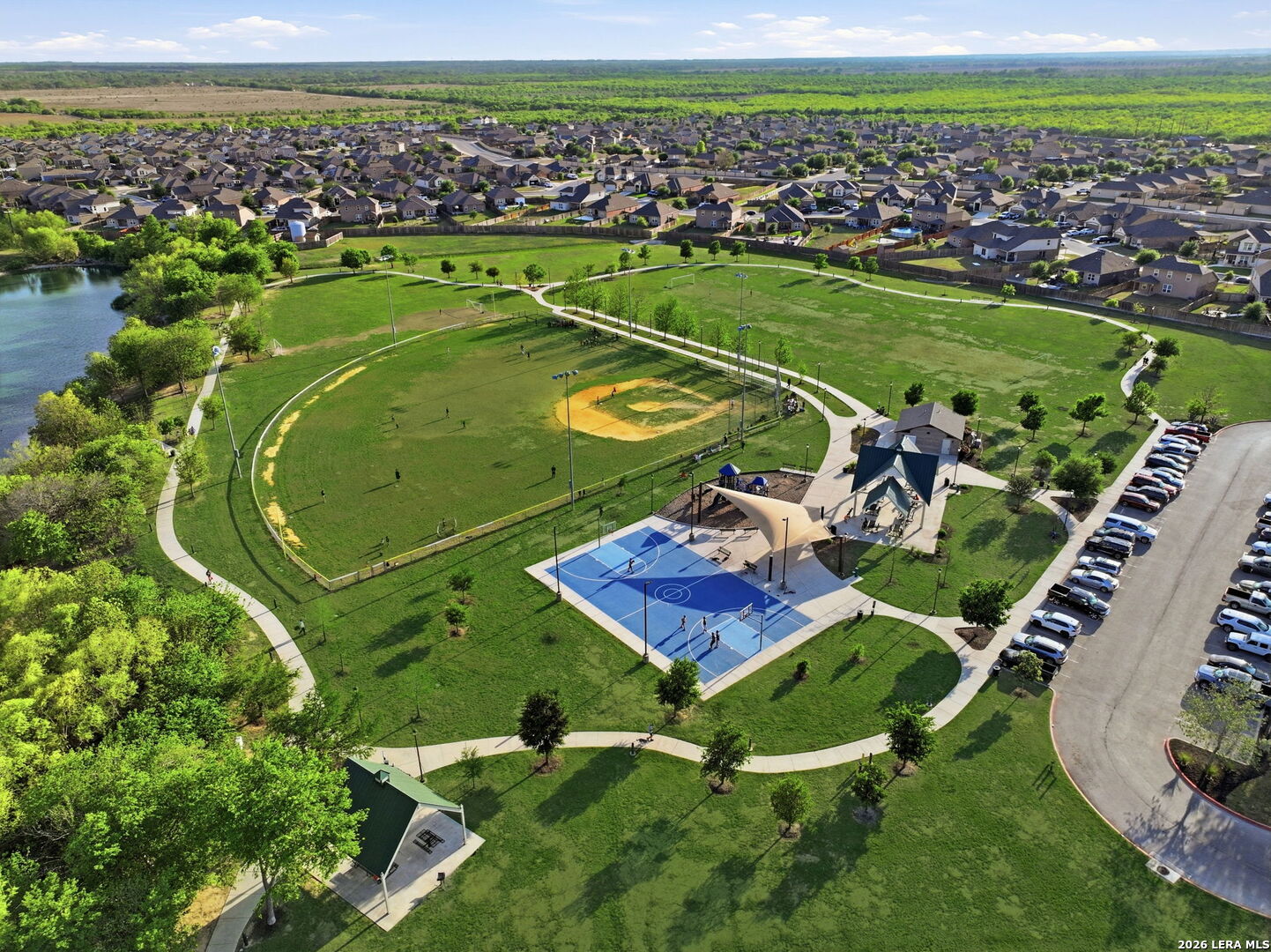 Welcome to this stunning one-story gem in the highly sought-after Luckey Ranch community, just minutes from Lackland Air Force Base! This beautifully maintained Kendall plan offers 4 bedrooms, 2 bathrooms, and an open layout loaded with upgrades - no carpet throughout and like-new condition from top to bottom. The showstopping kitchen features a large granite island and designer 42-inch cabinets, flowing perfectly into the living and dining areas for effortless entertaining. Step outside to a large backyard and covered patio - ideal for those Texas evenings. The oversized master suite boasts a dream-sized walk-in closet, dual sinks, garden tub, separate glass-enclosed shower, and a water softener to top it off. Luckey Ranch amenities include a park, lake with fishing pier, jogging trails, basketball court, and splash park - something for the whole family!This one won't last - schedule your showing today