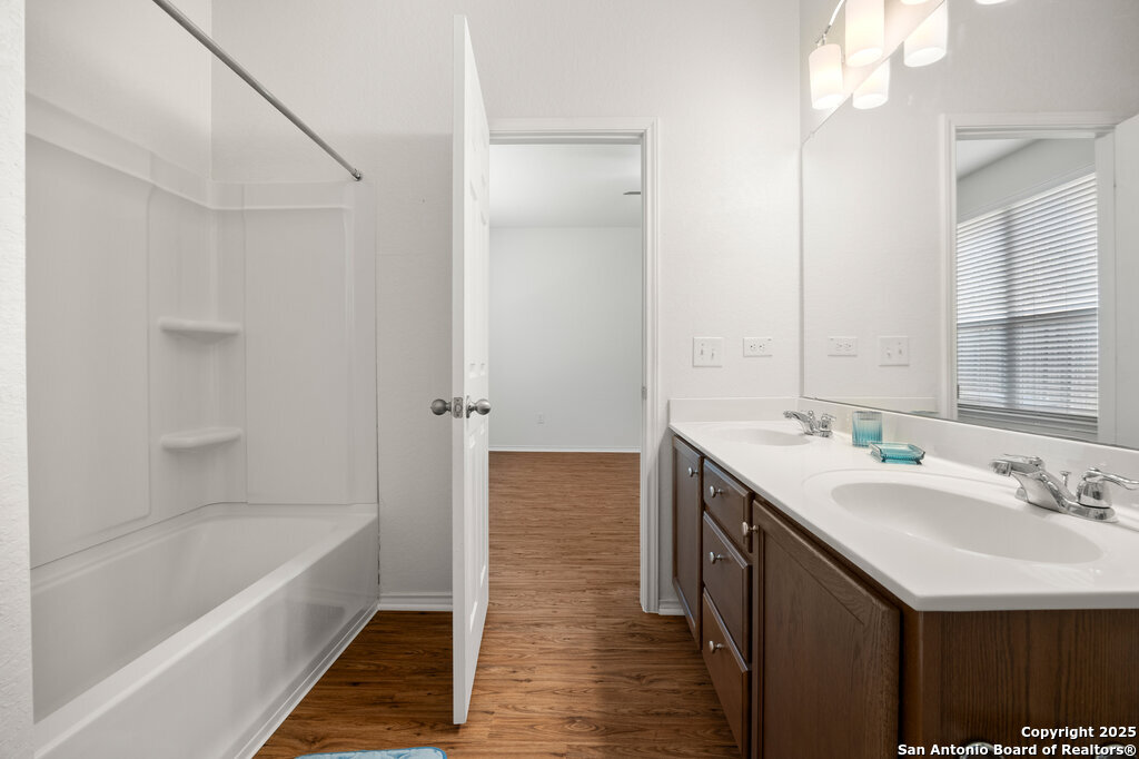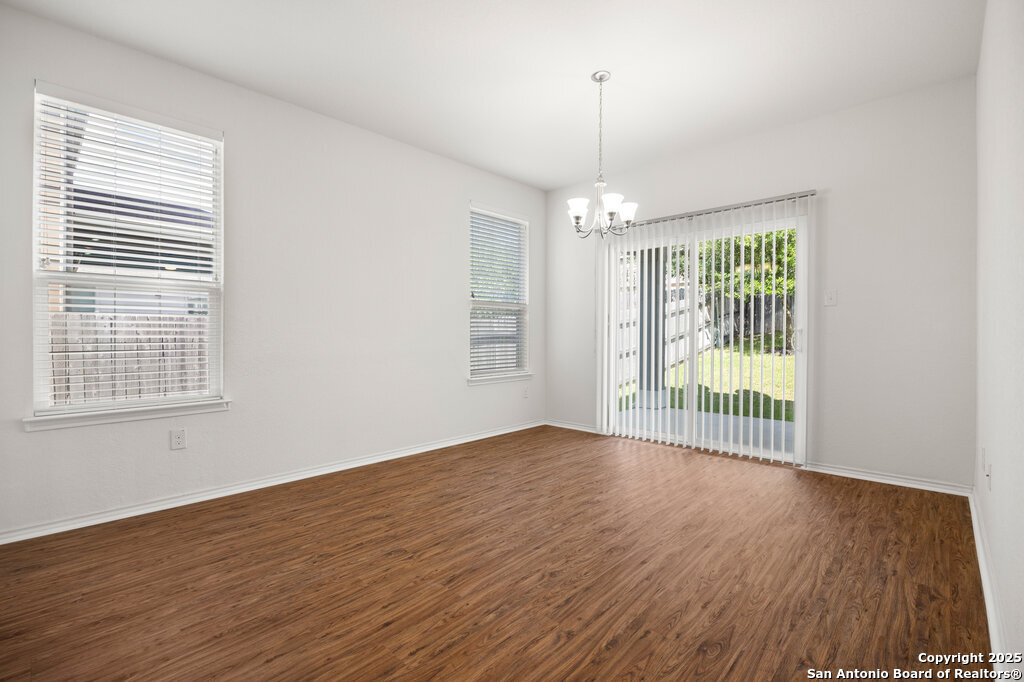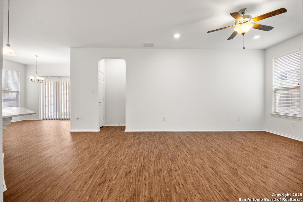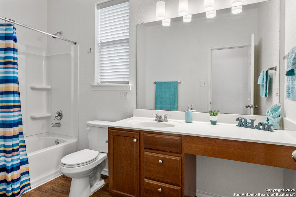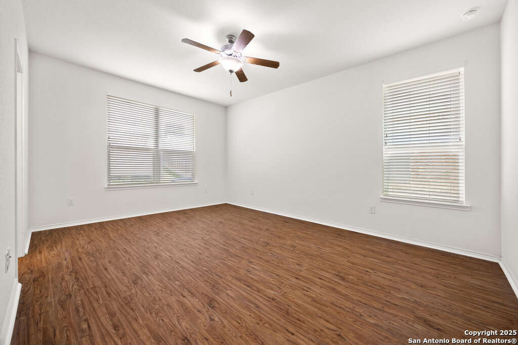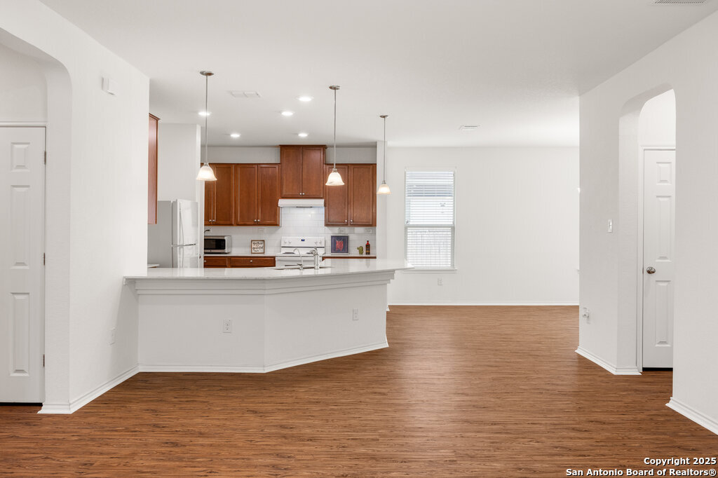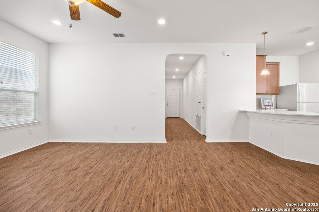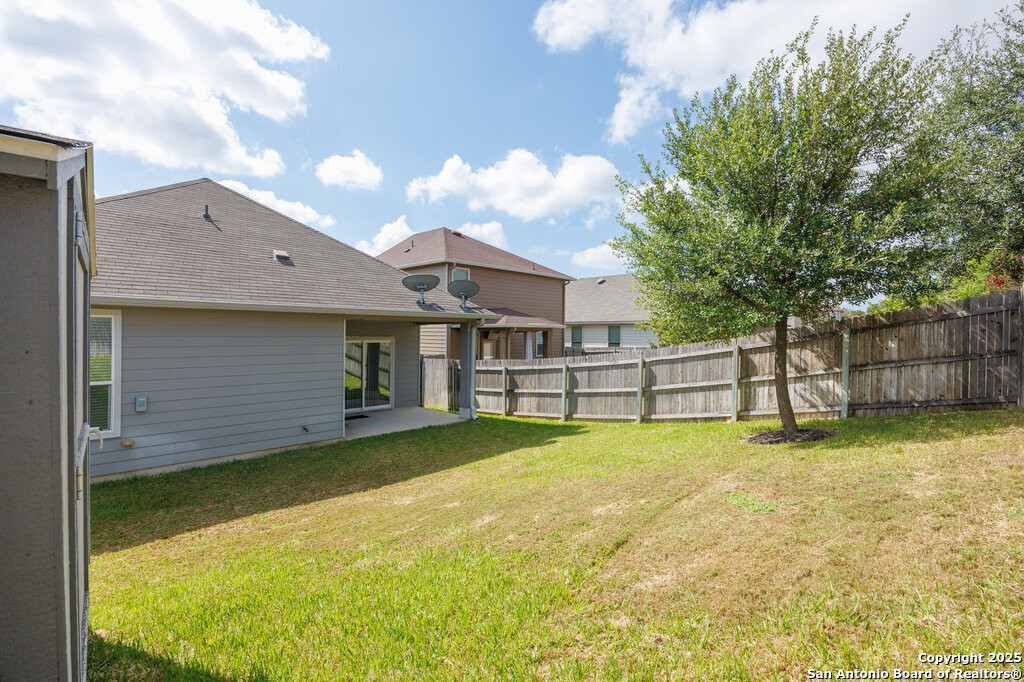 Beautiful one-story home with 3 bedrooms and 2 full baths. New vinyl plank flooring installed Sept 2025. High ceilings with recessed lighting. Open floor plan allowing kitchen, dining, and living areas to flow together. Kitchen features Silestone countertops, a wrap-around bar, lots of cabinet space and a large walk-in pantry. Enjoy outdoor living on the covered porch in a privacy fenced backyard. Additional features include a new water heater installed July 2025, water softner, full sprinkler system and a storage shed. Quick commute to mutliple military bases. Easy access to IH35, shopping, food and entertainment.