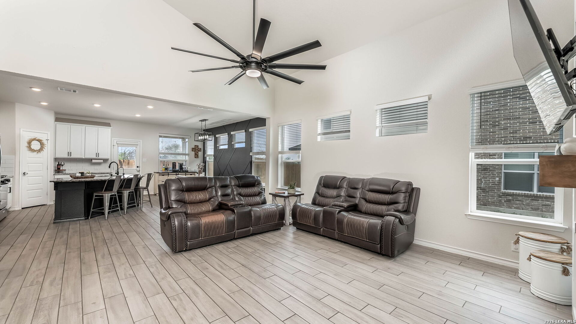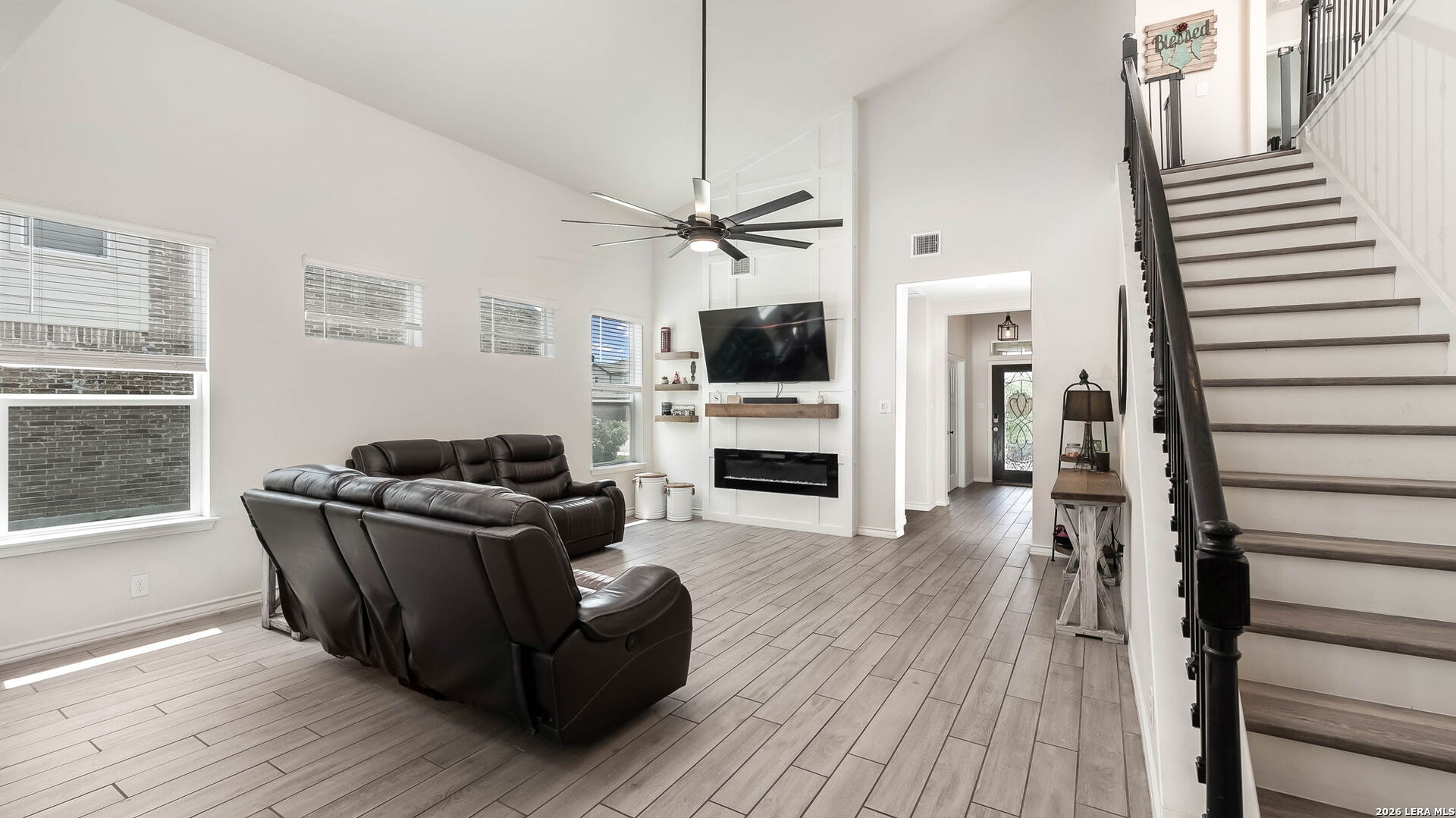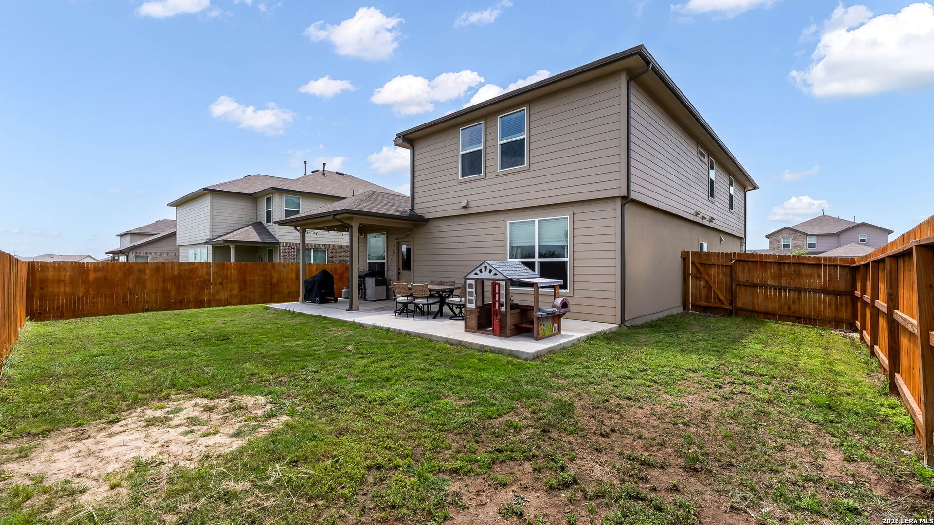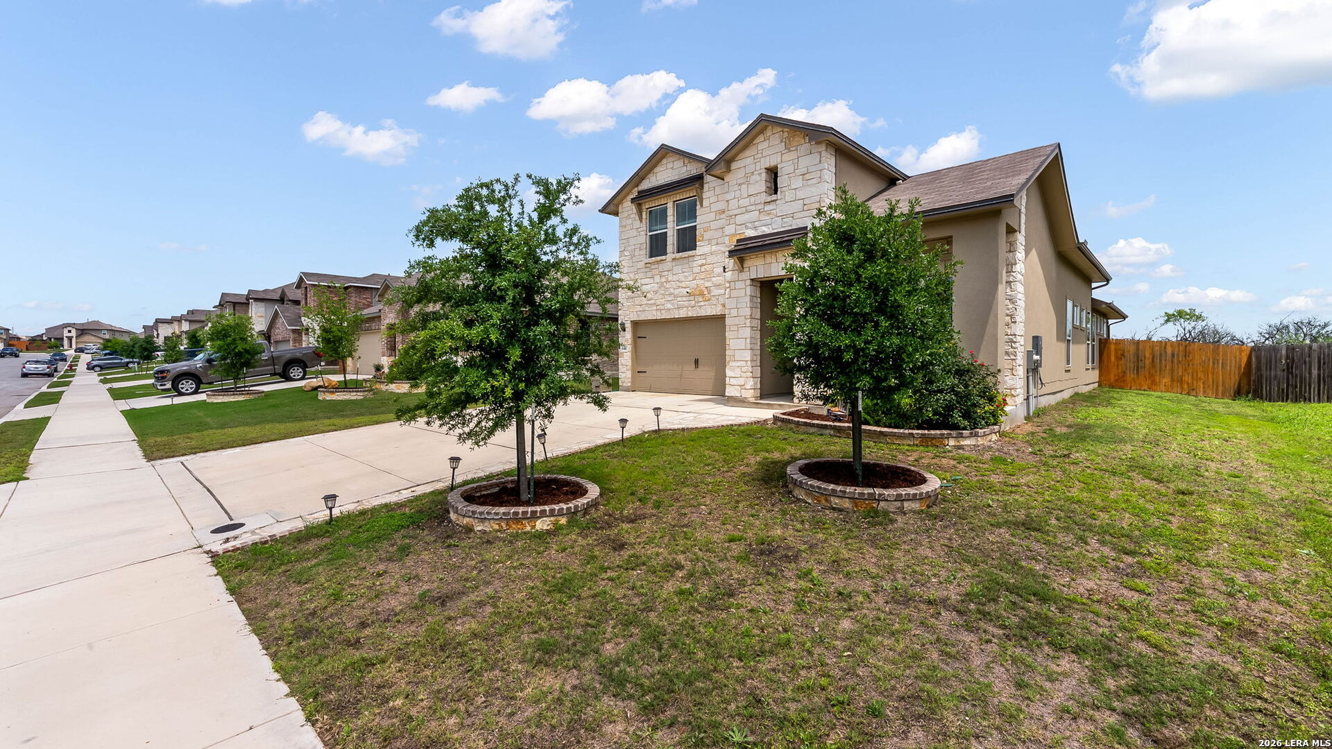 *NEW UPGRADES throughout home* Welcome to 646 Overlook Ridge in the desirable Steele Creek community of Cibolo, TX! This beautifully upgraded two-story home offers 4 bedrooms and 2.5 bathrooms, combining modern style with thoughtful enhancements throughout. Step inside to find a bright and inviting layout featuring a stunning custom living room accent wall complete with an electric fireplace and built-in shelving-perfect for relaxing or entertaining. The kitchen is a true centerpiece, showcasing a spacious island, stylish accent wall, and an upgraded dining area highlighted by a designer light fixture. Downstairs and along the staircase, all carpet has been replaced with durable and elegant luxury vinyl plank flooring, creating a seamless, modern look. The entryway and half bathroom have been tastefully updated, while ceiling fans and black-accented fixtures throughout the home add a sleek, contemporary touch. Upstairs, the owner's suite has been enhanced with a renovated closet and upgraded flooring, offering both style and functionality. Additional shelving in the upstairs bathroom provides extra storage and convenience. Outdoor living is just as impressive with an expanded concrete back porch-ideal for gatherings or quiet evenings. The home also features permanent exterior lighting, installed gutters, and a fully upgraded garage with fresh paint, epoxy flooring, and an overhead storage rack. Located in a vibrant community, residents enjoy access to a pool, clubhouse, park/playground, jogging trails, and sports courts-providing plenty of opportunities for recreation and leisure. This move-in-ready home blends comfort, style, and upgrades in all the right places-ready to impress from the moment you arrive.