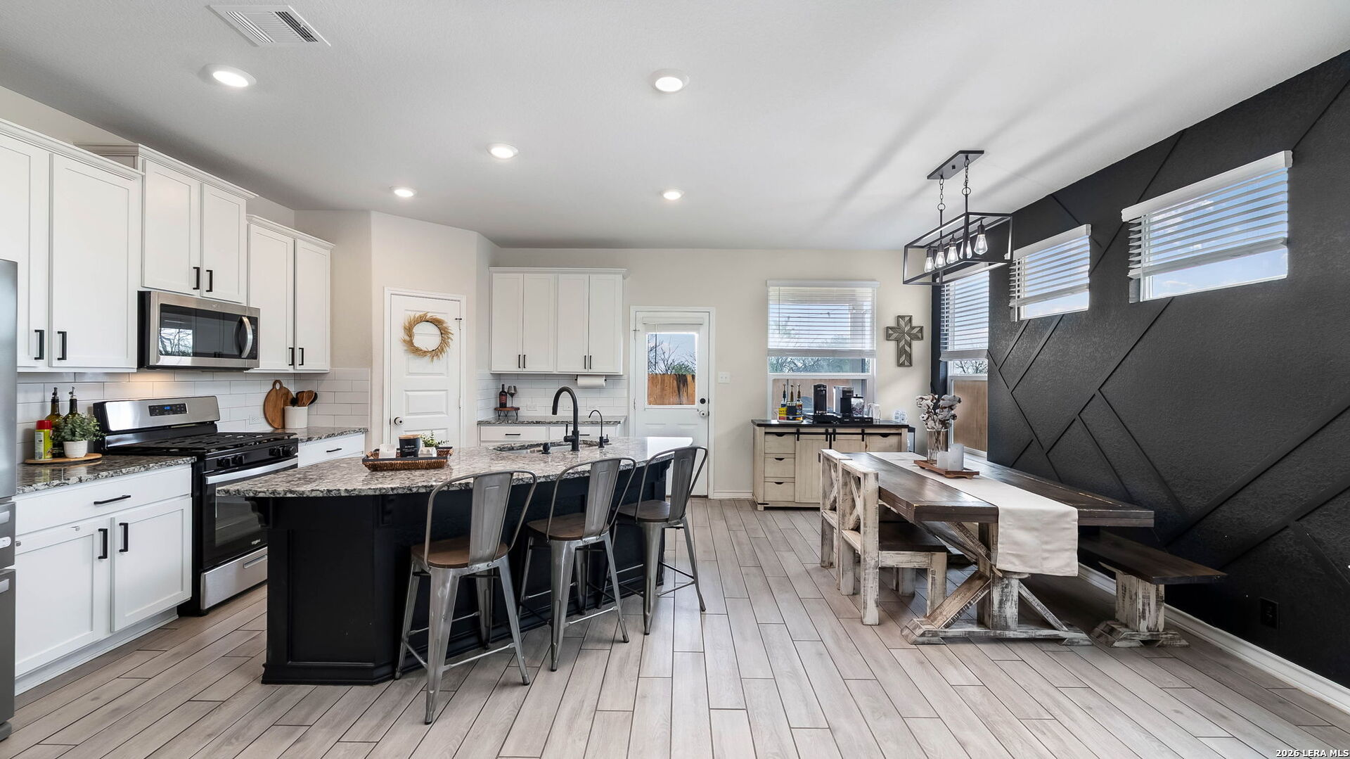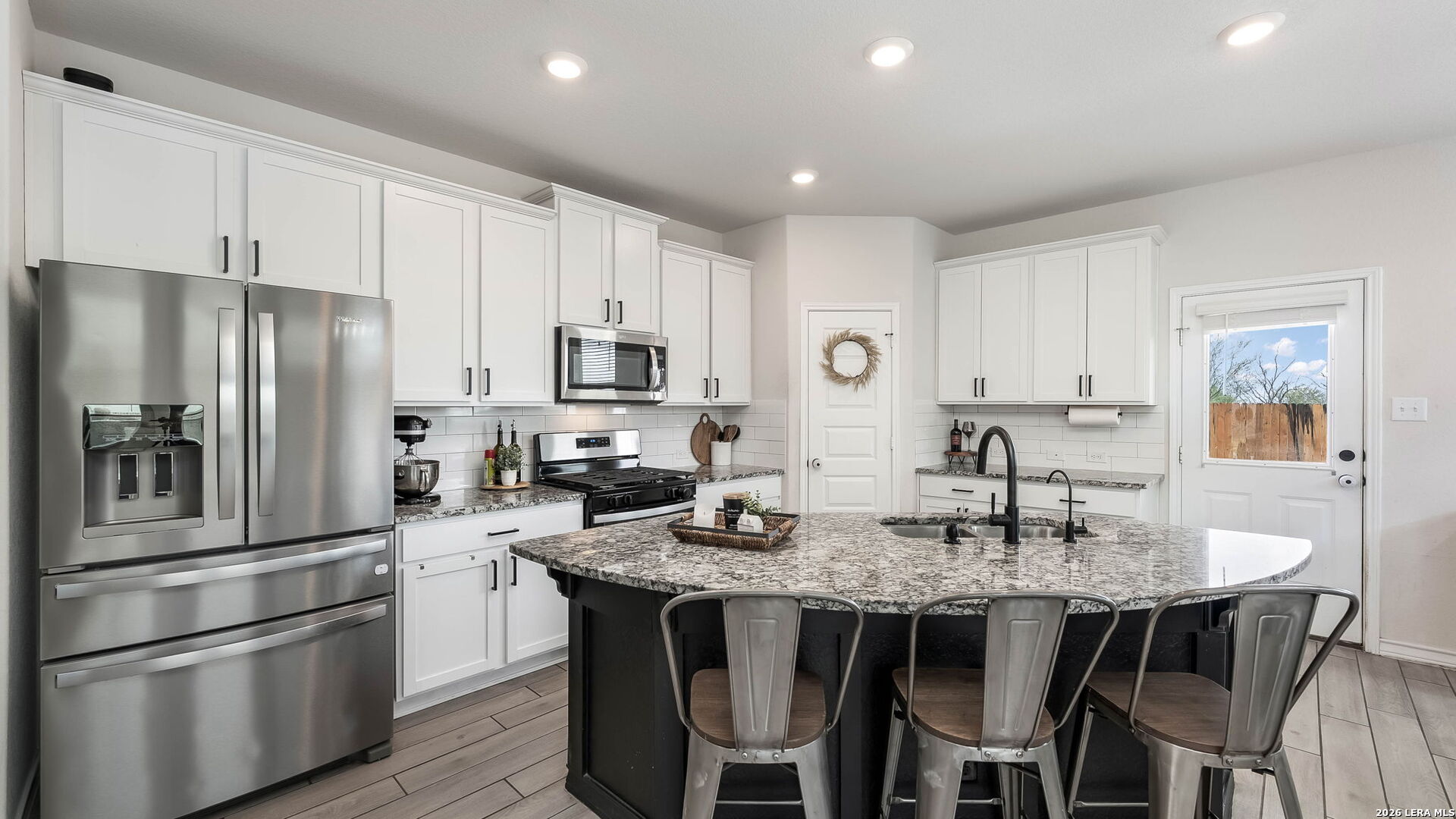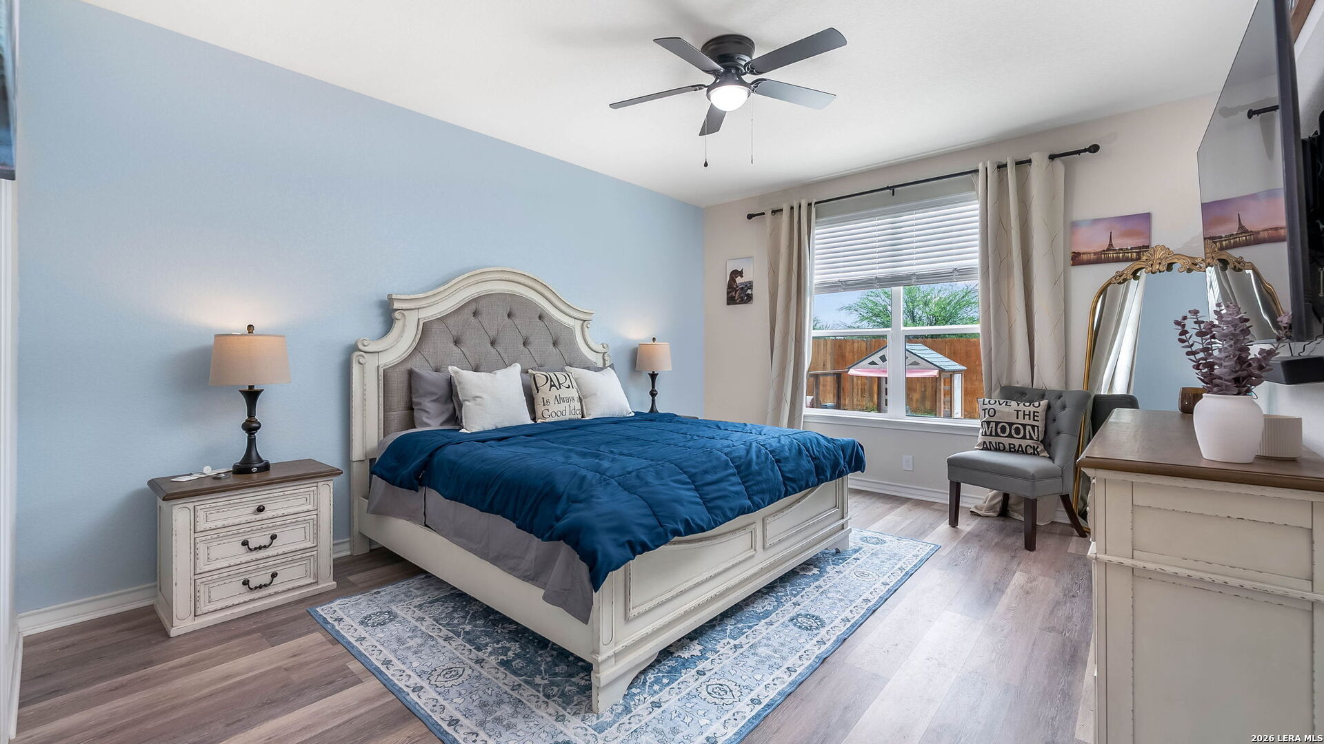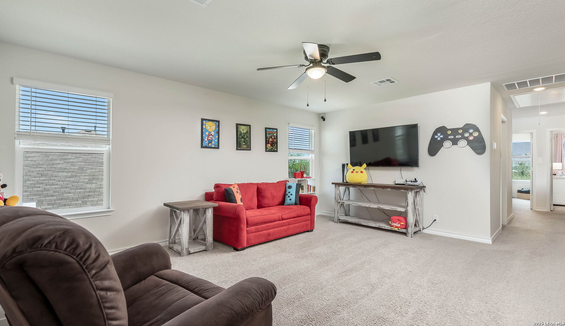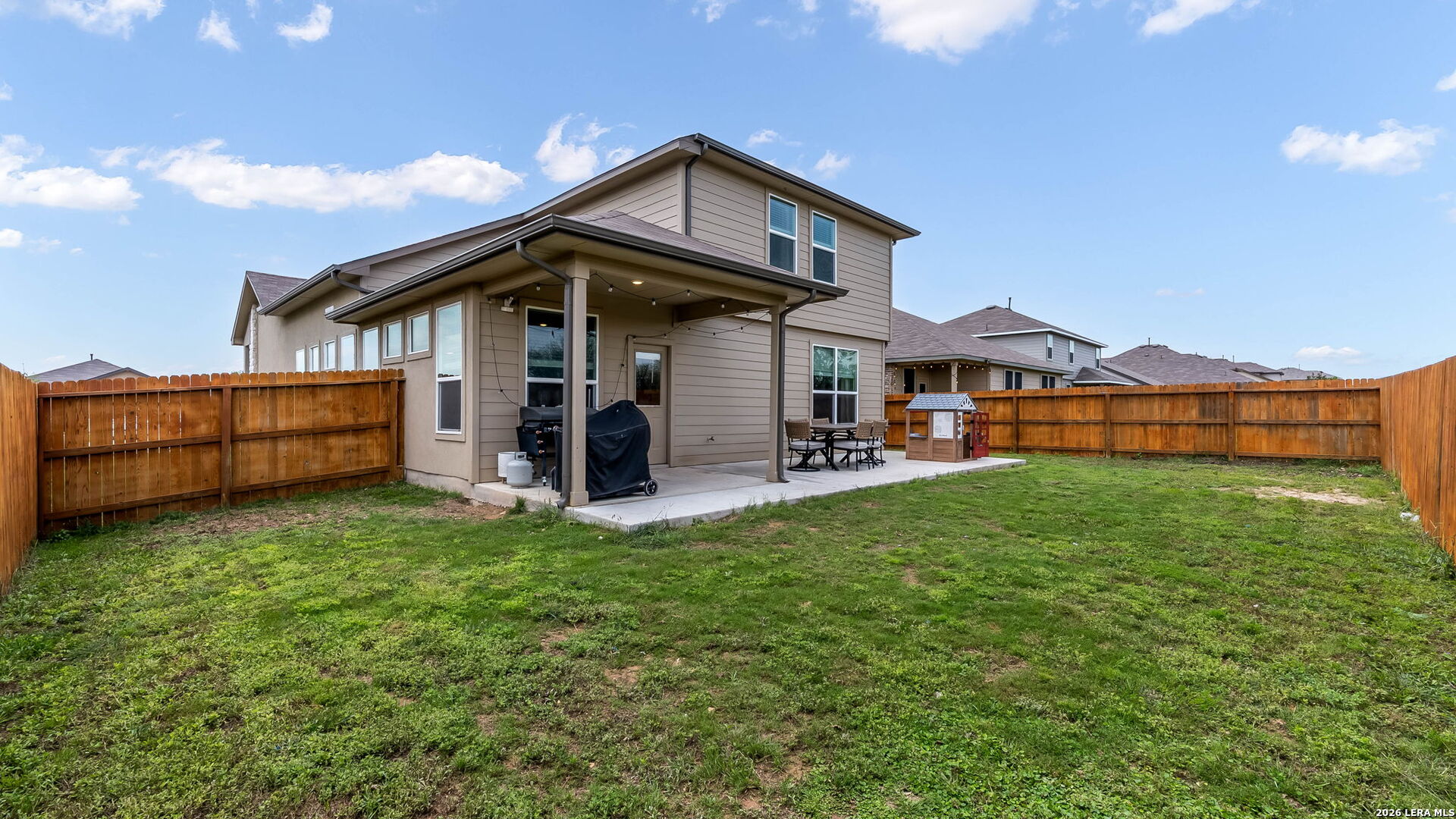 *NEW UPGRADES throughout home* Welcome to 646 Overlook Ridge in the desirable Steele Creek community of Cibolo, TX! This beautifully upgraded two-story home offers 4 bedrooms and 2.5 bathrooms, combining modern style with thoughtful enhancements throughout. Step inside to find a bright and inviting layout featuring a stunning custom living room accent wall complete with an electric fireplace and built-in shelving-perfect for relaxing or entertaining. The kitchen is a true centerpiece, showcasing a spacious island, stylish accent wall, and an upgraded dining area highlighted by a designer light fixture. Downstairs and along the staircase, all carpet has been replaced with durable and elegant luxury vinyl plank flooring, creating a seamless, modern look. The entryway and half bathroom have been tastefully updated, while ceiling fans and black-accented fixtures throughout the home add a sleek, contemporary touch. Upstairs, the owner's suite has been enhanced with a renovated closet and upgraded flooring, offering both style and functionality. Additional shelving in the upstairs bathroom provides extra storage and convenience. Outdoor living is just as impressive with an expanded concrete back porch-ideal for gatherings or quiet evenings. The home also features permanent exterior lighting, installed gutters, and a fully upgraded garage with fresh paint, epoxy flooring, and an overhead storage rack. Located in a vibrant community, residents enjoy access to a pool, clubhouse, park/playground, jogging trails, and sports courts-providing plenty of opportunities for recreation and leisure. This move-in-ready home blends comfort, style, and upgrades in all the right places-ready to impress from the moment you arrive.