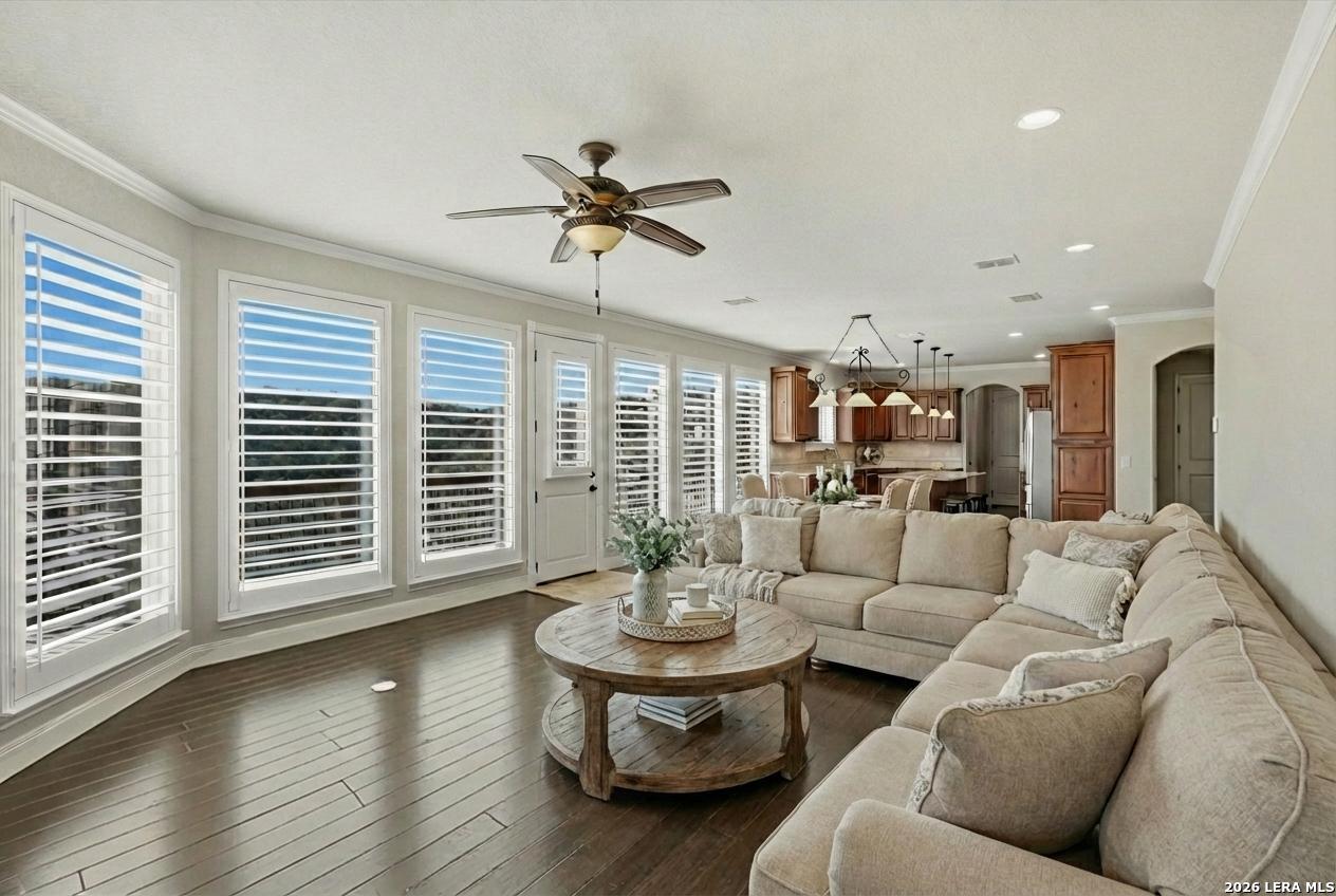 The one you've been waiting for! Stunning home on 2 acres, breathtaking views that steal the show. Incredible floorplan, space for everyone, 4 bedrooms, 3.5 baths, private office, gameroom & bonus room Could be a 5th Bdr). Gorgeous wood floors, custom kitchen, oversized garage & upgrades throughout. Coffee on the patio AM & unwind in the hot tub with unforgettable views in the evening. Space, style & scenery, this one truly has it all! Located in highly sought after Bulverde, schools nearby, easy access to shopping, dining & everyday conveniences, everything within reach while feeling a million miles from your cares.