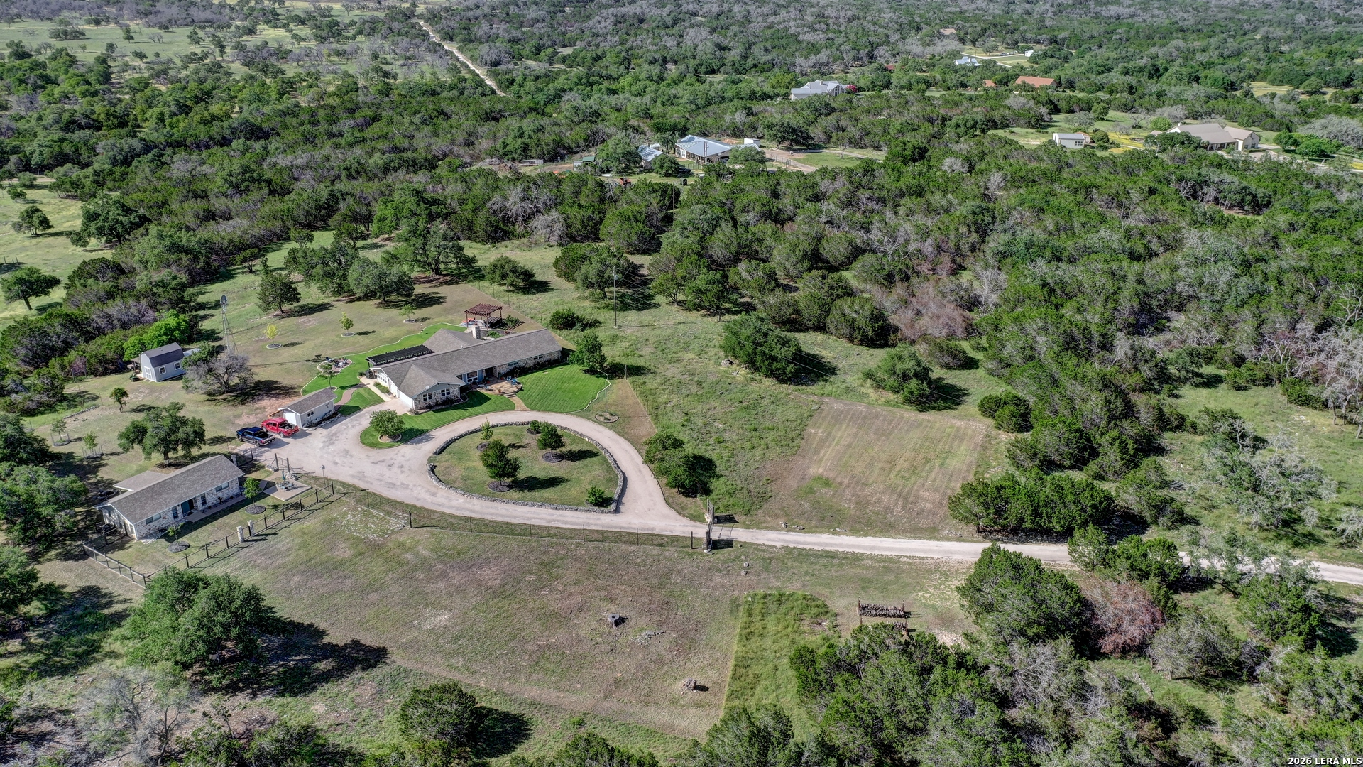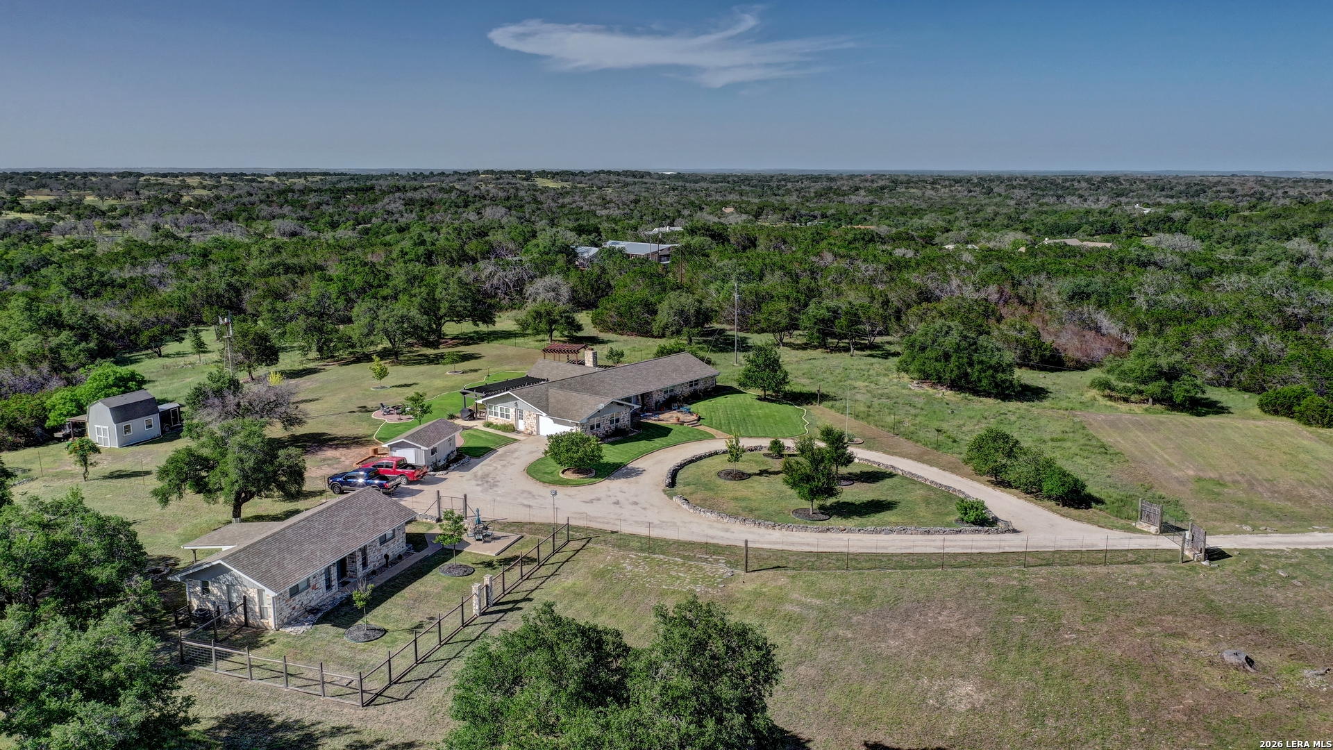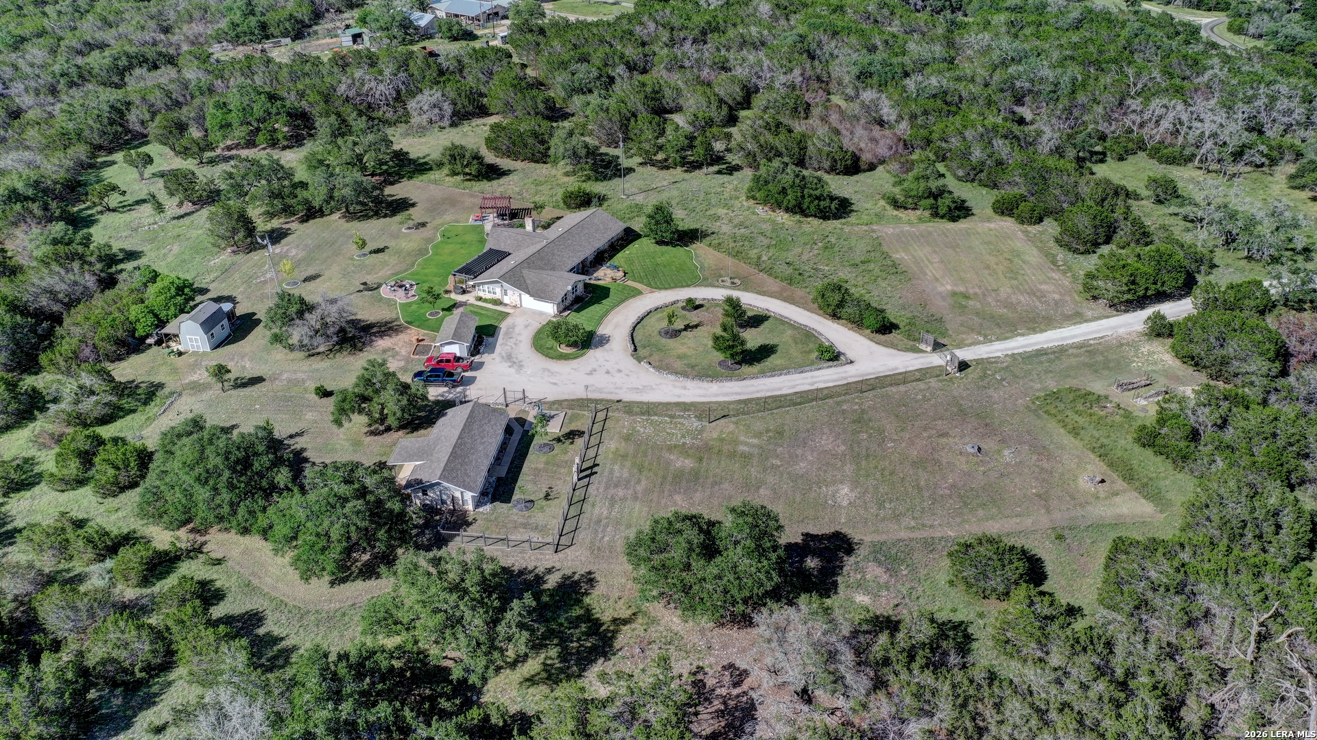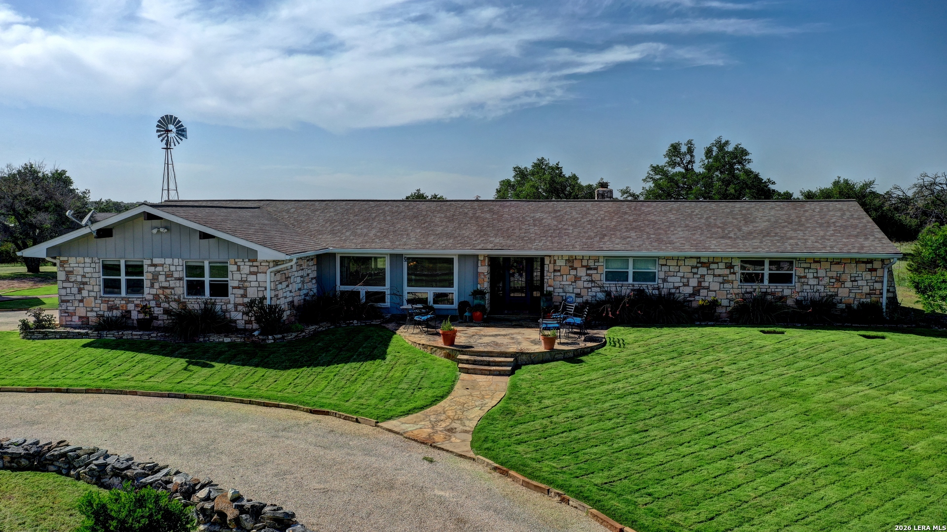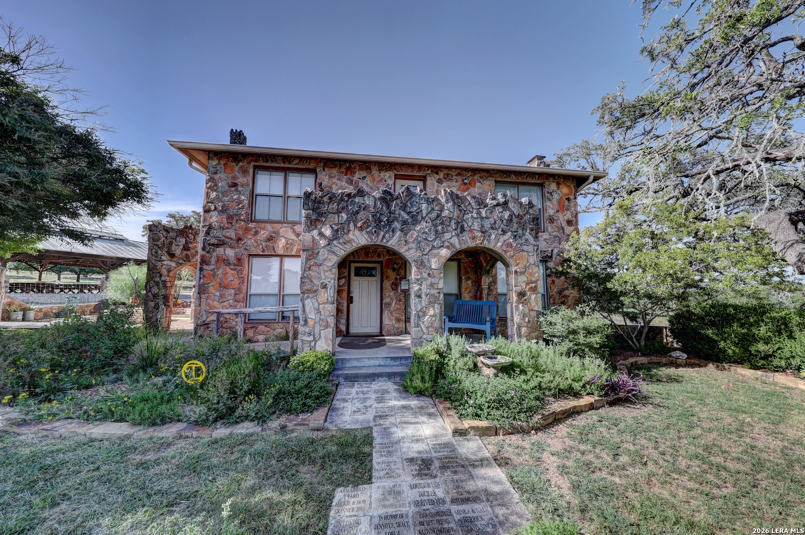 Beautifully updated and well maintained home and guest home on 12.31 acres in Tierra Linda Ranch. The park like setting features a 2425 sf, 3 bedroom, 2.5 bath home, with custom cabinetry, Saltillo tile floors, raw-edge granite countertops, picture windows, built-ins and a spacious, yet comfortable floor plan. The primary bedroom features direct exterior access near the hot tub, as well as a nicely updated ensuite with double vanity and walk in shower. The great room has lots of natural light, a wood burning fireplace and vaulted ceilings with wood beams. There's also an office/sunroom and a large covered back porch. The guest house is 846 sf, 2 bedrooms and 2 full baths, has a living room, kitchenette and private porch. Both homes have been freshly painted inside. The property has two water wells, one into the Trinity aquifer, and the other into the Edwards, which also has a functional windmill. The homes are within a couple acres of high fencing, with the remaining acreage having Ag exemption. Tierra Linda is a unique HOA community, with a swimming pool, airstrip, tennis courts, fishing lakes, trails and horseback riding.