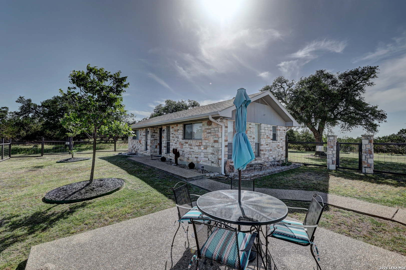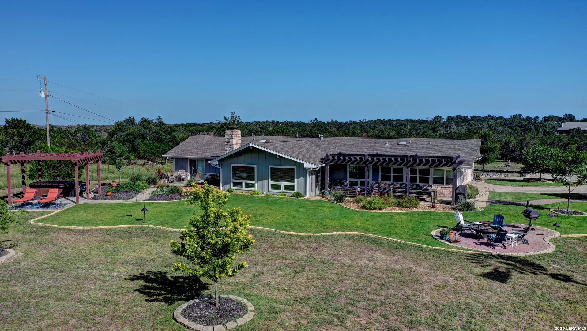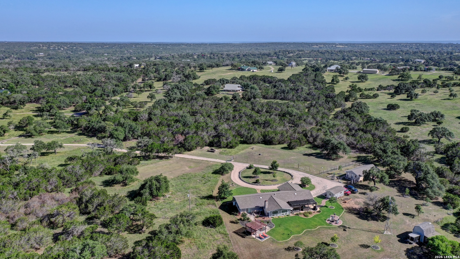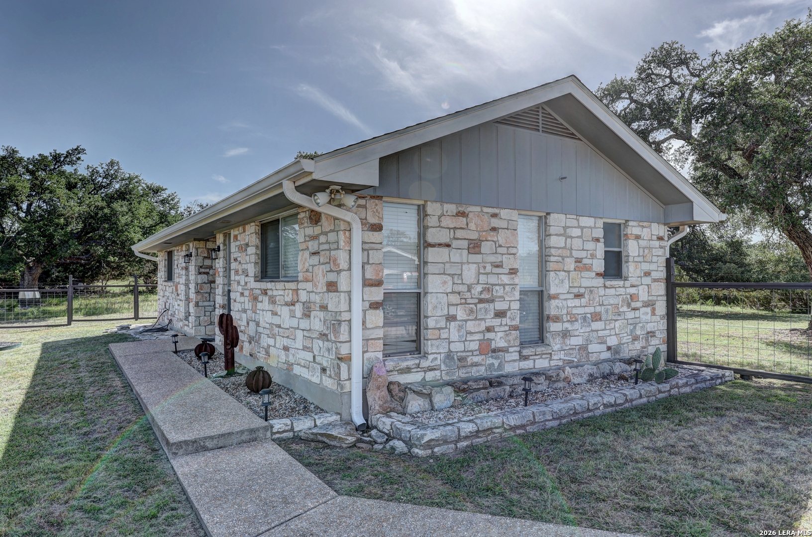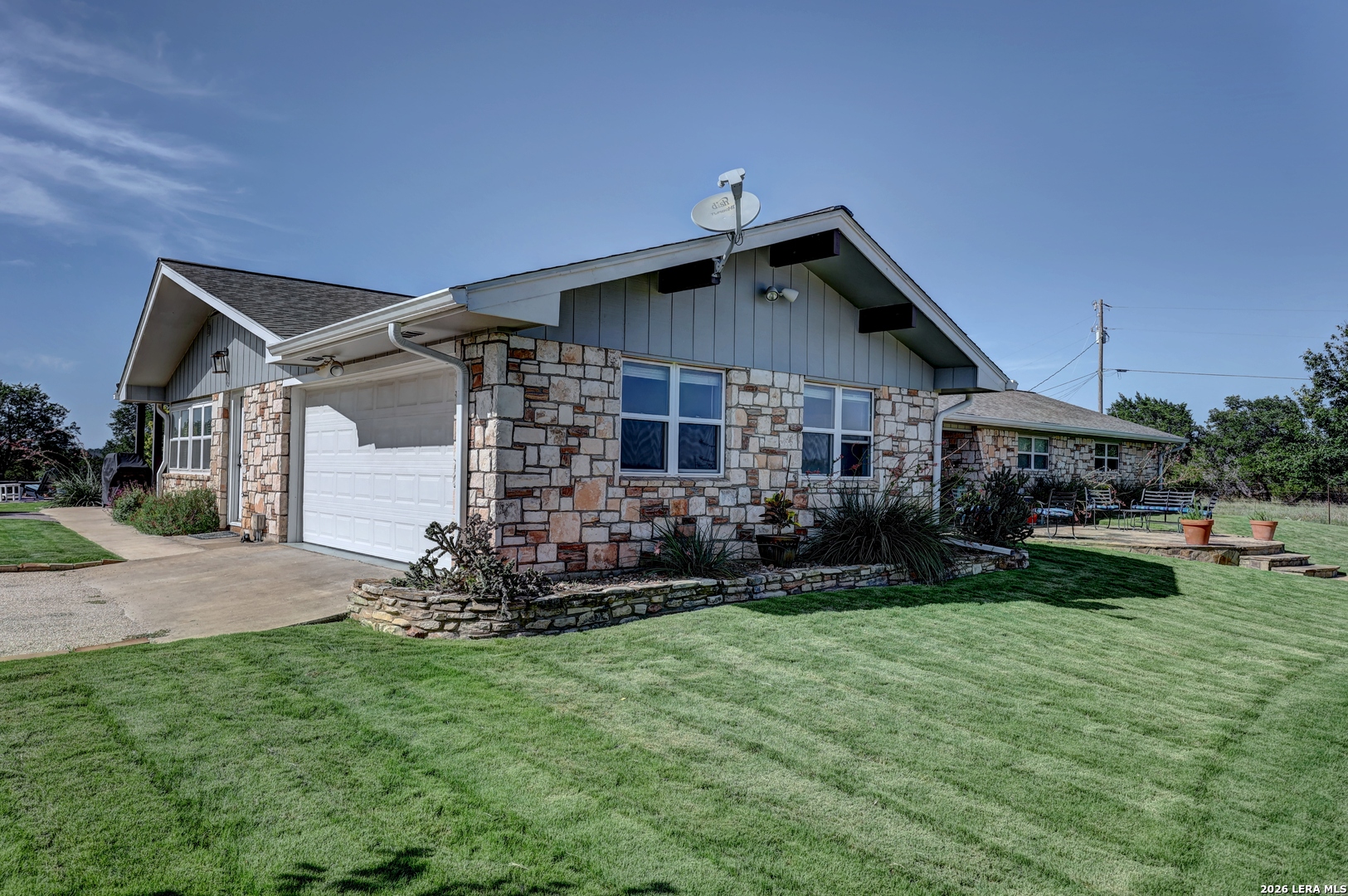 Beautifully updated and well maintained home and guest home on 12.31 acres in Tierra Linda Ranch. The park like setting features a 2425 sf, 3 bedroom, 2.5 bath home, with custom cabinetry, Saltillo tile floors, raw-edge granite countertops, picture windows, built-ins and a spacious, yet comfortable floor plan. The primary bedroom features direct exterior access near the hot tub, as well as a nicely updated ensuite with double vanity and walk in shower. The great room has lots of natural light, a wood burning fireplace and vaulted ceilings with wood beams. There's also an office/sunroom and a large covered back porch. The guest house is 846 sf, 2 bedrooms and 2 full baths, has a living room, kitchenette and private porch. Both homes have been freshly painted inside. The property has two water wells, one into the Trinity aquifer, and the other into the Edwards, which also has a functional windmill. The homes are within a couple acres of high fencing, with the remaining acreage having Ag exemption. Tierra Linda is a unique HOA community, with a swimming pool, airstrip, tennis courts, fishing lakes, trails and horseback riding.