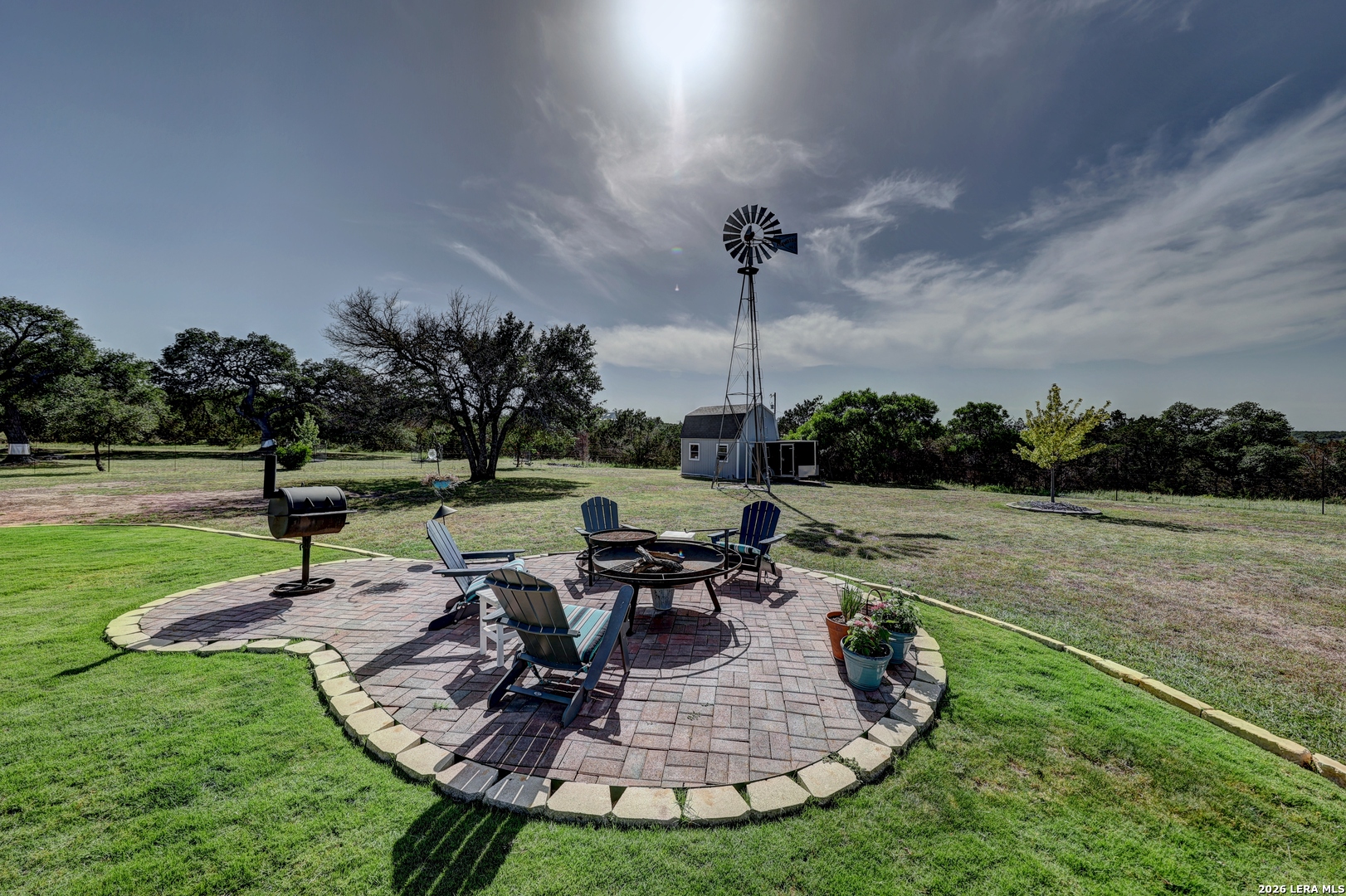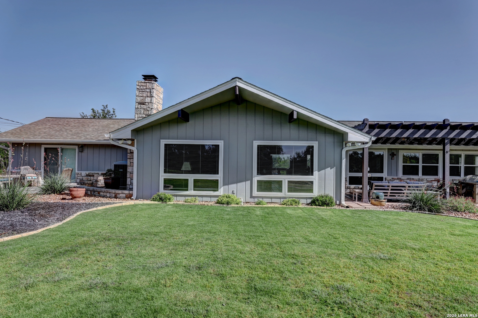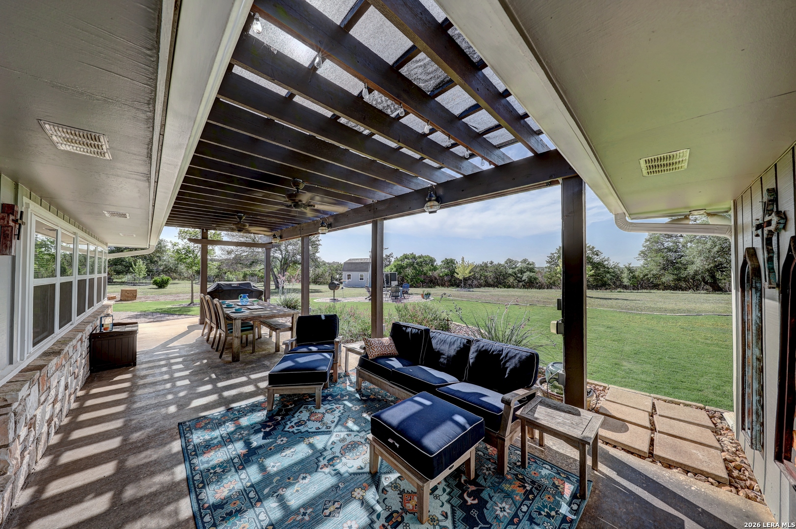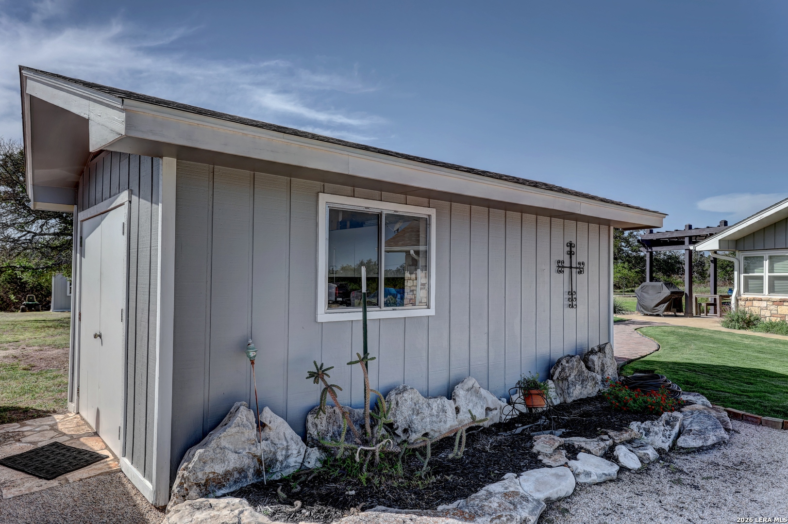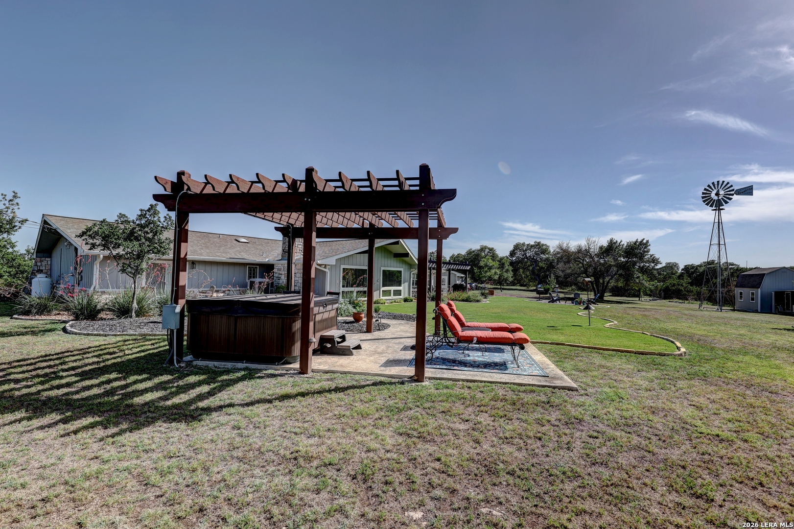 Beautifully updated and well maintained home and guest home on 12.31 acres in Tierra Linda Ranch. The park like setting features a 2425 sf, 3 bedroom, 2.5 bath home, with custom cabinetry, Saltillo tile floors, raw-edge granite countertops, picture windows, built-ins and a spacious, yet comfortable floor plan. The primary bedroom features direct exterior access near the hot tub, as well as a nicely updated ensuite with double vanity and walk in shower. The great room has lots of natural light, a wood burning fireplace and vaulted ceilings with wood beams. There's also an office/sunroom and a large covered back porch. The guest house is 846 sf, 2 bedrooms and 2 full baths, has a living room, kitchenette and private porch. Both homes have been freshly painted inside. The property has two water wells, one into the Trinity aquifer, and the other into the Edwards, which also has a functional windmill. The homes are within a couple acres of high fencing, with the remaining acreage having Ag exemption. Tierra Linda is a unique HOA community, with a swimming pool, airstrip, tennis courts, fishing lakes, trails and horseback riding.