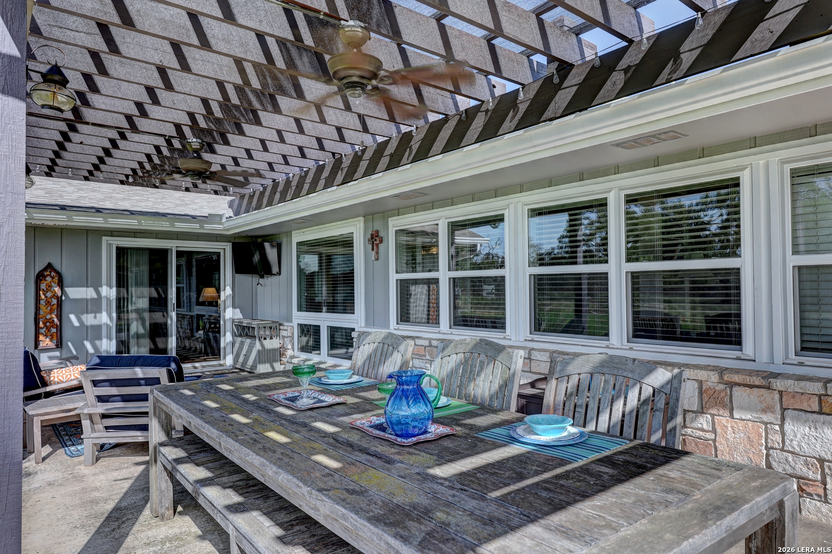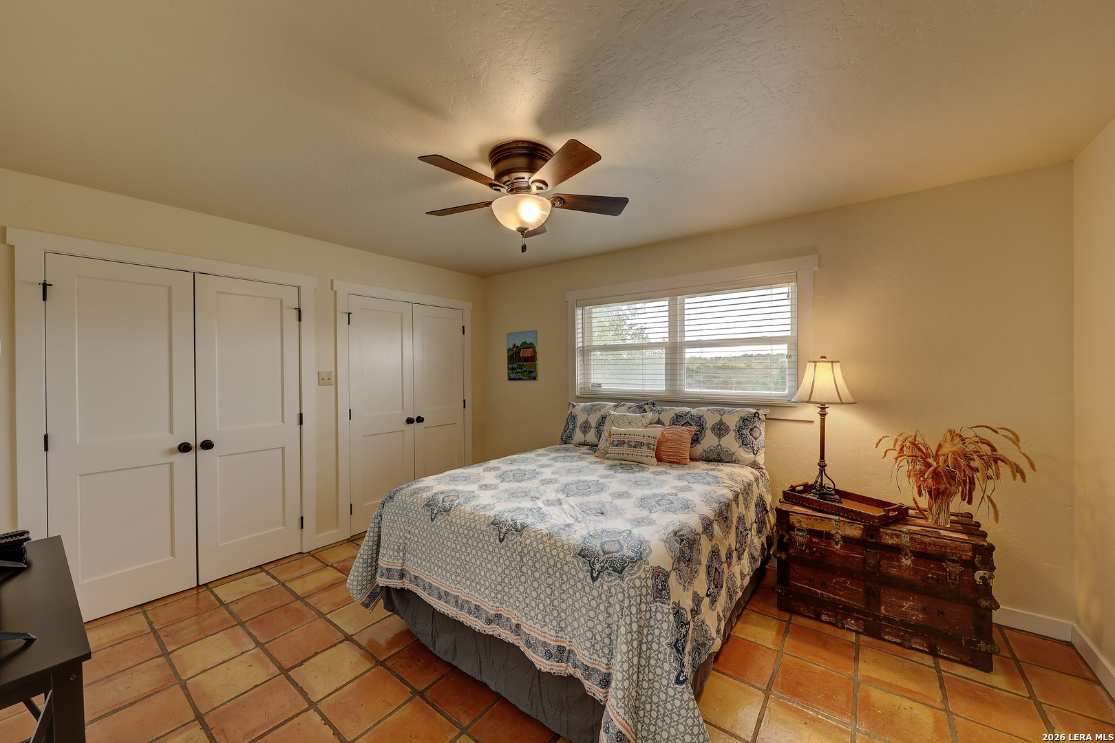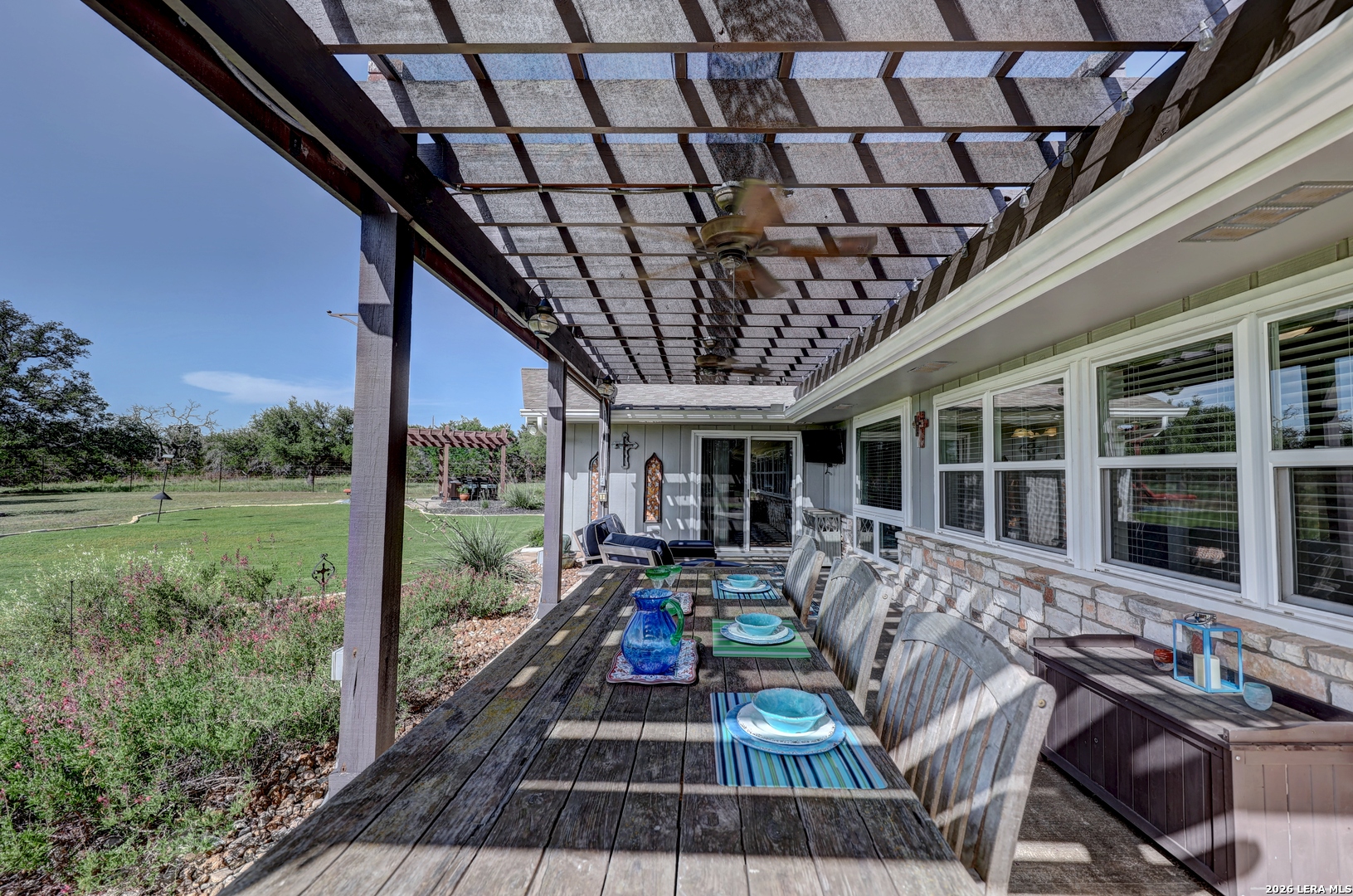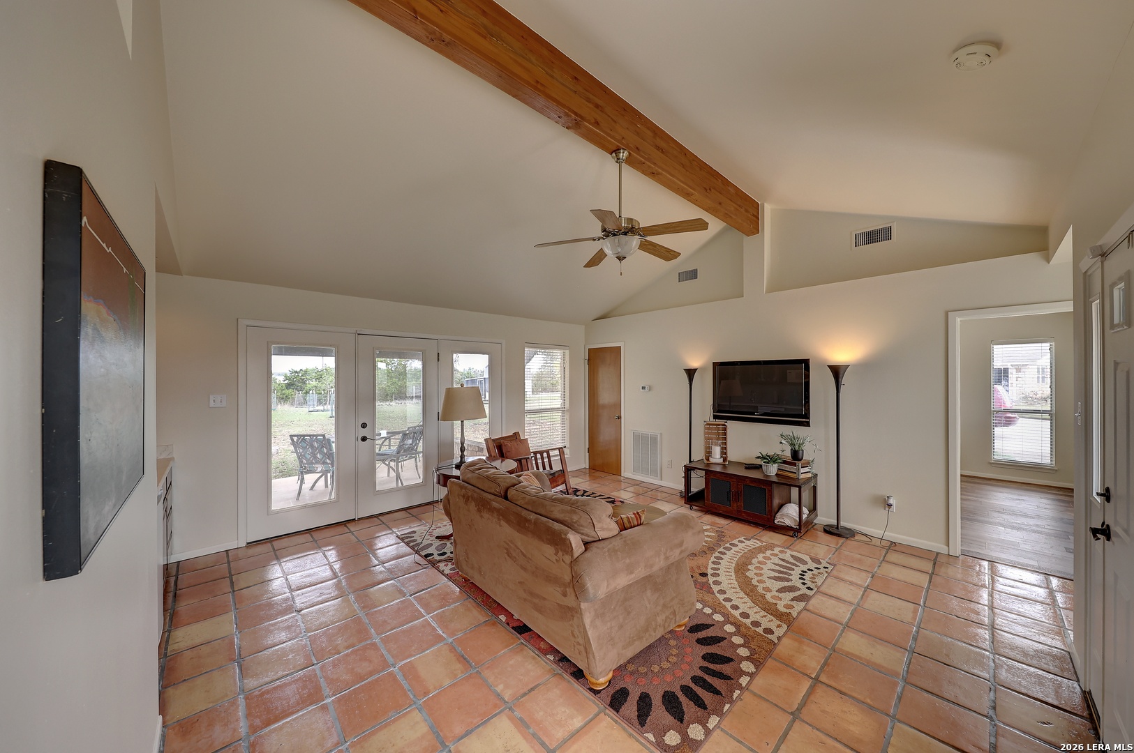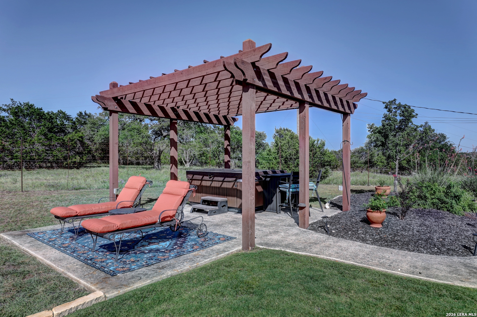 Beautifully updated and well maintained home and guest home on 12.31 acres in Tierra Linda Ranch. The park like setting features a 2425 sf, 3 bedroom, 2.5 bath home, with custom cabinetry, Saltillo tile floors, raw-edge granite countertops, picture windows, built-ins and a spacious, yet comfortable floor plan. The primary bedroom features direct exterior access near the hot tub, as well as a nicely updated ensuite with double vanity and walk in shower. The great room has lots of natural light, a wood burning fireplace and vaulted ceilings with wood beams. There's also an office/sunroom and a large covered back porch. The guest house is 846 sf, 2 bedrooms and 2 full baths, has a living room, kitchenette and private porch. Both homes have been freshly painted inside. The property has two water wells, one into the Trinity aquifer, and the other into the Edwards, which also has a functional windmill. The homes are within a couple acres of high fencing, with the remaining acreage having Ag exemption. Tierra Linda is a unique HOA community, with a swimming pool, airstrip, tennis courts, fishing lakes, trails and horseback riding.