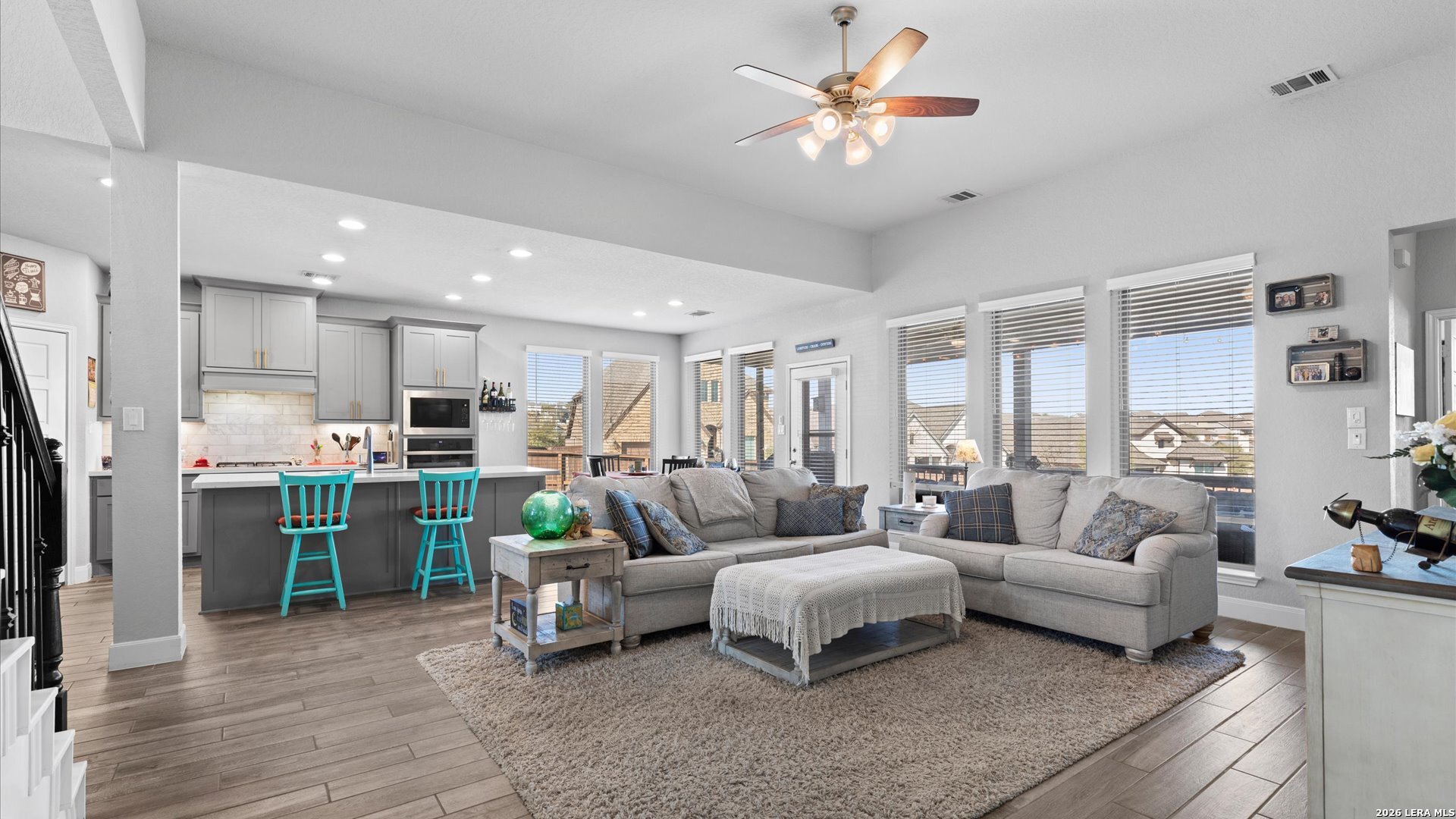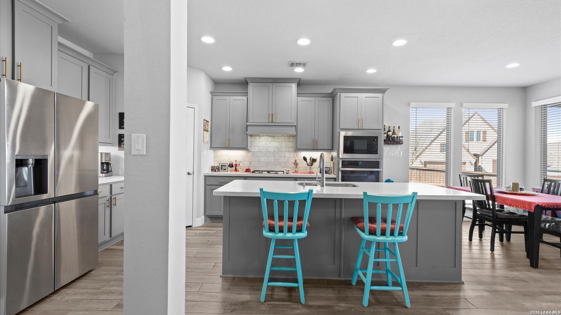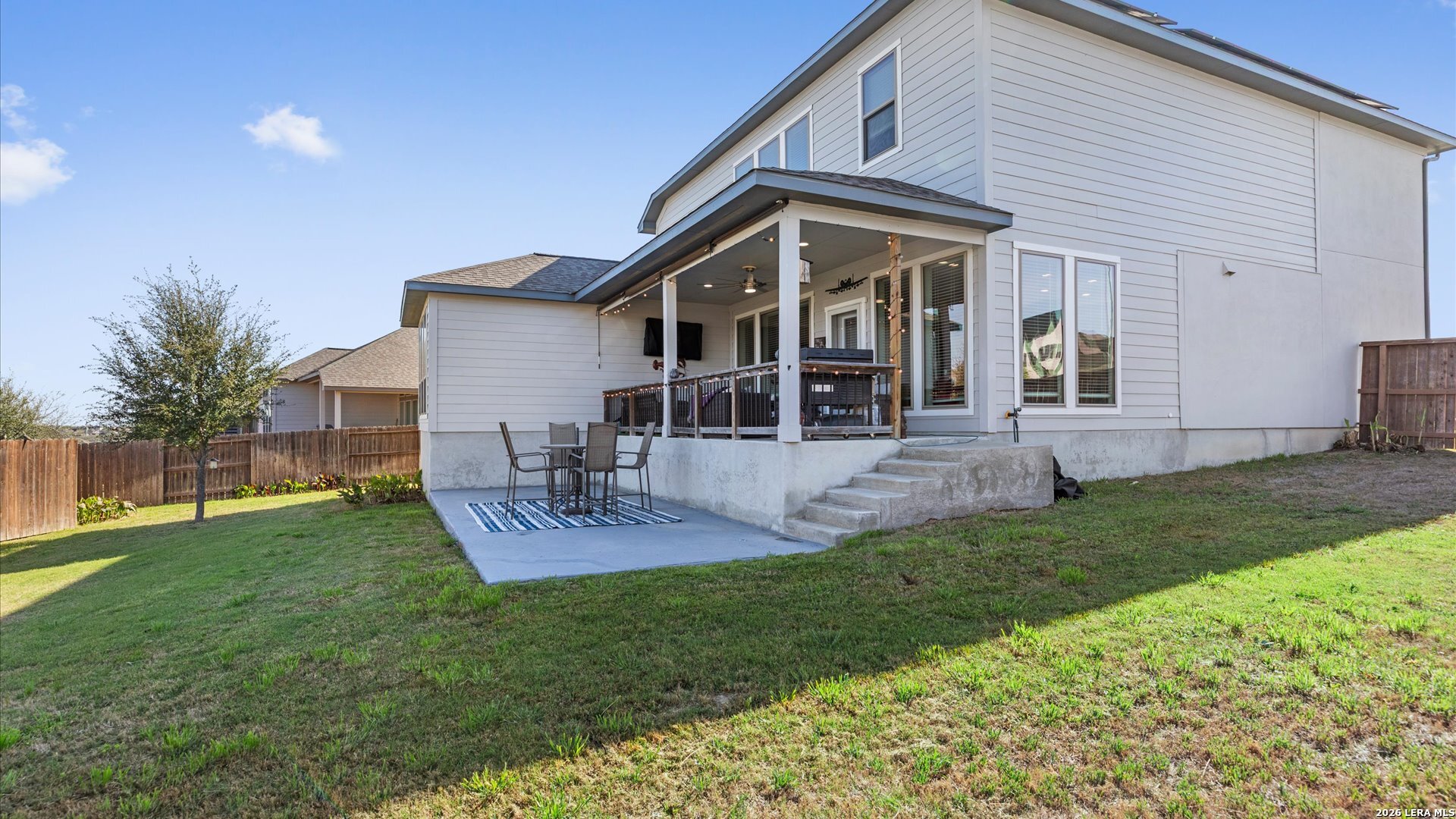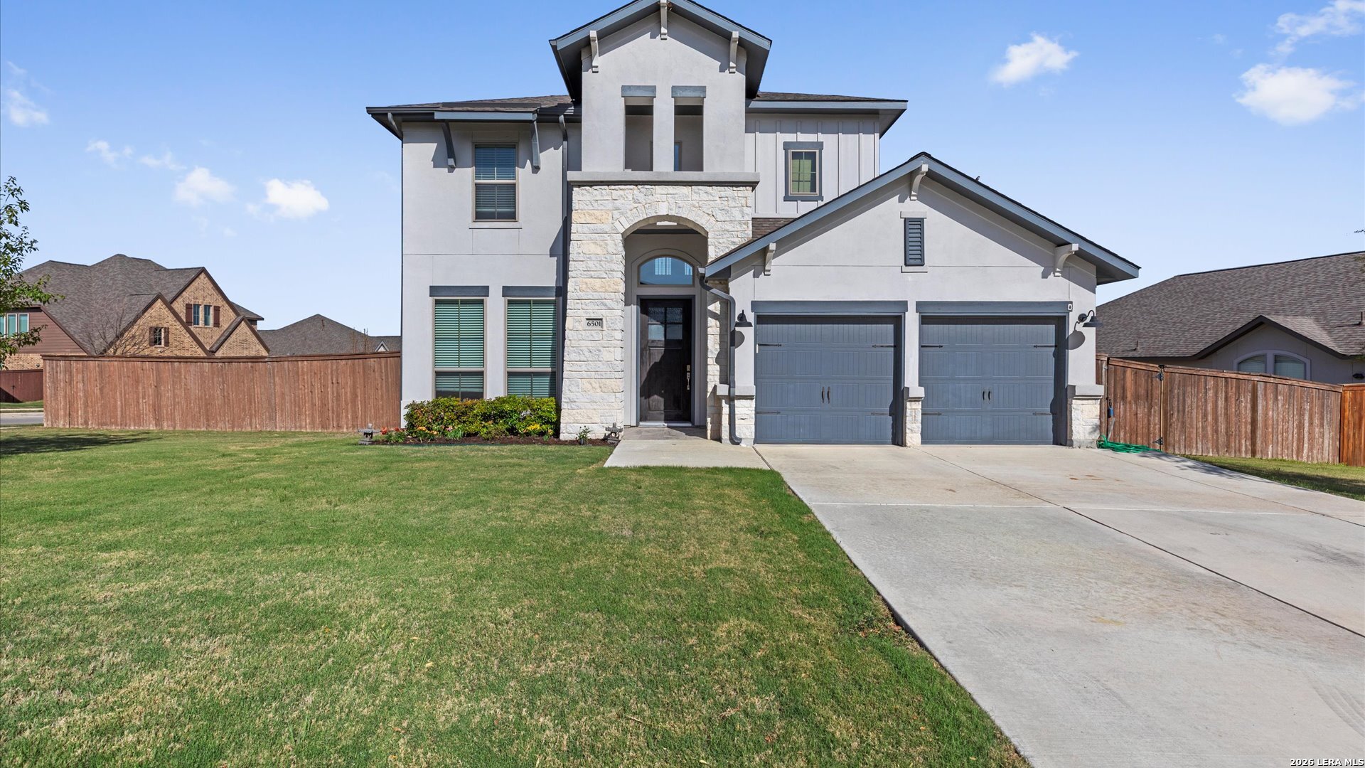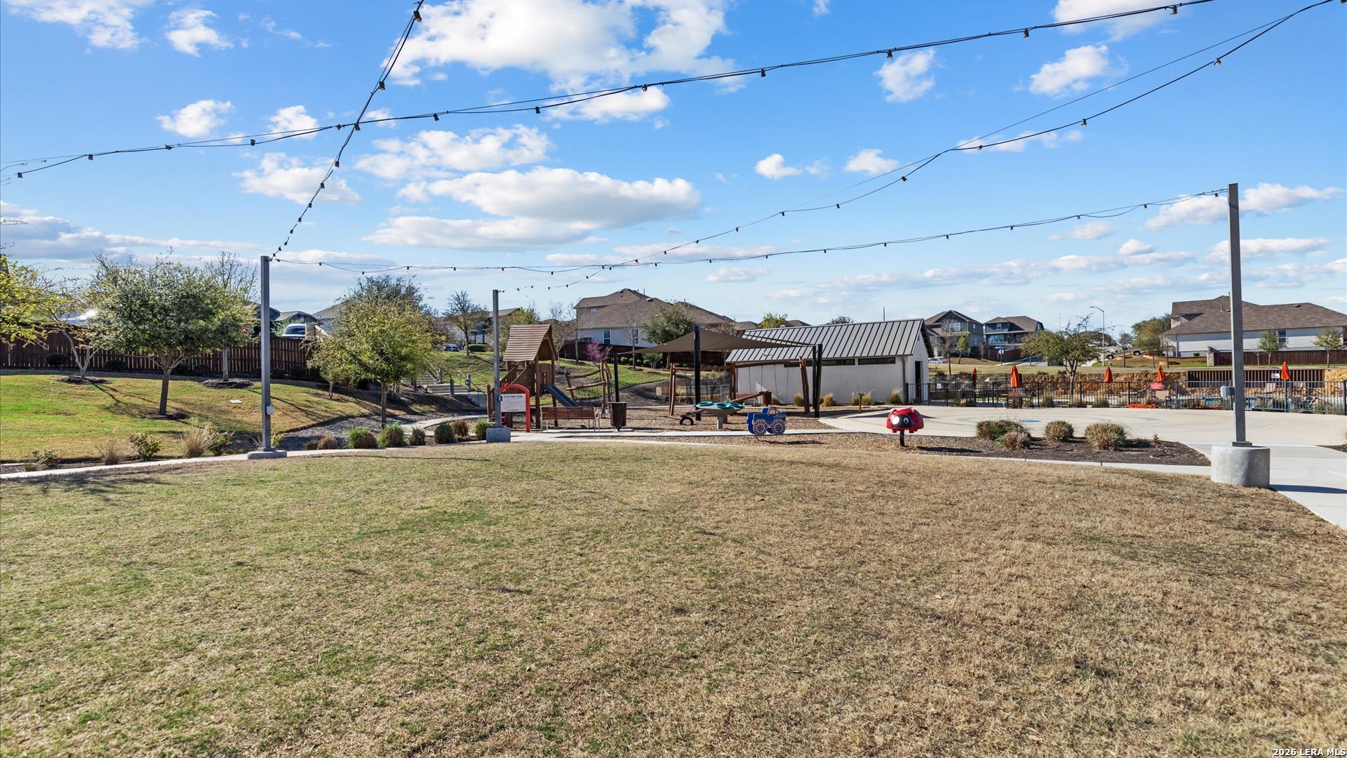 Stunning two-story 4/3.5/2 home on a desirable corner lot in the highly sought-after Homestead community! Step inside to a grand entry featuring a private library with French doors-perfect for a home office. The spacious family room boasts a wall of windows and flows seamlessly into the kitchen and breakfast area, creating an ideal space for everyday living and entertaining. The kitchen features a large island with built-in seating space and modern appliances. The first-floor primary suite offers a peaceful retreat with an 11-foot ceiling and wall of windows. The ensuite bath includes dual vanities, a corner garden tub, separate glass-enclosed shower, and a walk-in closet. Upstairs, you'll find a game room, all secondary bedrooms, and two full baths-providing plenty of space for family or guests. Enjoy outdoor living on the extended covered backyard patio. Spacious yard with room for a pool, or a hot-tub. Outdoor TV mount and natural gas line ready for hosting summer barbecues! Just a quick 3 minute walk to the community amenities including a 24/7 fitness center, playground, jogging and walking trails, and resort style pool. Conveniently located just minutes from I-35 with easy access to shopping, dining, and all that Schertz has to offer. ** Buyer will need to qualify and assume the loan for the solar panels. Details upon request.
