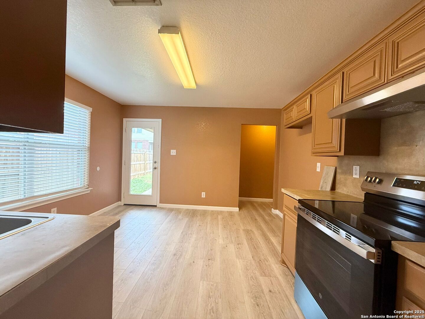 Welcome to 6502 Ithaca Forest-a beautifully renovated 3-bedroom, 2-bath rental offering 1,314 sq ft of comfortable living in a quiet Northeast San Antonio neighborhood. This charming two-story home features fresh updates throughout, including modern flooring, neutral paint, and upgraded fixtures. The main living area is bright and open, centered around a super cute fireplace that adds warmth and character. The kitchen offers generous cabinet space and flows seamlessly into the dining area-perfect for everyday living or entertaining. Enjoy the rare convenience of three full bathrooms, ideal for families or roommates. The spacious master suite includes a private bath with a separate garden tub and walk-in shower. All bedrooms are well-sized with ample closet space. Step outside to a large backyard, great for relaxing, entertaining, or pets. The home also includes a two-car garage and full driveway. Located just off IH-35 N (exit O'Connor Rd), with easy access to Randolph AFB, Loop 1604, shopping, and dining. Pet-friendly with approval. Don't miss this move-in ready gem-schedule your tour today!