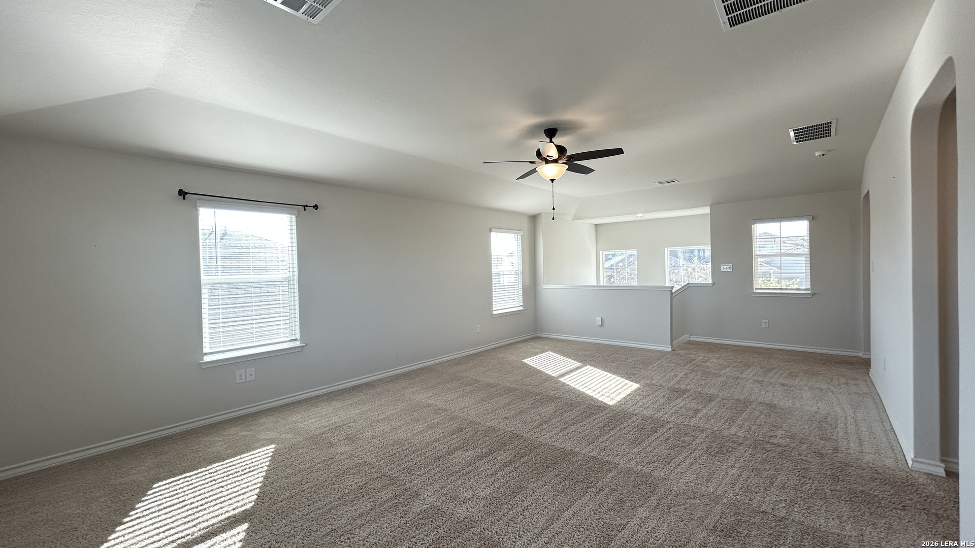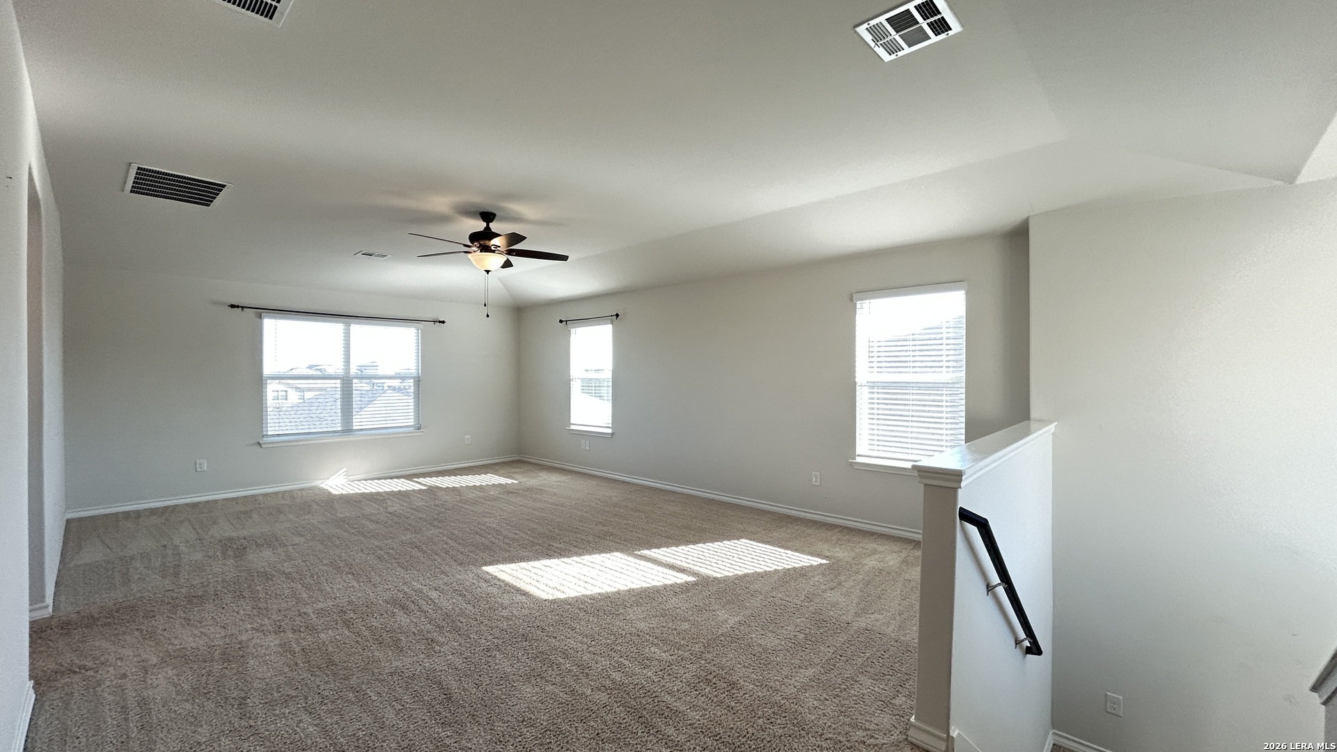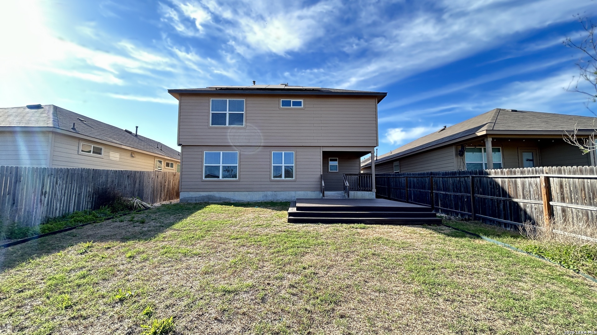 3 Bed 2.5 Bath 2237 sq ft Home in Whisper Falls. Solar Panels for reduced utility bills. All Laminate floors downstairs. Open floor plan with Large Living room, Dining to the spacious room Kitchen. Kitchen with Granite counters, tons of cabinet space, Breakfast Bar, Walk-in Pantry. Appliances include Gas Stove, Microwave, Dishwasher. Huge Game Room with 3 Bedrooms upstairs. Utility Room up with Washer/Dryer included. Primary Bedroom with Ceiling Fan, Walk-in Closet. Primary Bath with Separate Shower/Garden Tub, Dual Sinks. Fenced Backyard with Covered Patio, separate Deck for entertaining. 2 Car Garage with Opener. Experience the ultimate Resort-style living with amenities such as a Pool, Clubhouse, Cabanas, Playground, Basketball court, and Splash Pads. Plus, the community even has its own Lifestyle Director to help plan activities and events for residents. Easy access to Highway 90, 211, Lackland AFB, Shopping.